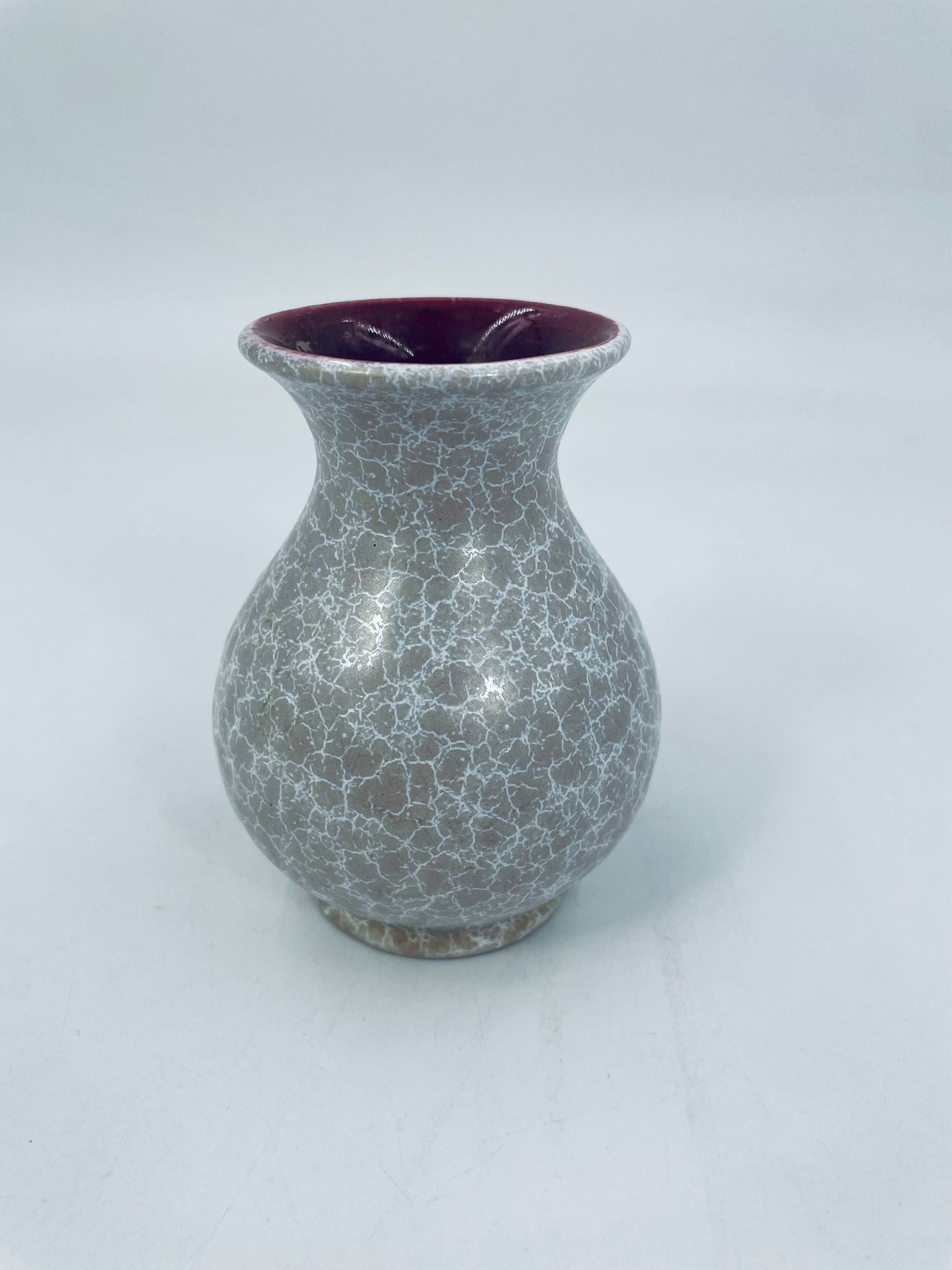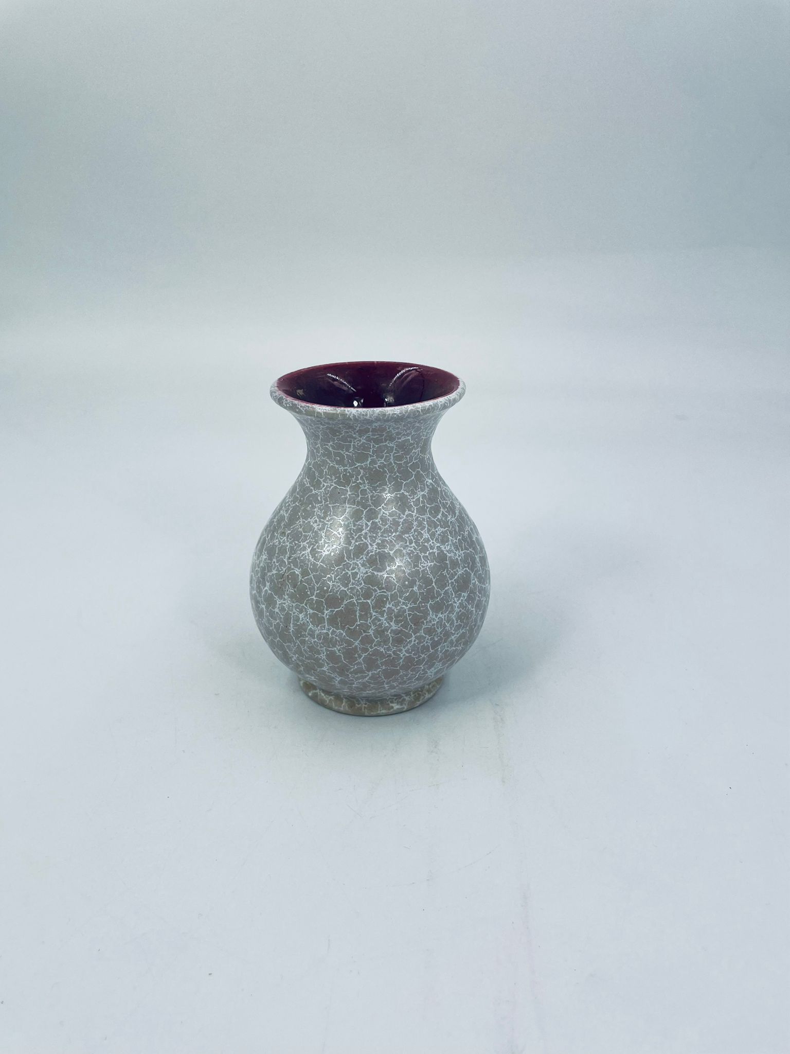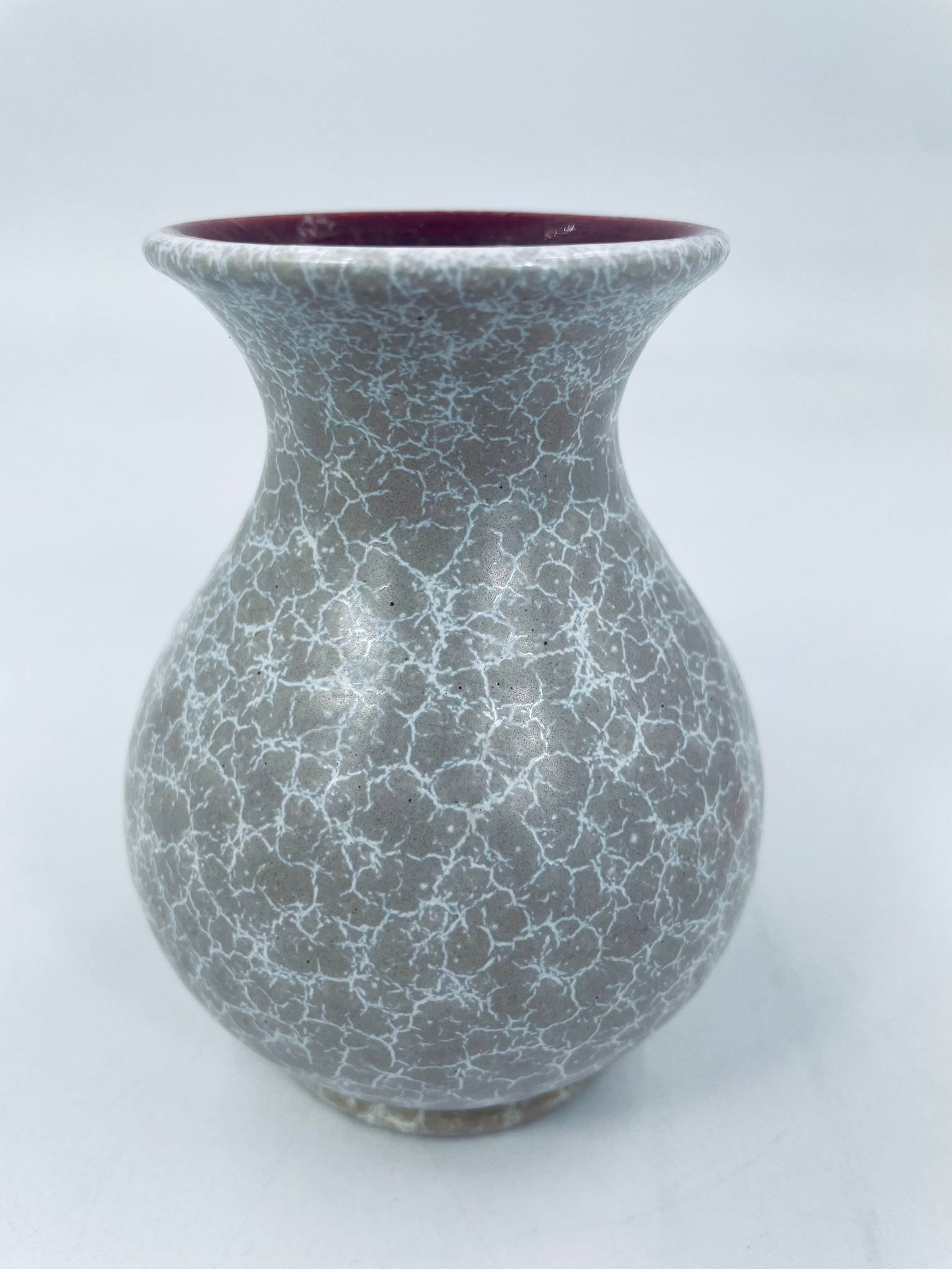 Dekoracyjny wazon wytwórni Marzi&Remy z połowy wieku. Szkliwo kurczliwe w kolorze beżu, środek wazonu w kolorze bordo.