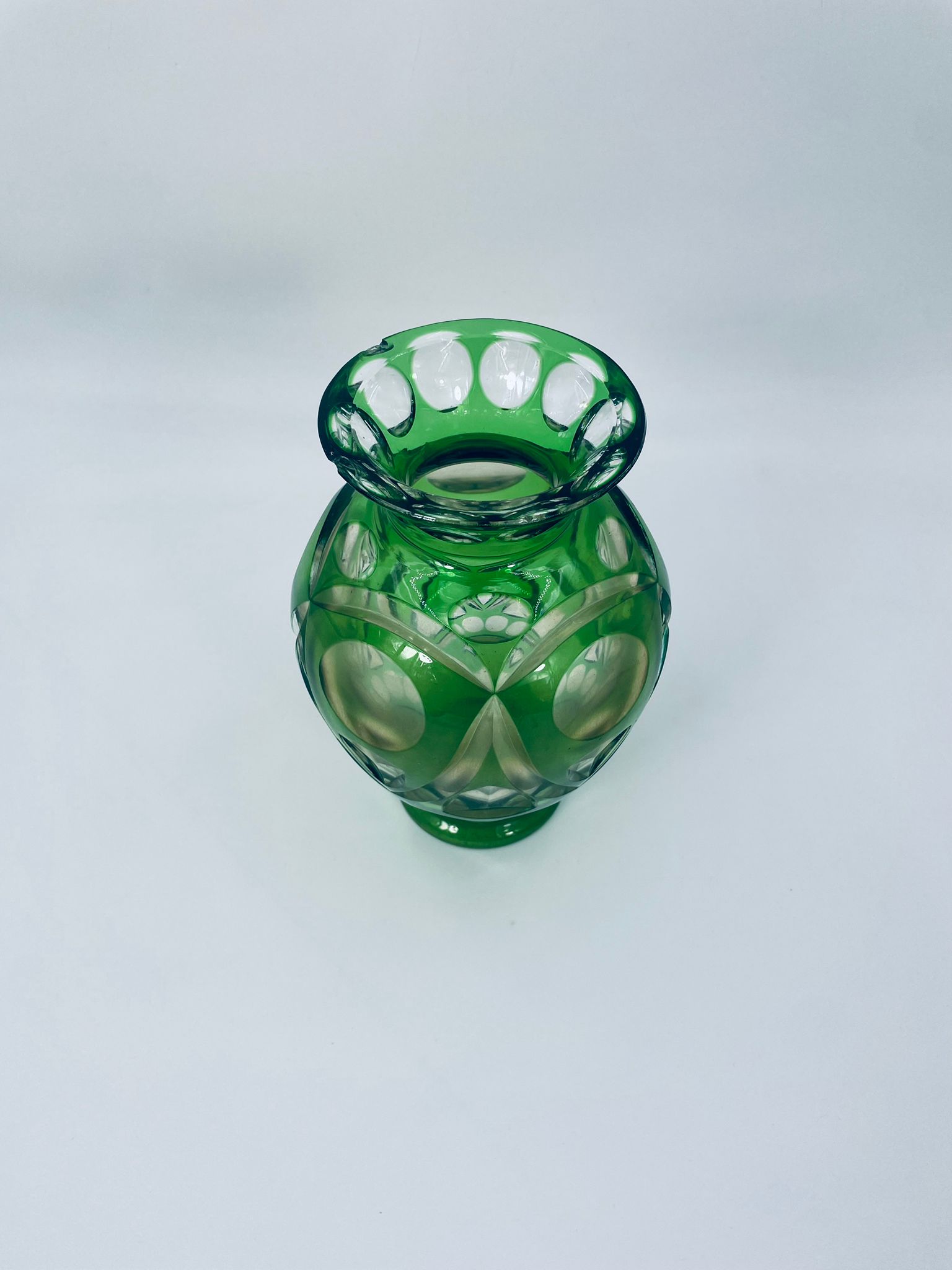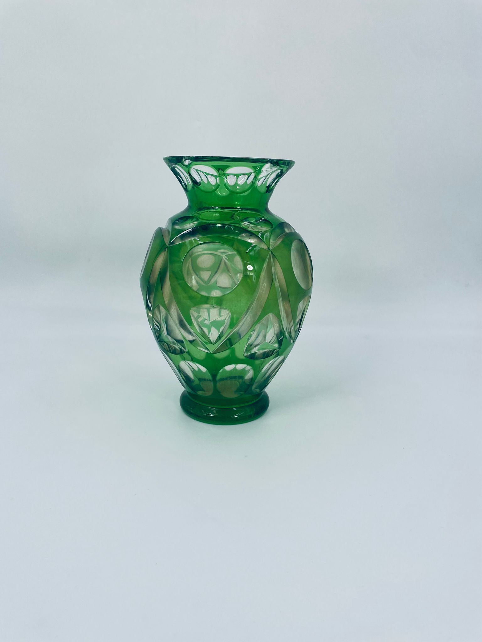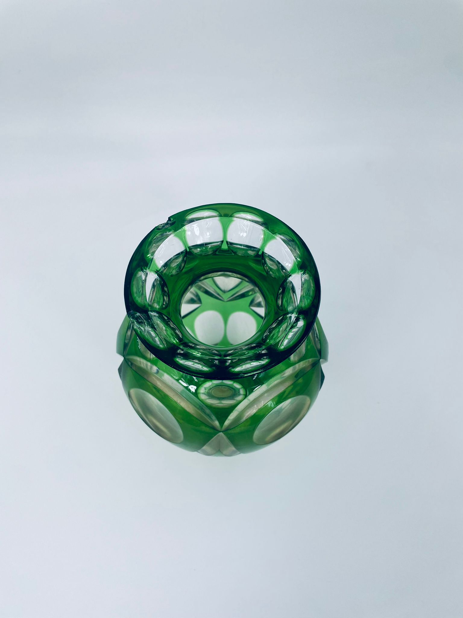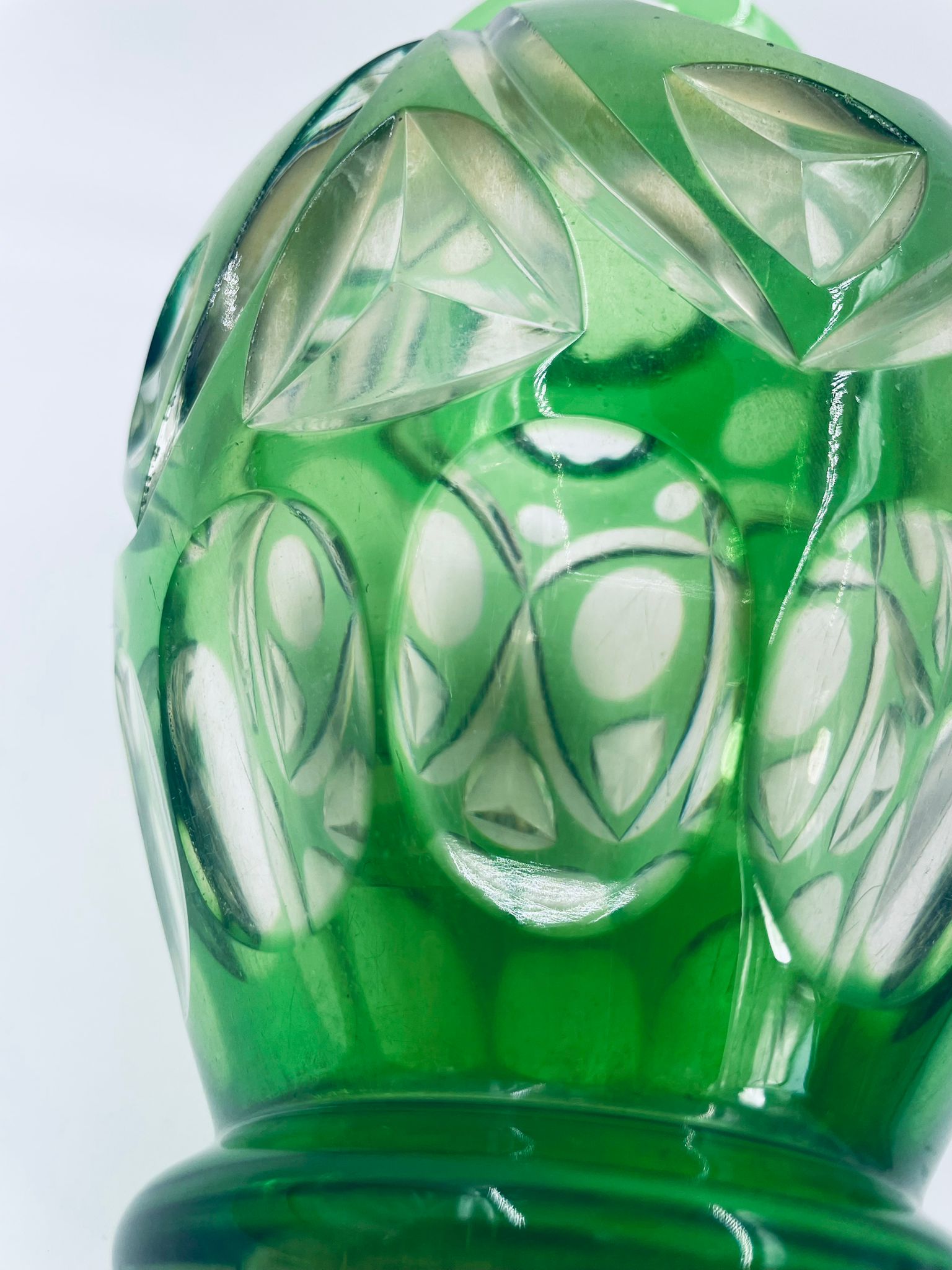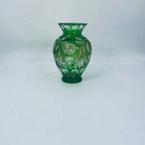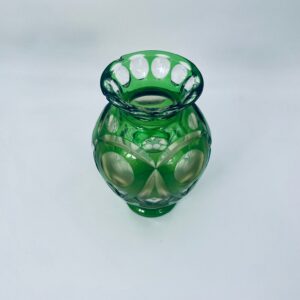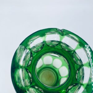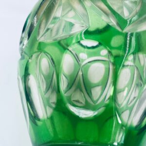 Wazon wytwórni Nachtmann Bamberg, wykonany z grubego szkła kryształowego przezroczystego, barwionego w kolorze zielonym. Wazonik z charakterystycznym szlifowanym wzorem. Wazon posiada dwa odpryski na górnym rancie.