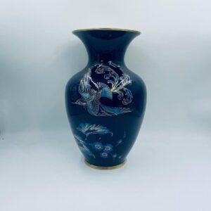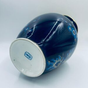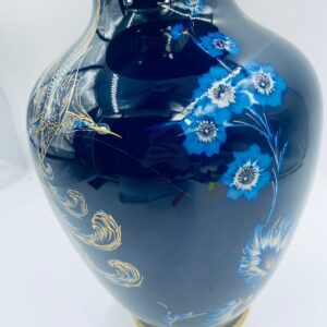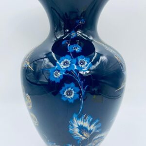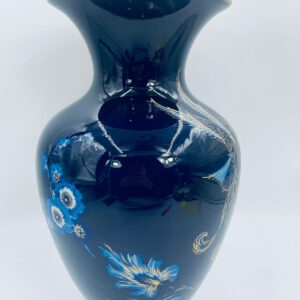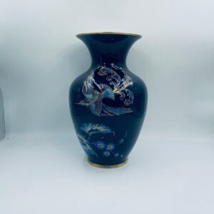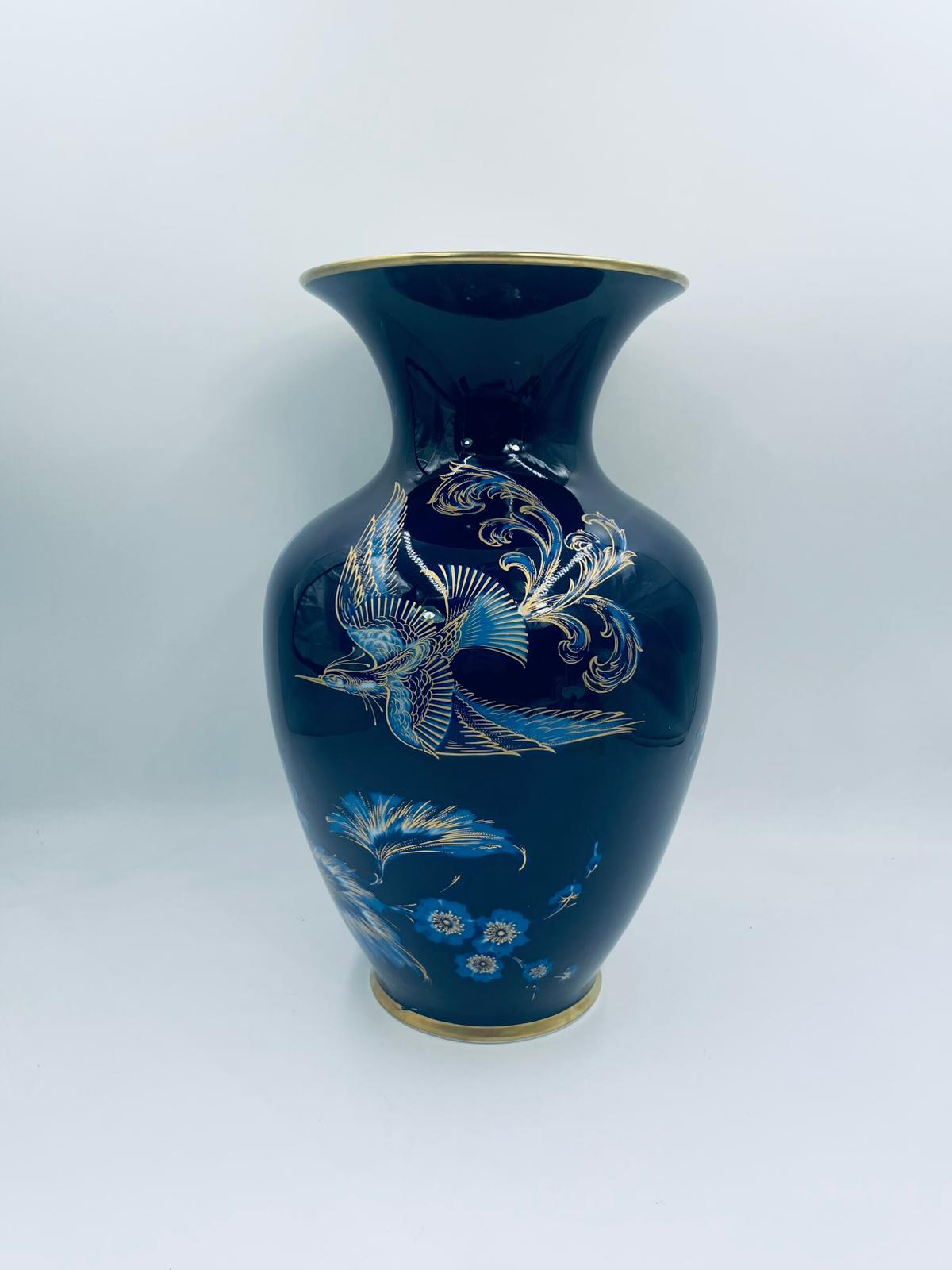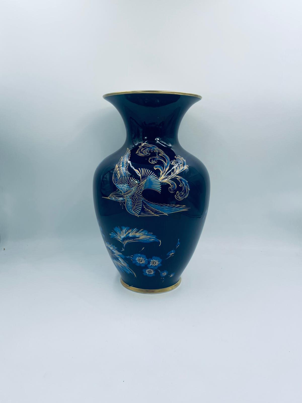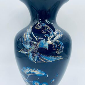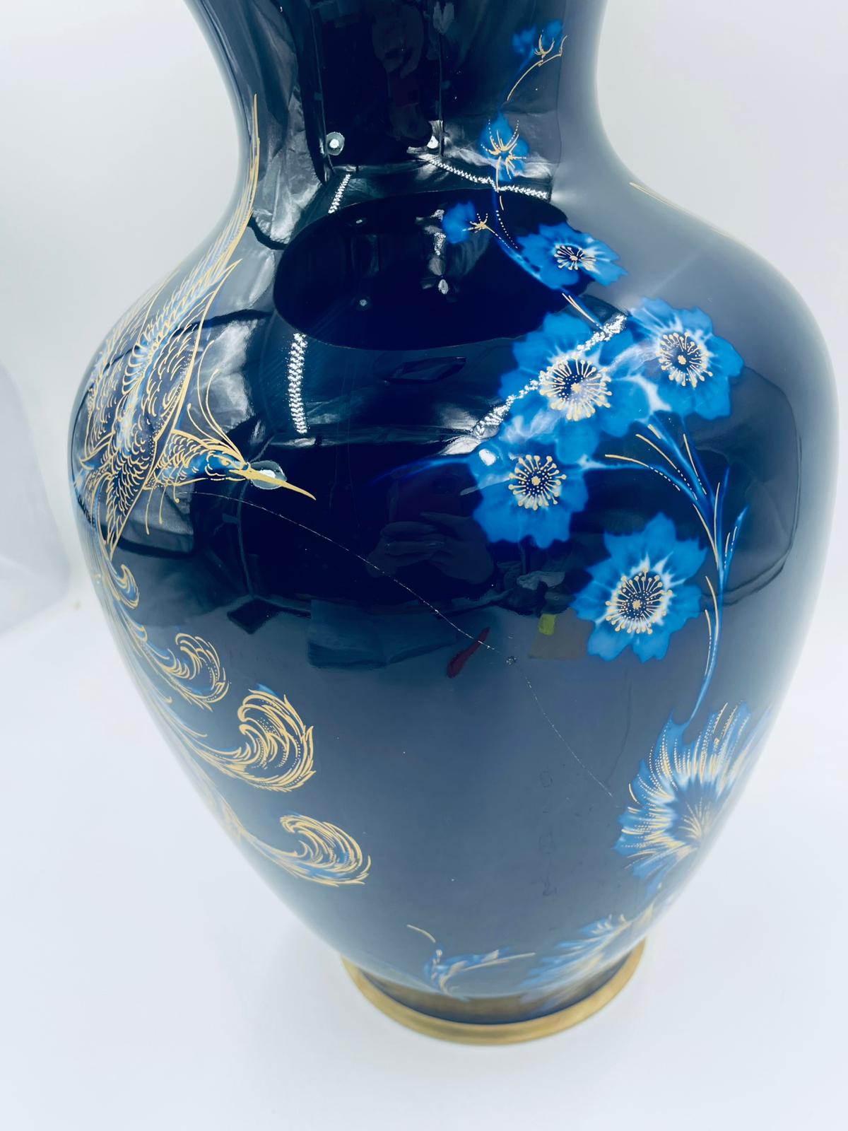 Duży wazon kobaltowo- niebieski Inglasur Schumman Arzberg. Wazon przedstawia rajskiego ptaka. Wykończony złotym rantem.