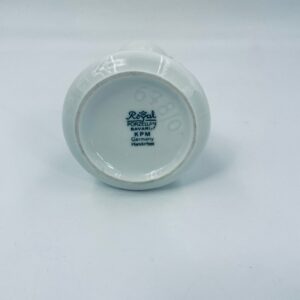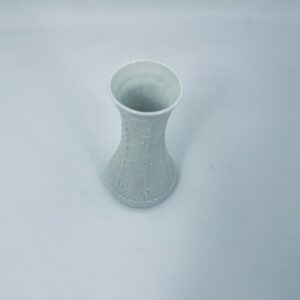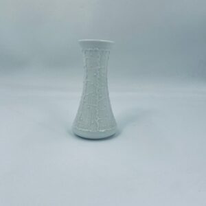 Wazon wytwórni Royal KPM Bavaria, wykonany z białej biskwitowej, nieszkliwionej porcelany na zewnątrz i szkliwionej porcelany wewnątrz oraz przy górnym rancie i u podstawy. Wazonik posiada charakterystyczną, wypukłą, siatkową teksturę z nieregularnymi kropkami. Przedmiot jest pięknym elementem dekoracyjnym każdego wnętrza.