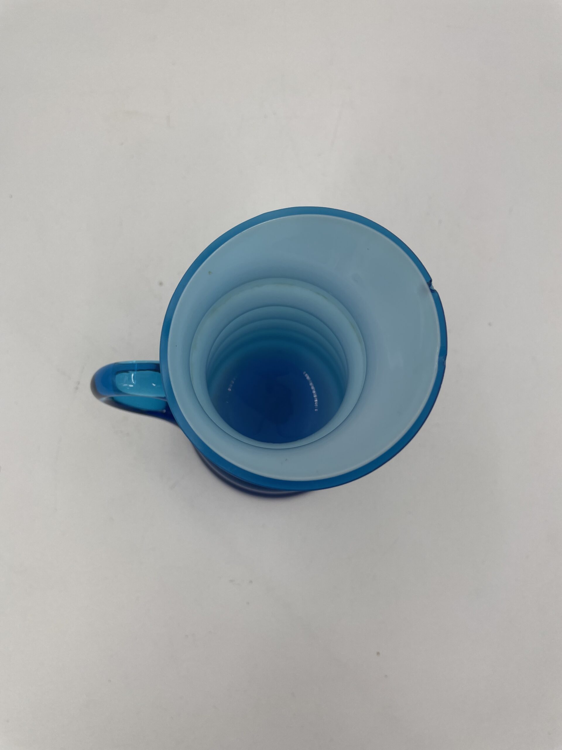 matowego białego szkła wewnątrz, pokrytego przezroczystym niebieskim szkłem.