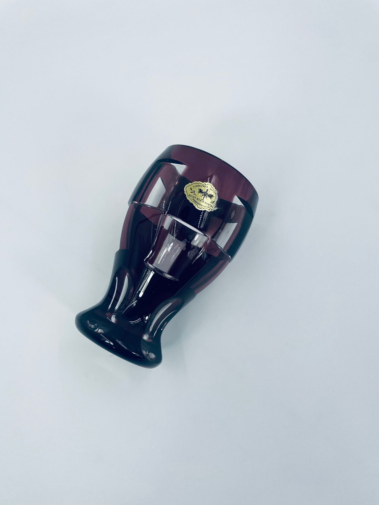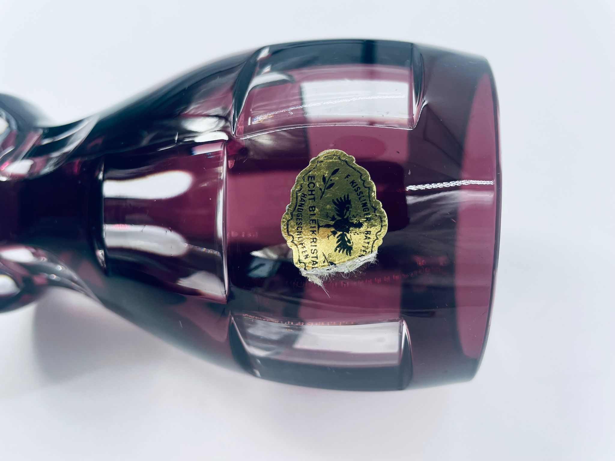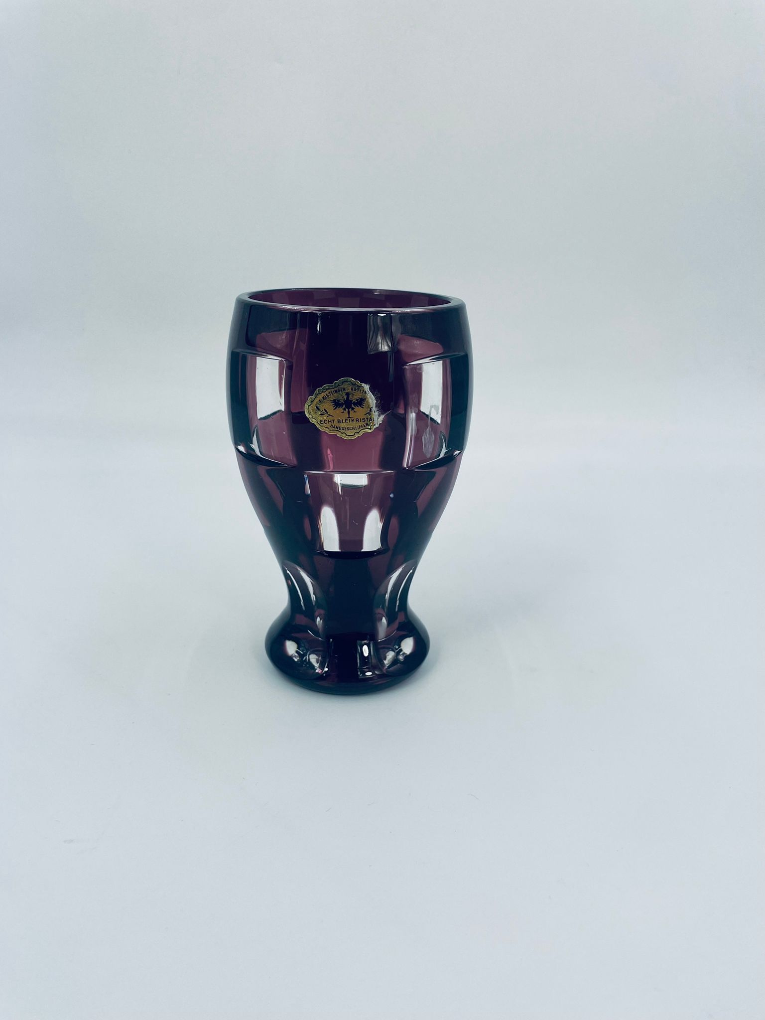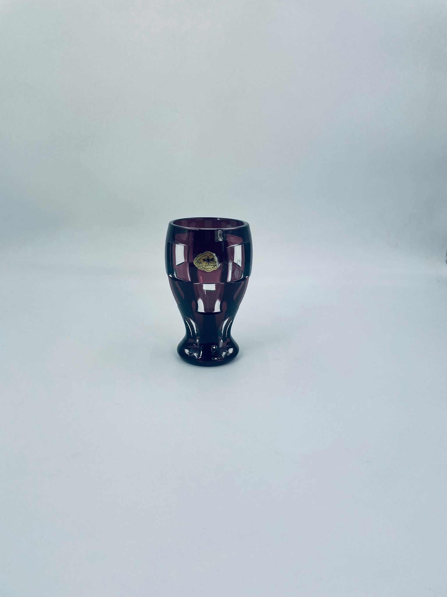 Wazon Echt Bleikristal, wykonany z wysokiej jakości prawdziwego szkła kryształowego ołowiowego,barwiony w kolorze fioletowym. Wazonik posiada fasetowana powierzchnię.