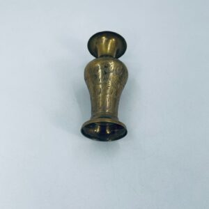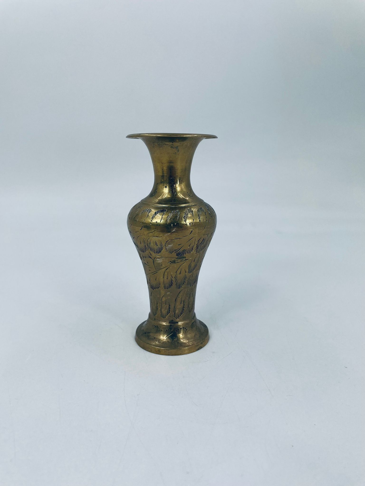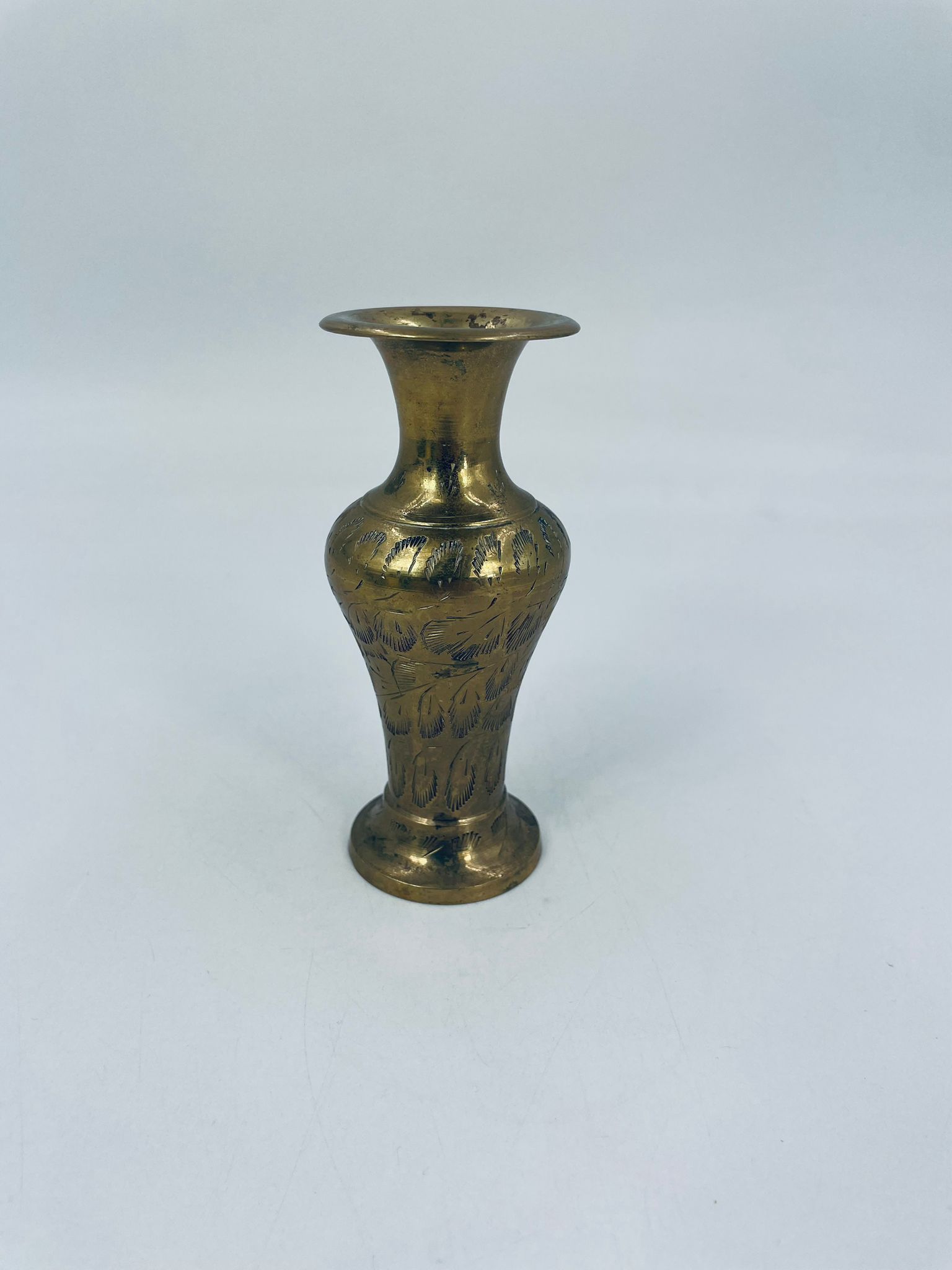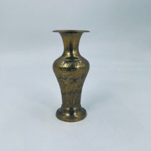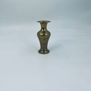 Wazonik wykonany z mosiądzu w Indiach, zdobiony grawerowanym wzorem kwiatowym w stylu boho. Może służyć do eksponowania kwiatów lub jako samodzielny element dekoracyjny.