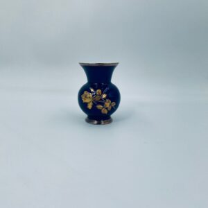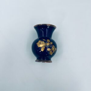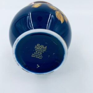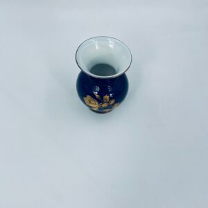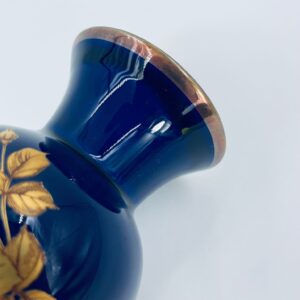 Wazonik wytwórni Royal Porzellan KPM Bavaria, wykonany z wysokiej jakości porcelany w kolorze kobaltowym. Wazonik posiada ozdobną złocona górną krawędź, zaokrąglony kształt korpusu oraz złocony wzór w postaci Róż.