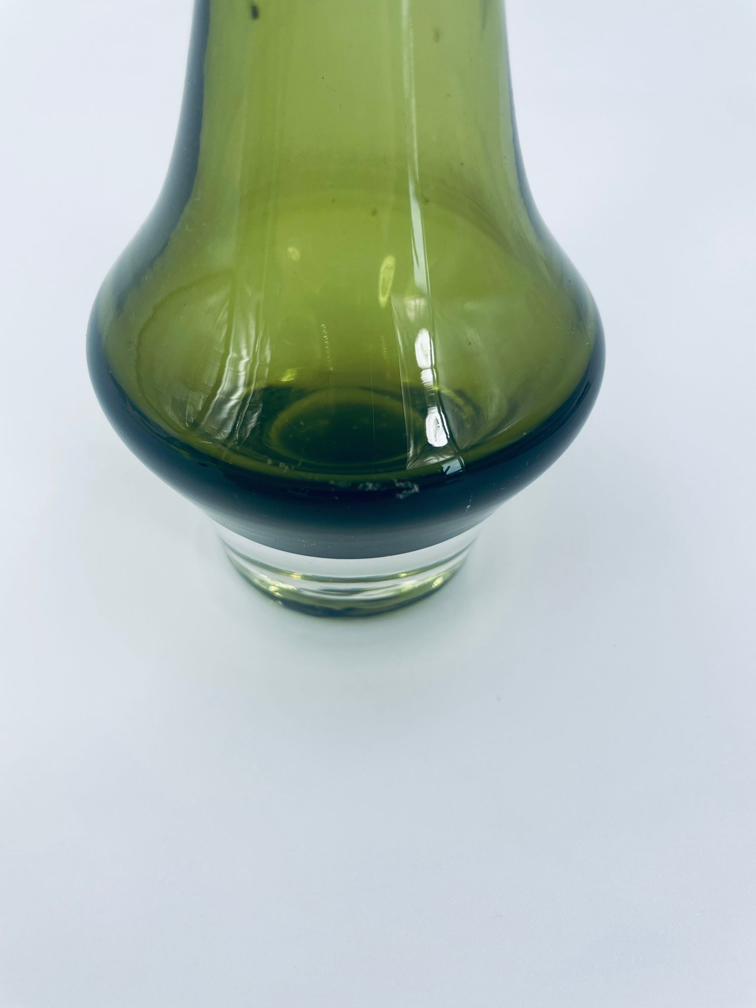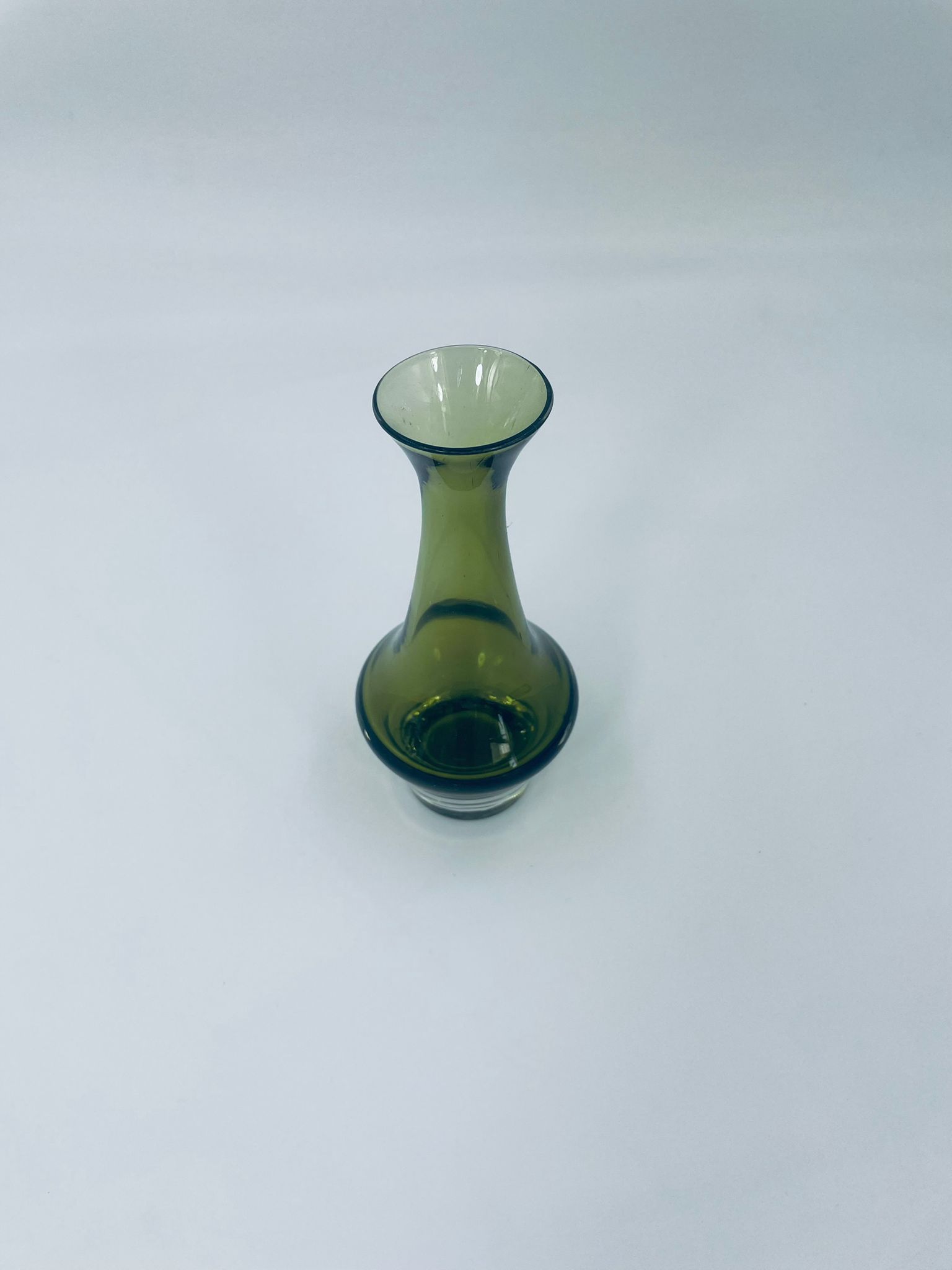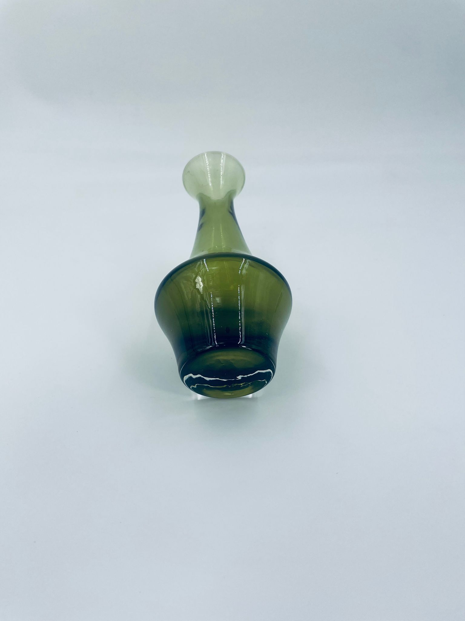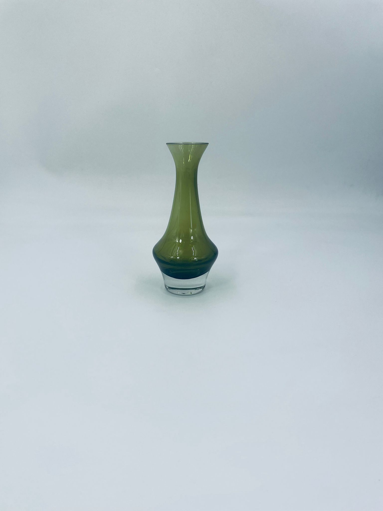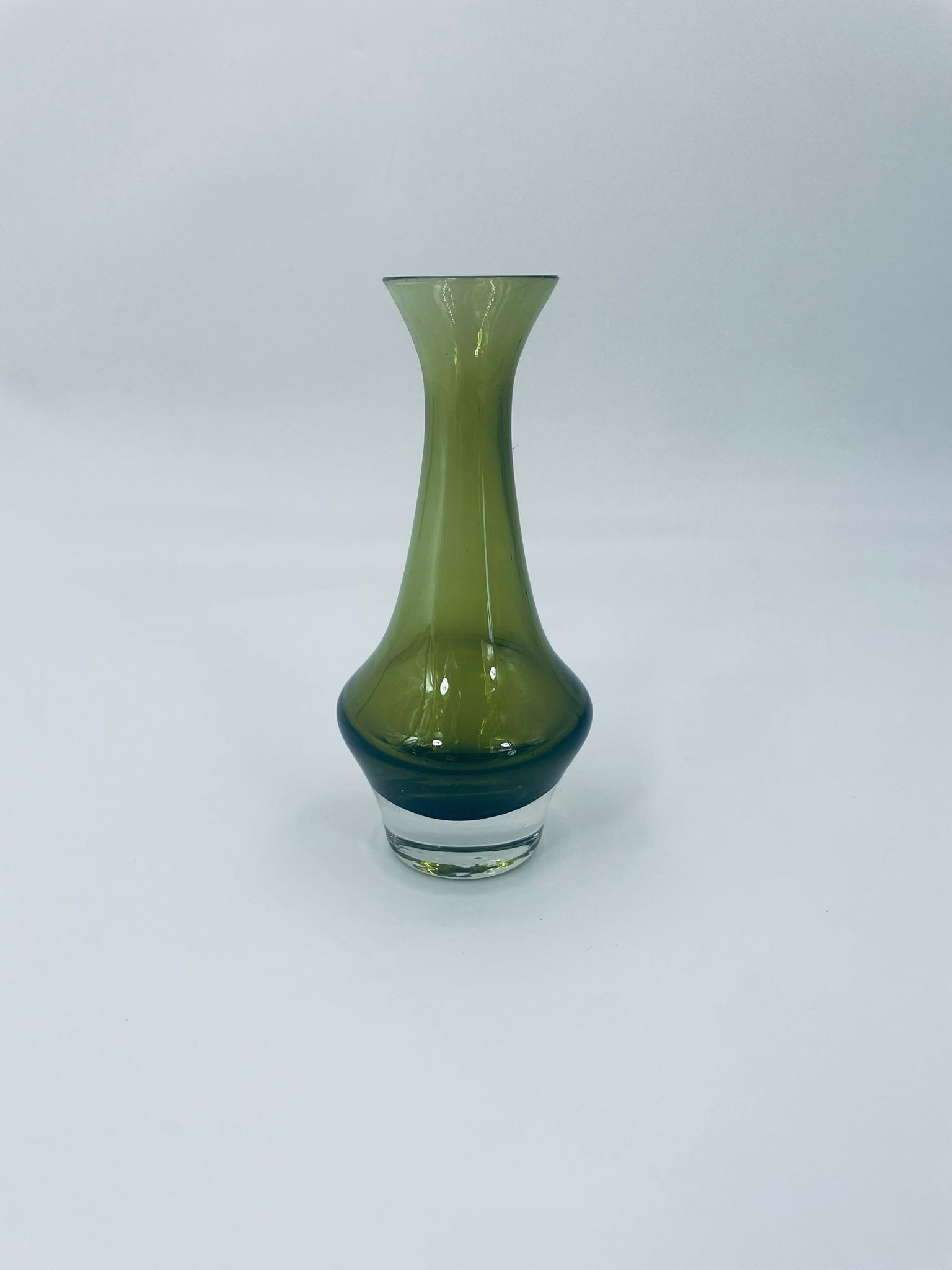 Wazonik ze szkła artystycznego w kolorze zielonego avocado, ręcznie dmuchany z grubą podstawą. Idealnie pasuje do każdego wnętrza.
