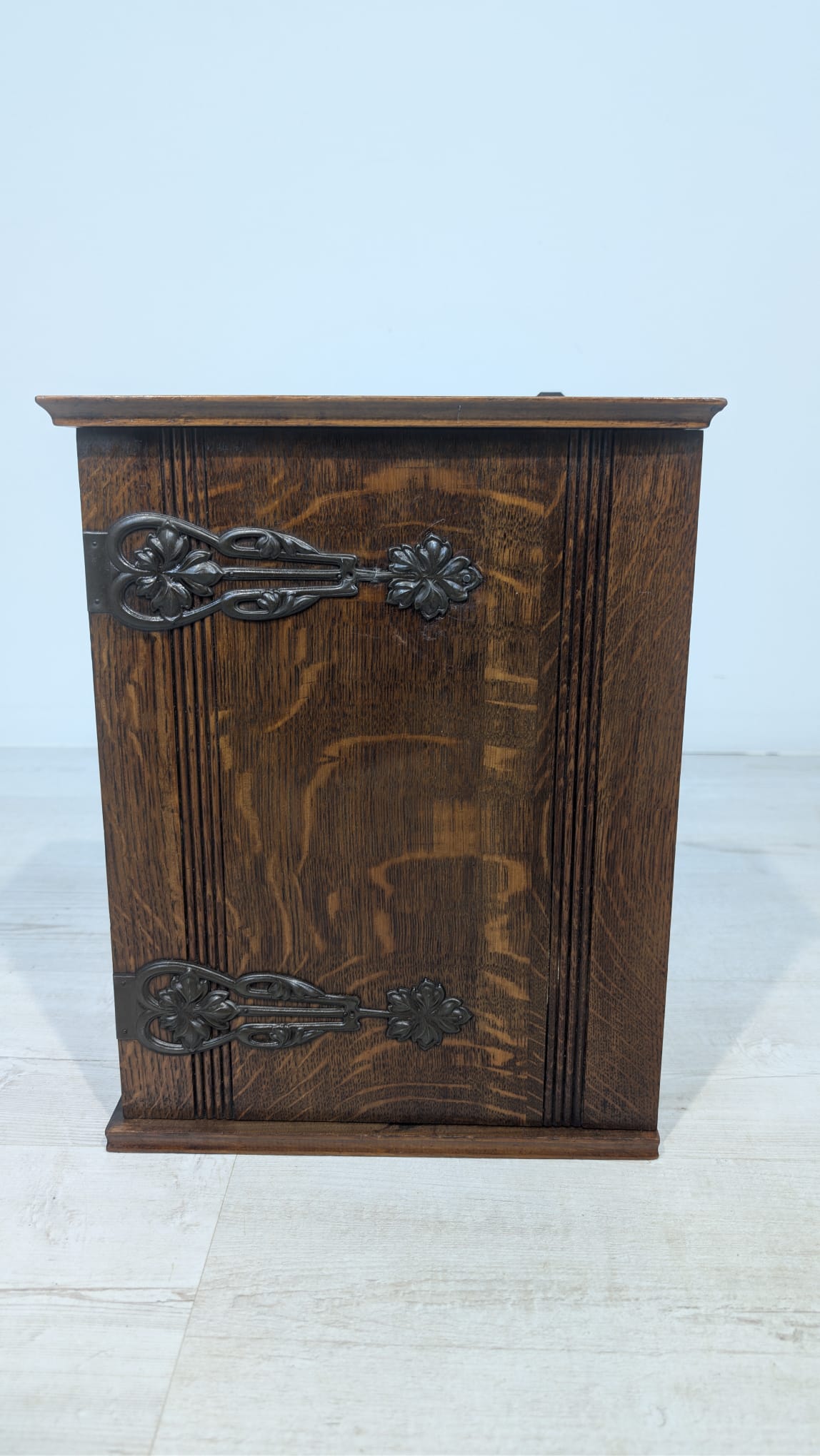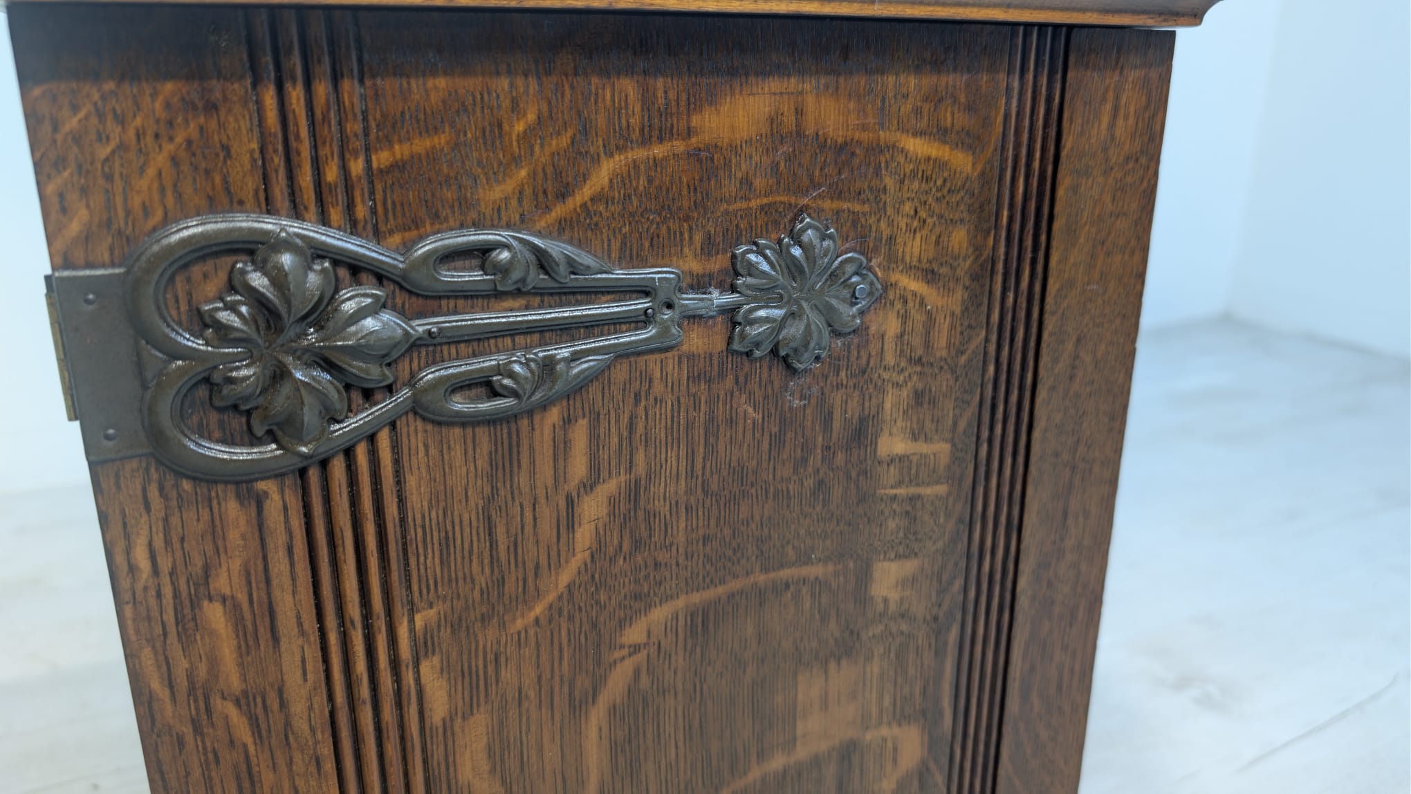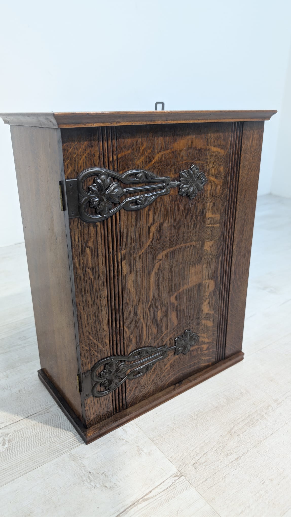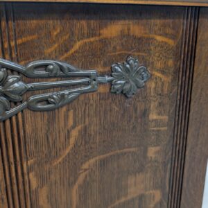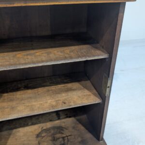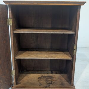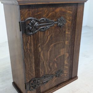 Stylowy, drewniany wisząca szafka w stylu art nouveau, idealny do apteki lub wnętrza w stylu retro. Solidna konstrukcja z pięknymi rzeźbionymi detalami. Doskonały na przechowywanie leków, ziół lub innych przedmiotów.