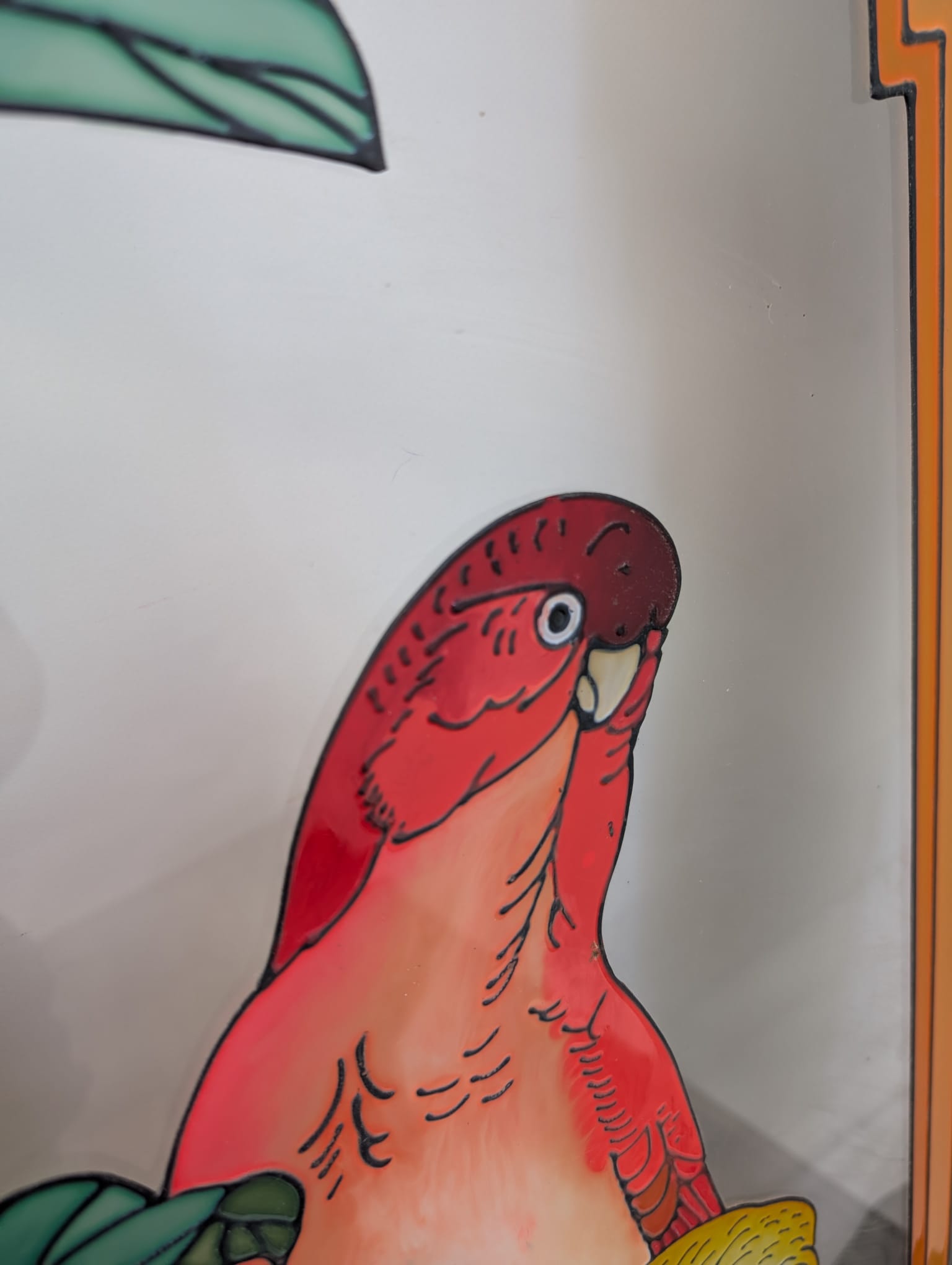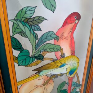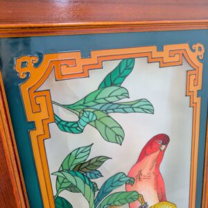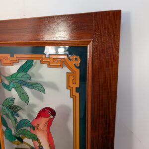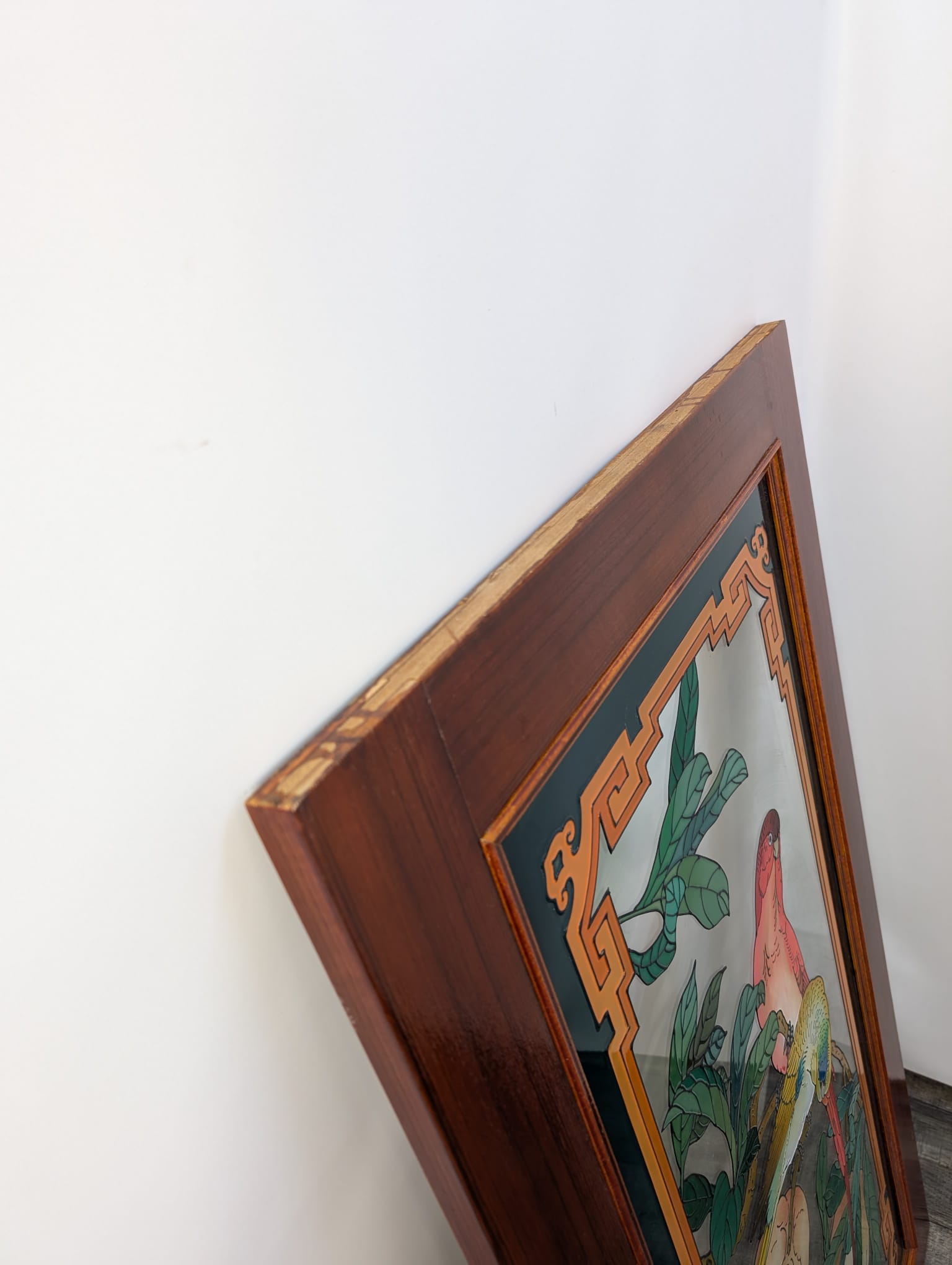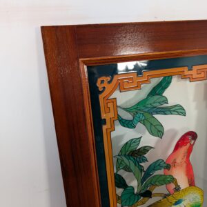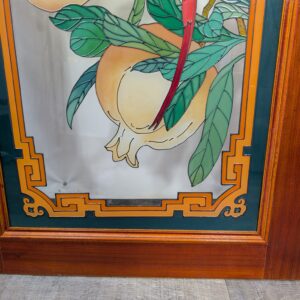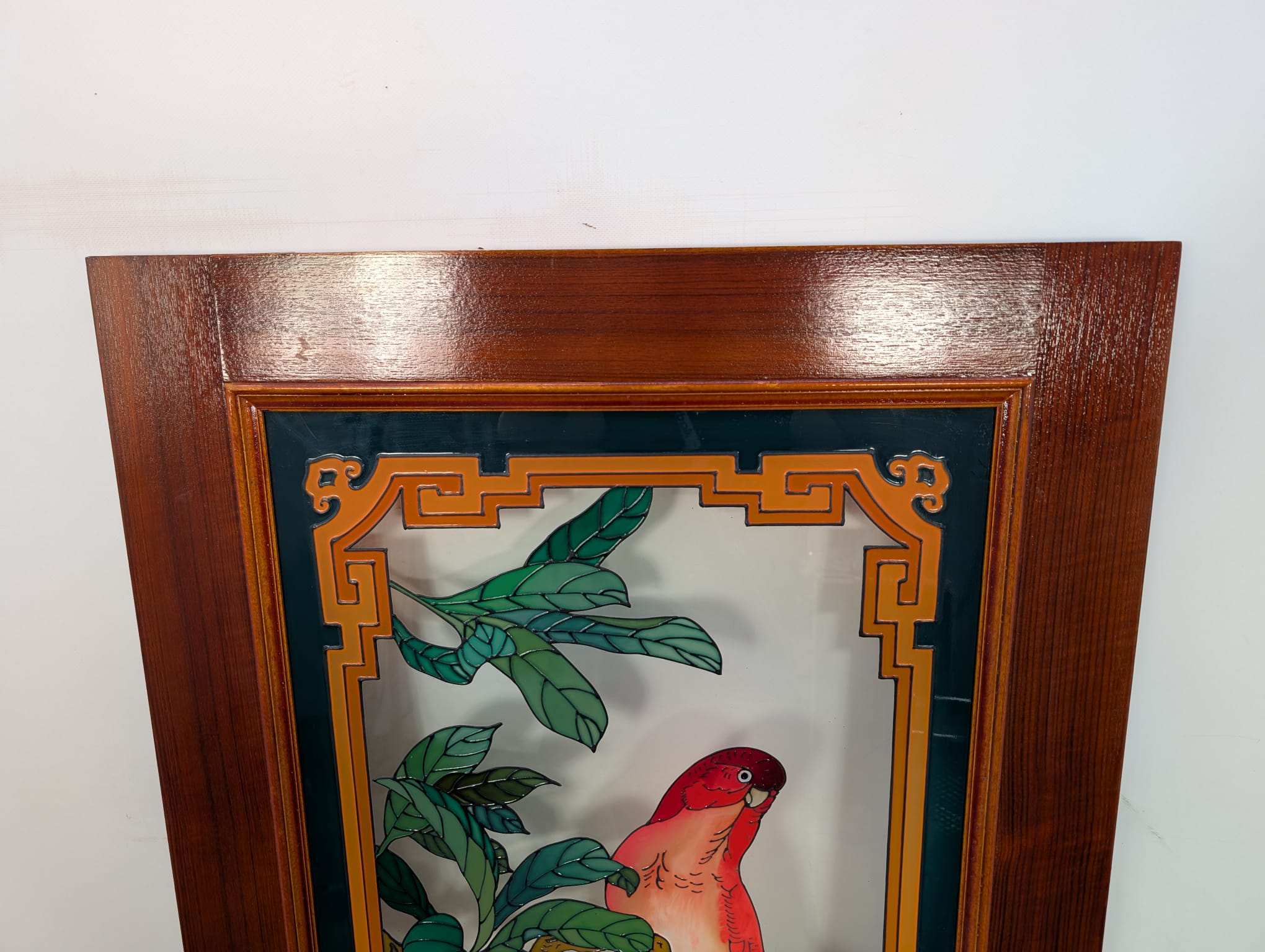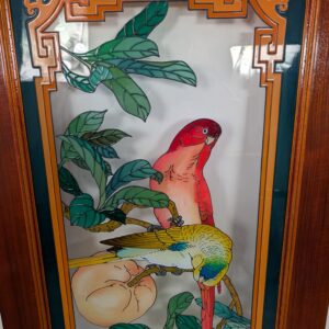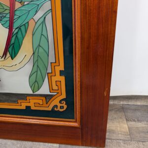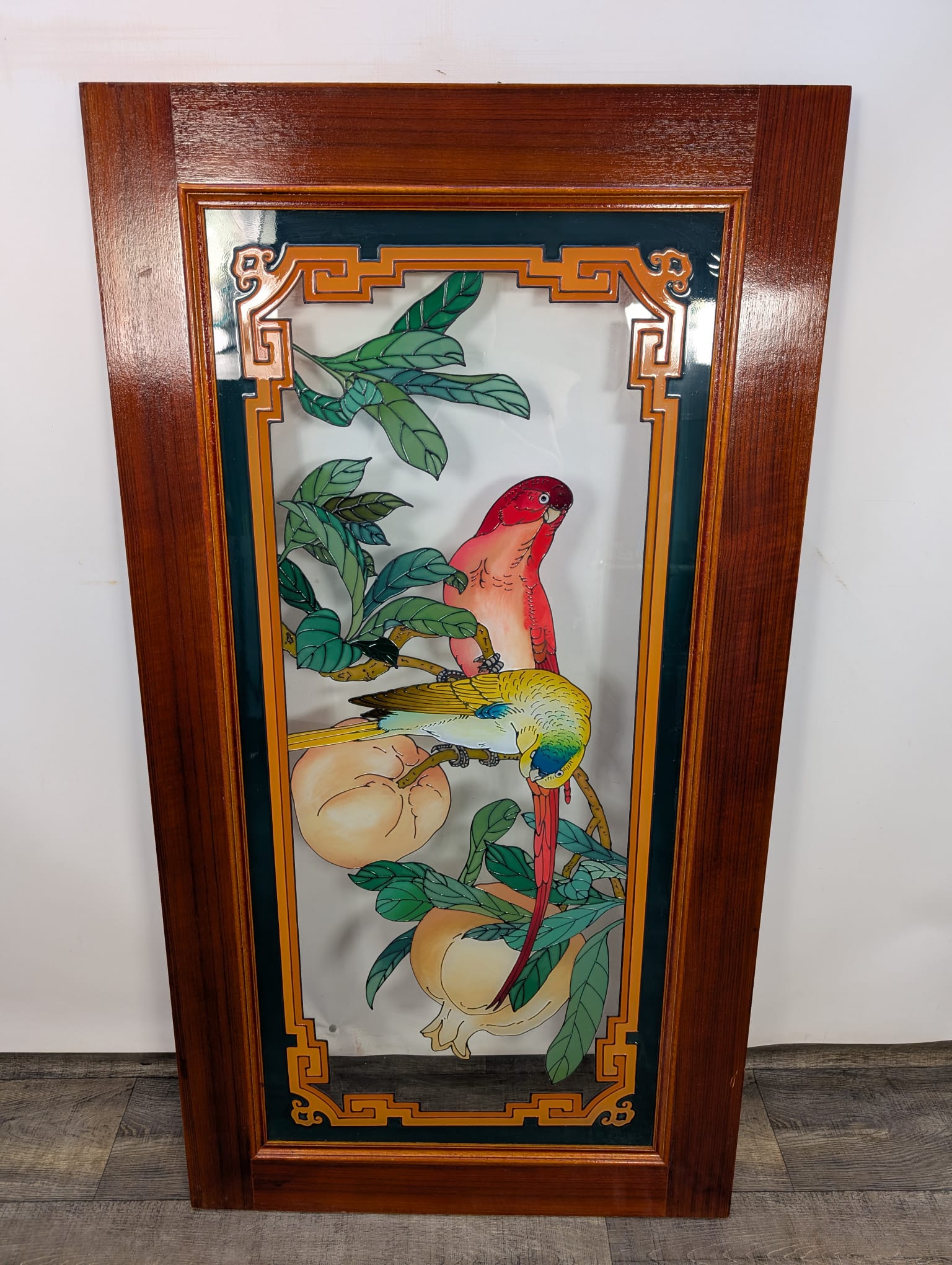 Witraż w drewnianej ramie malowany na szkle charakterystyczne na kultury chińskiej.