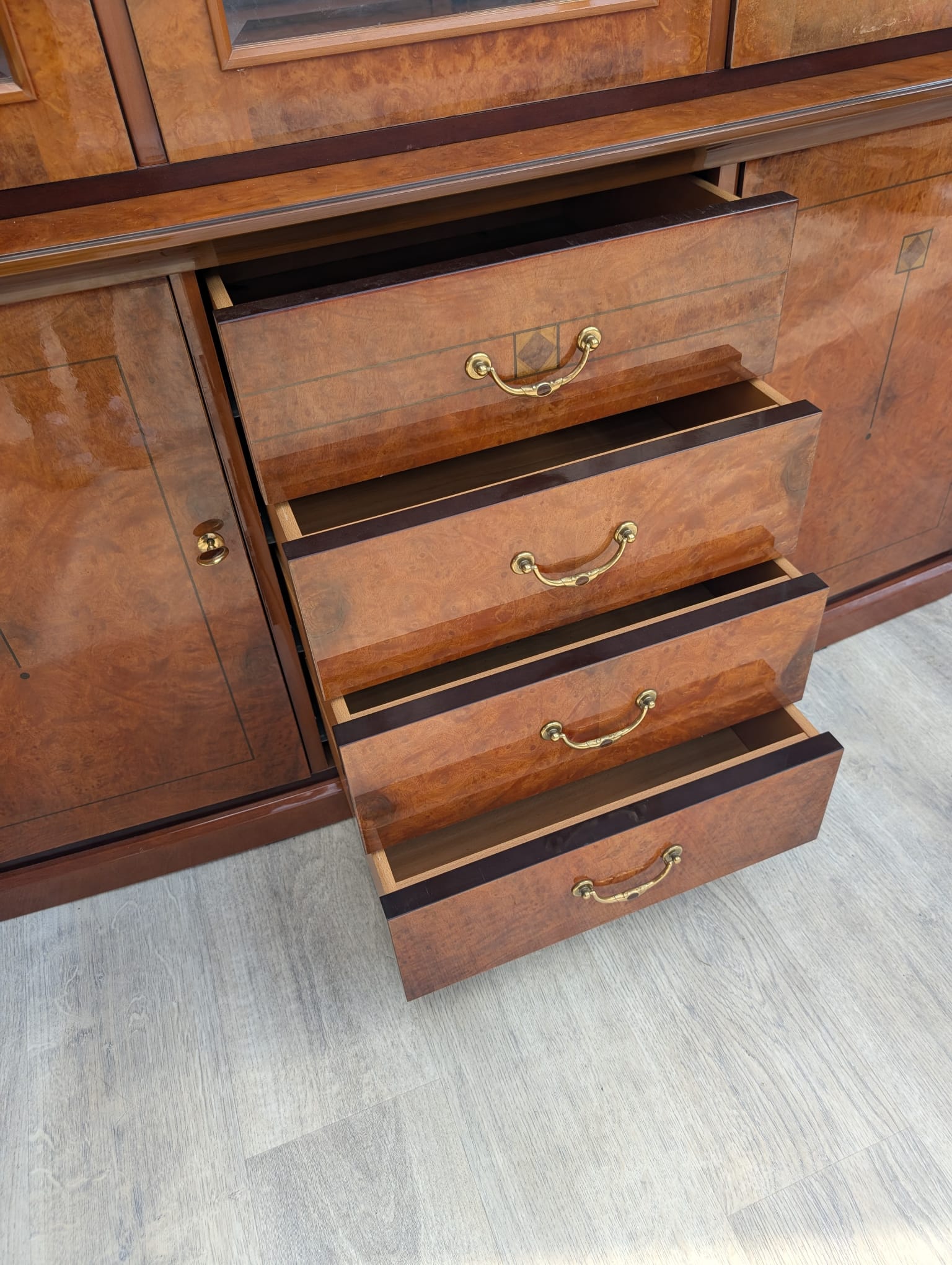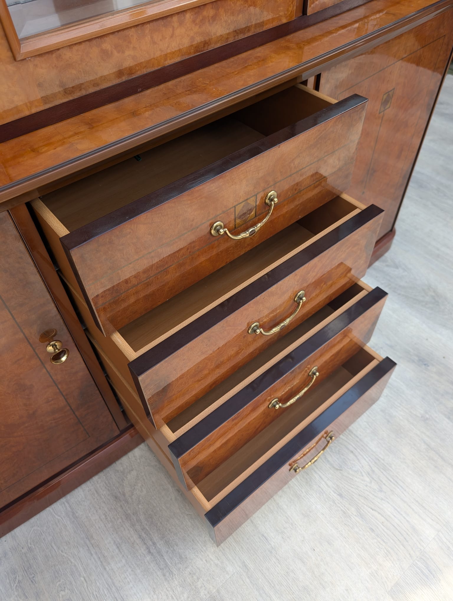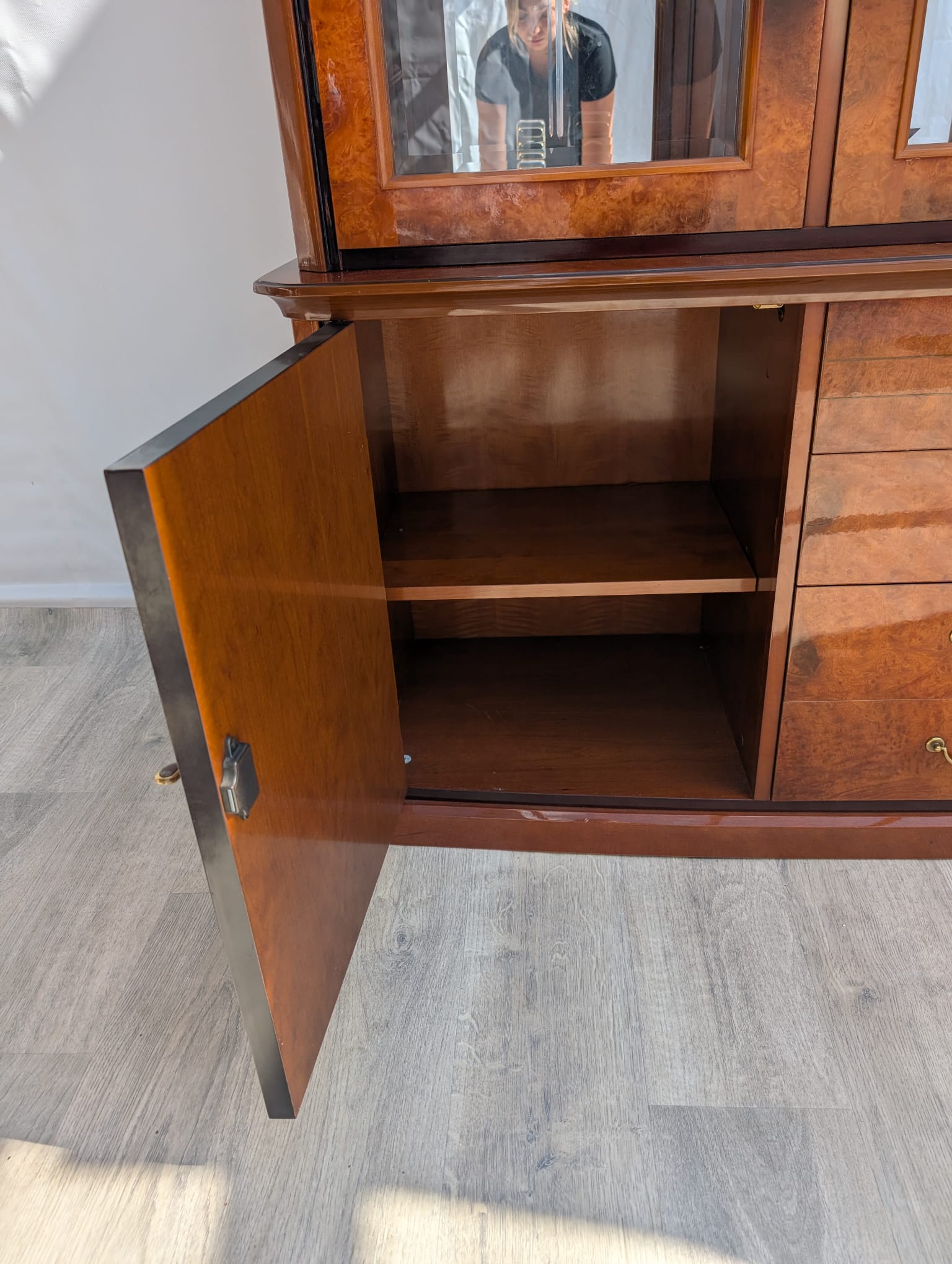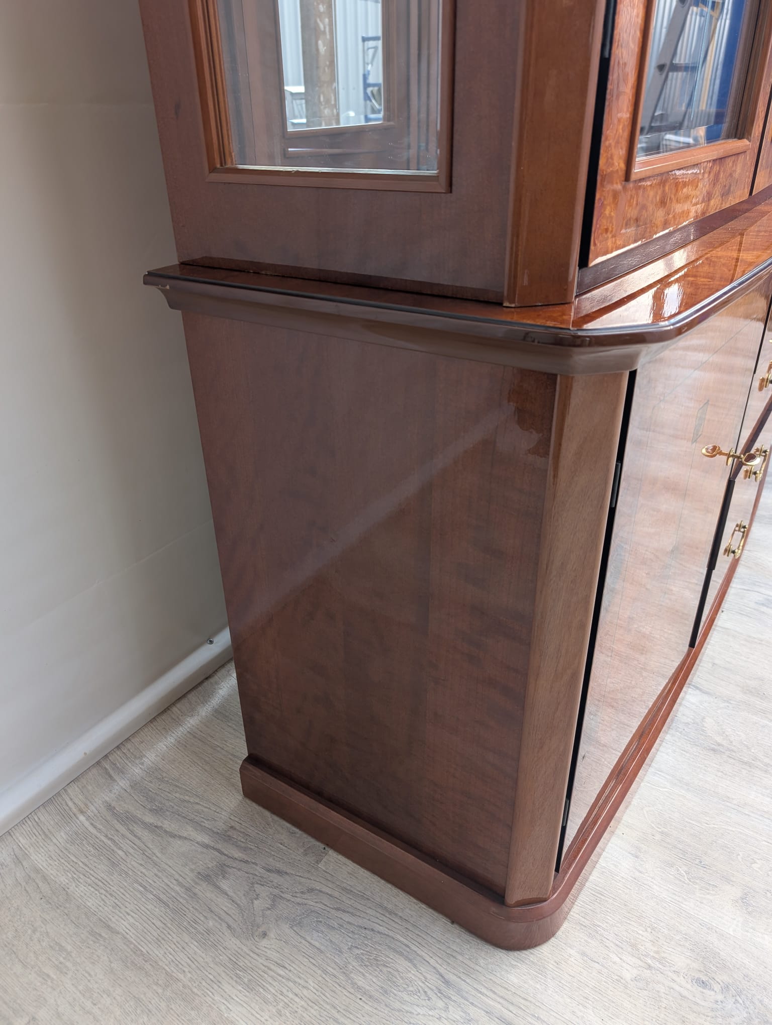 Wysokiej klasy włoska witryna w orzechu wykonana na wysoki połysk.
