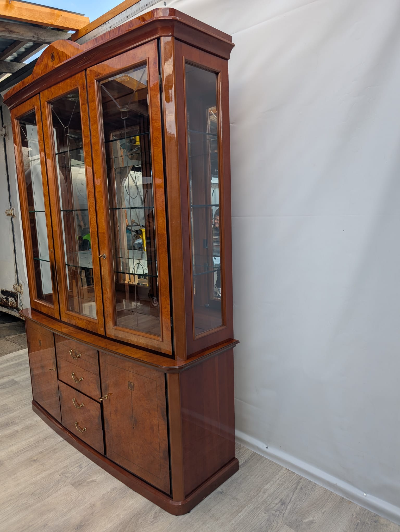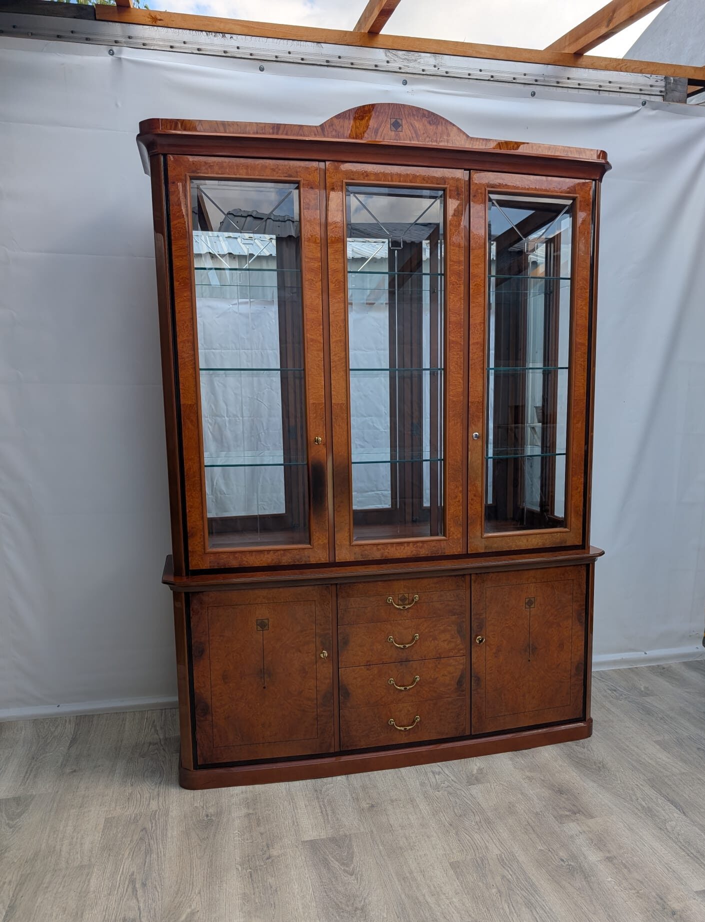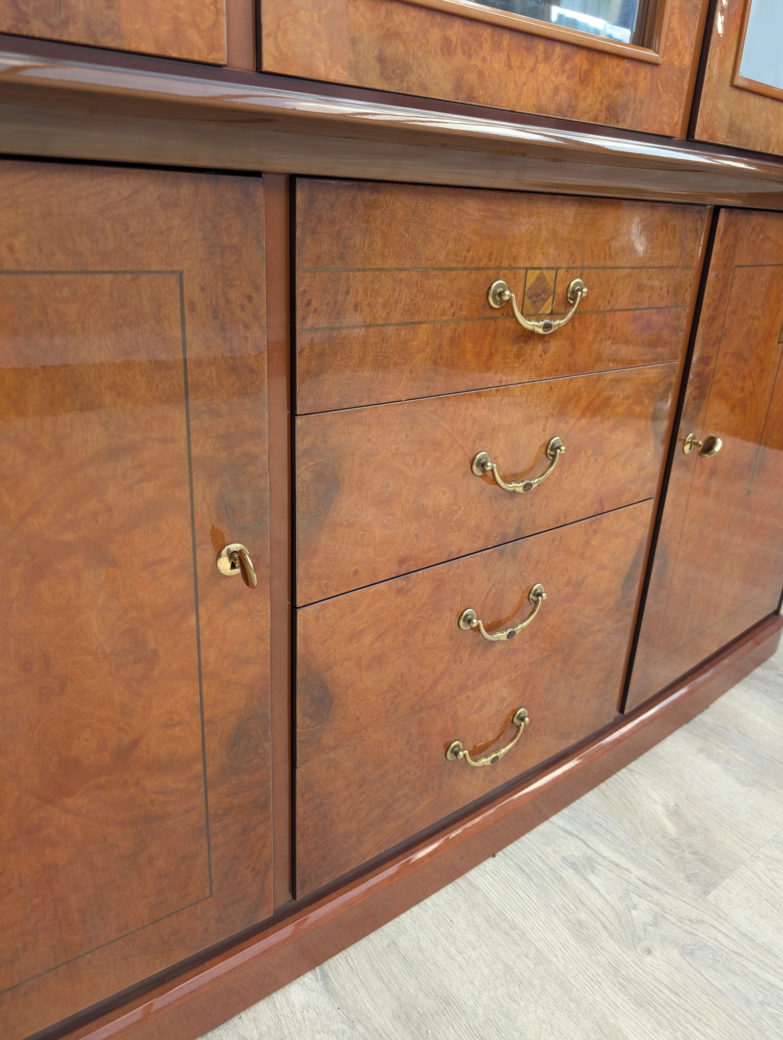 Wysokiej klasy włoska witryna w orzechu wykonana na wysoki połysk.