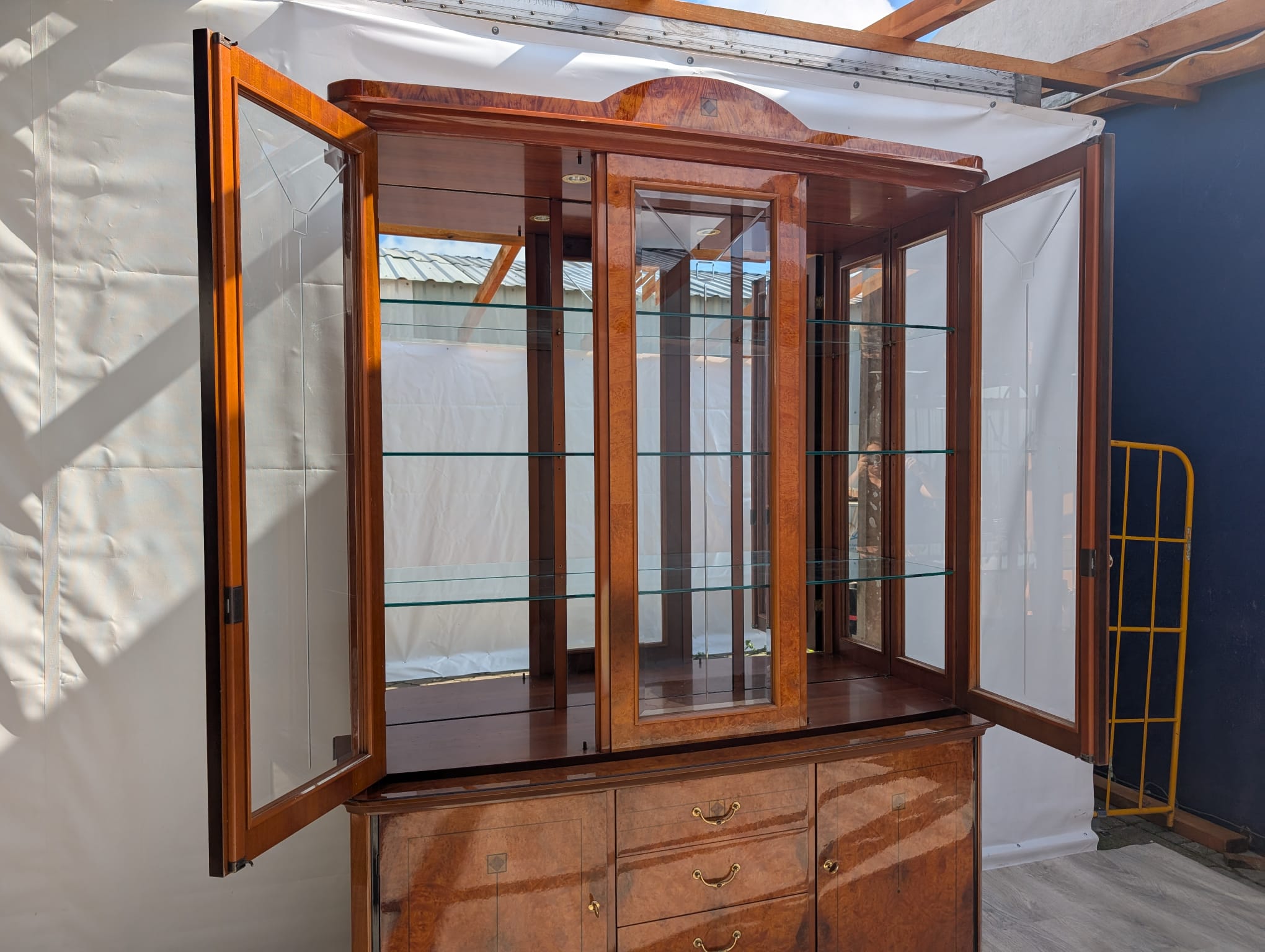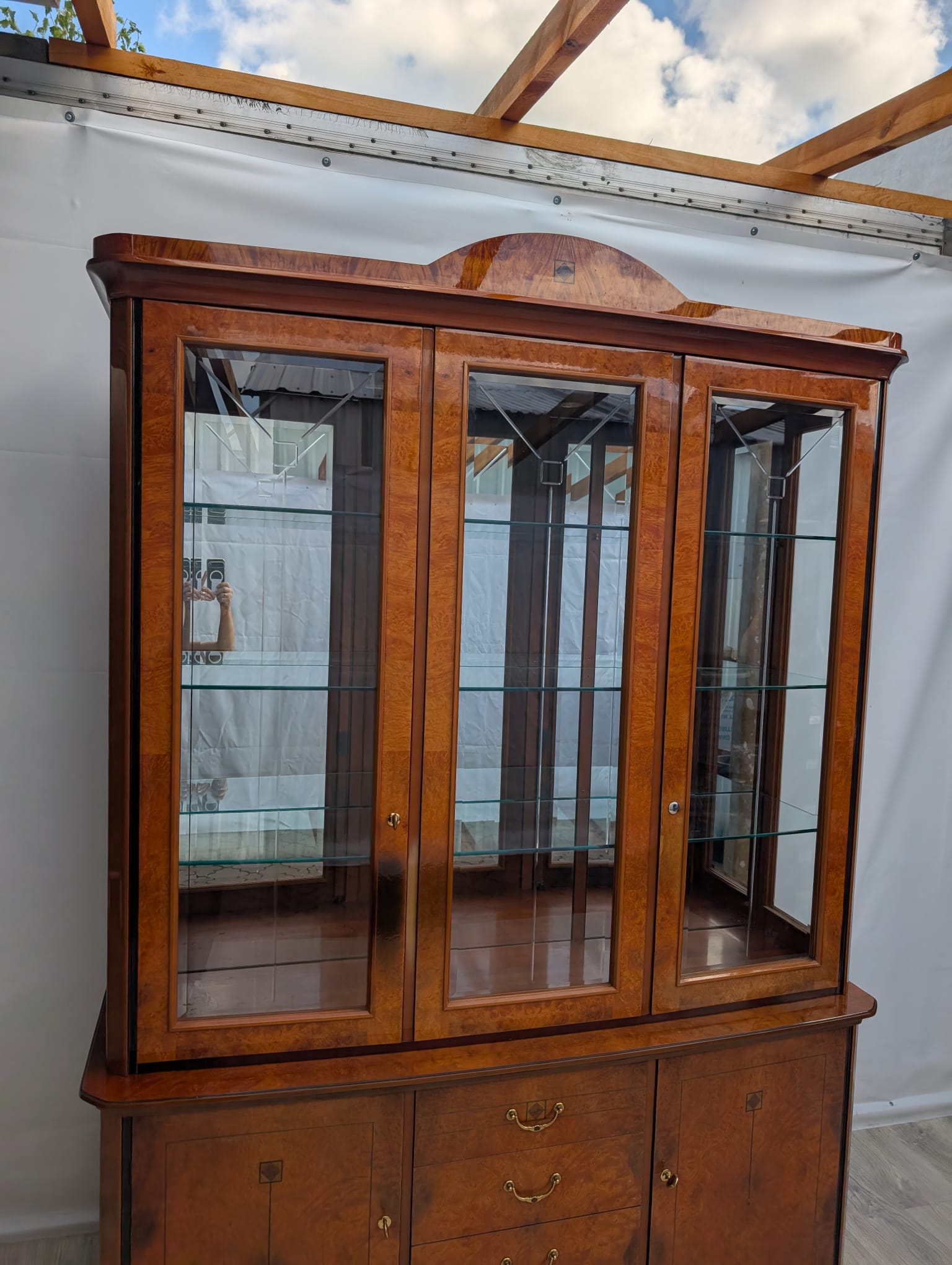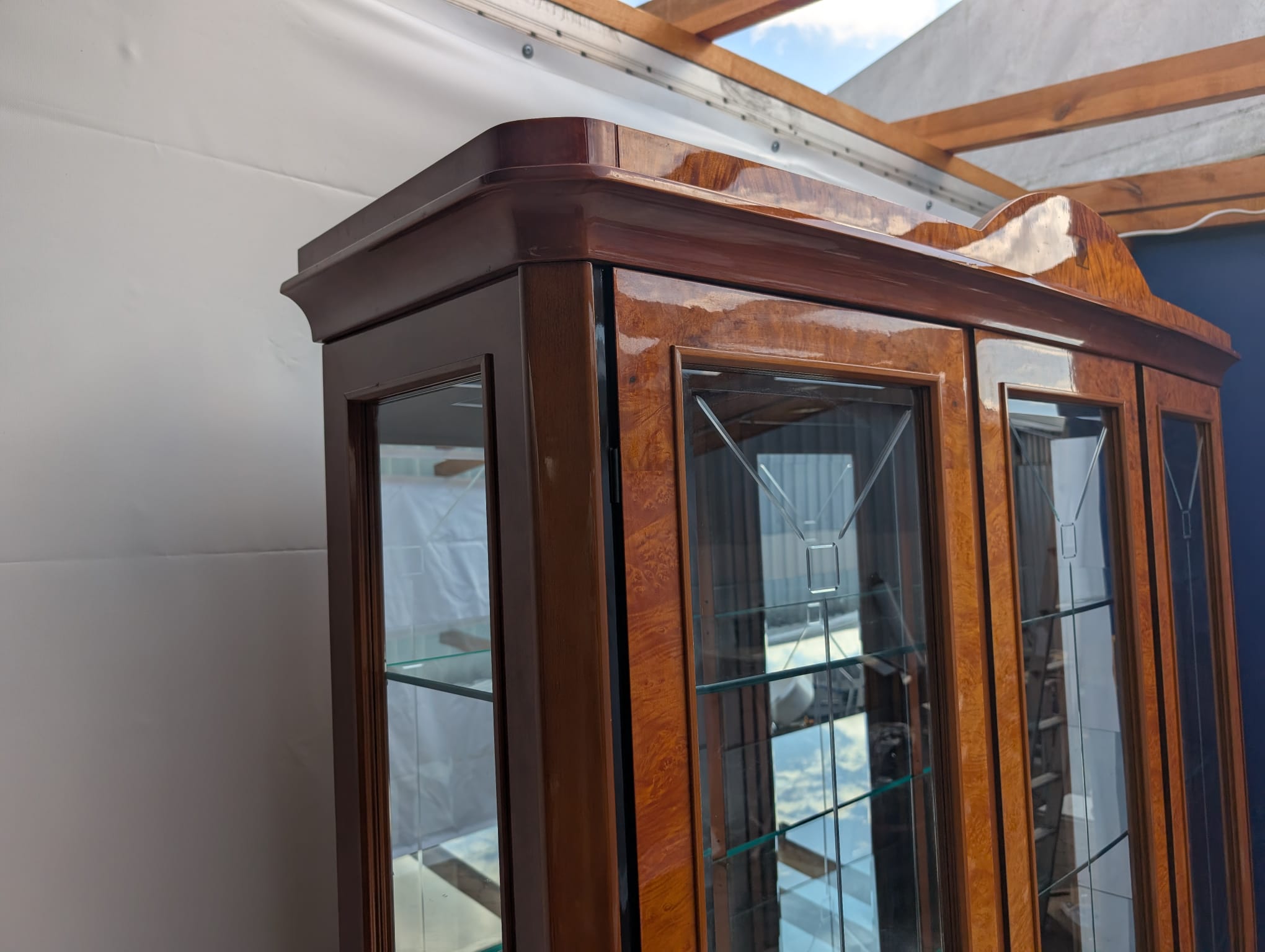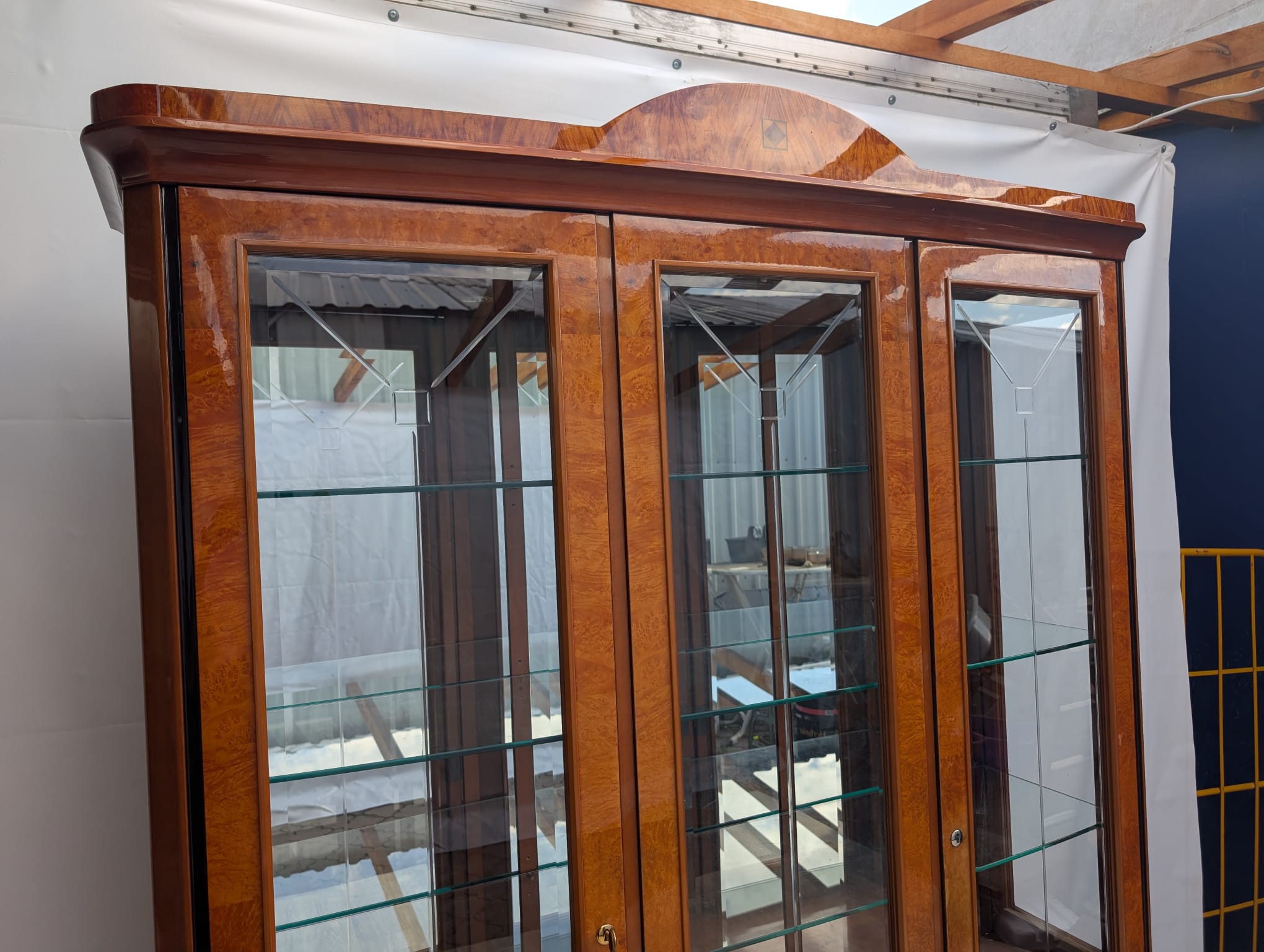 Wysokiej klasy włoska witryna w orzechu wykonana na wysoki połysk.