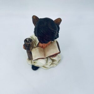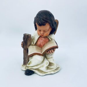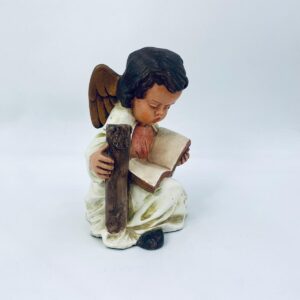 Zabytkowa figurka kolekcjonerska niemieckiej firmy Achatit , wykonana z naturalnego kamienia. Figurka ręcznie robiona, ręcznie malowana, przedstawia Aniołka czytającego książkę i trzymającego słupek, który może pełnić funkcję świecznika.