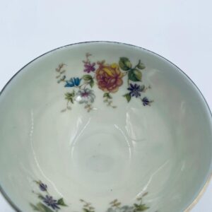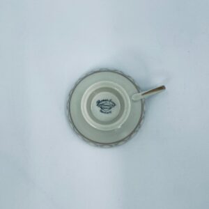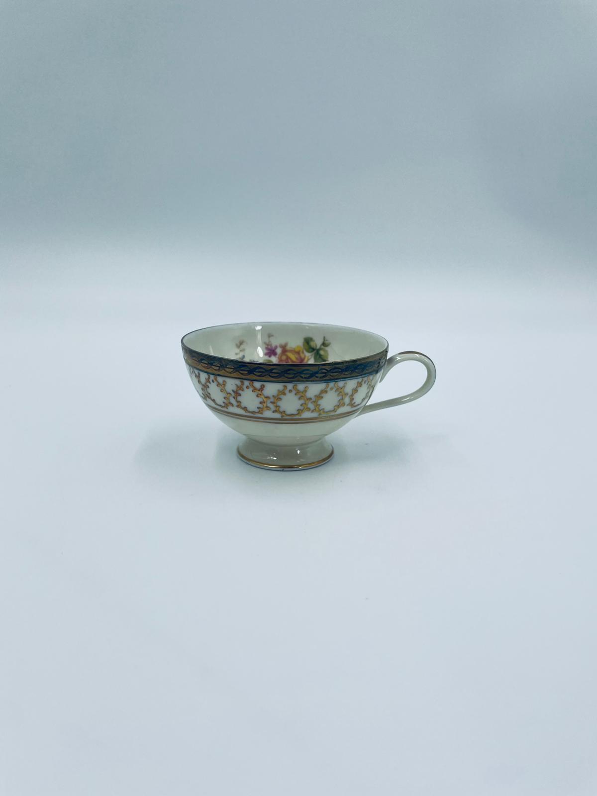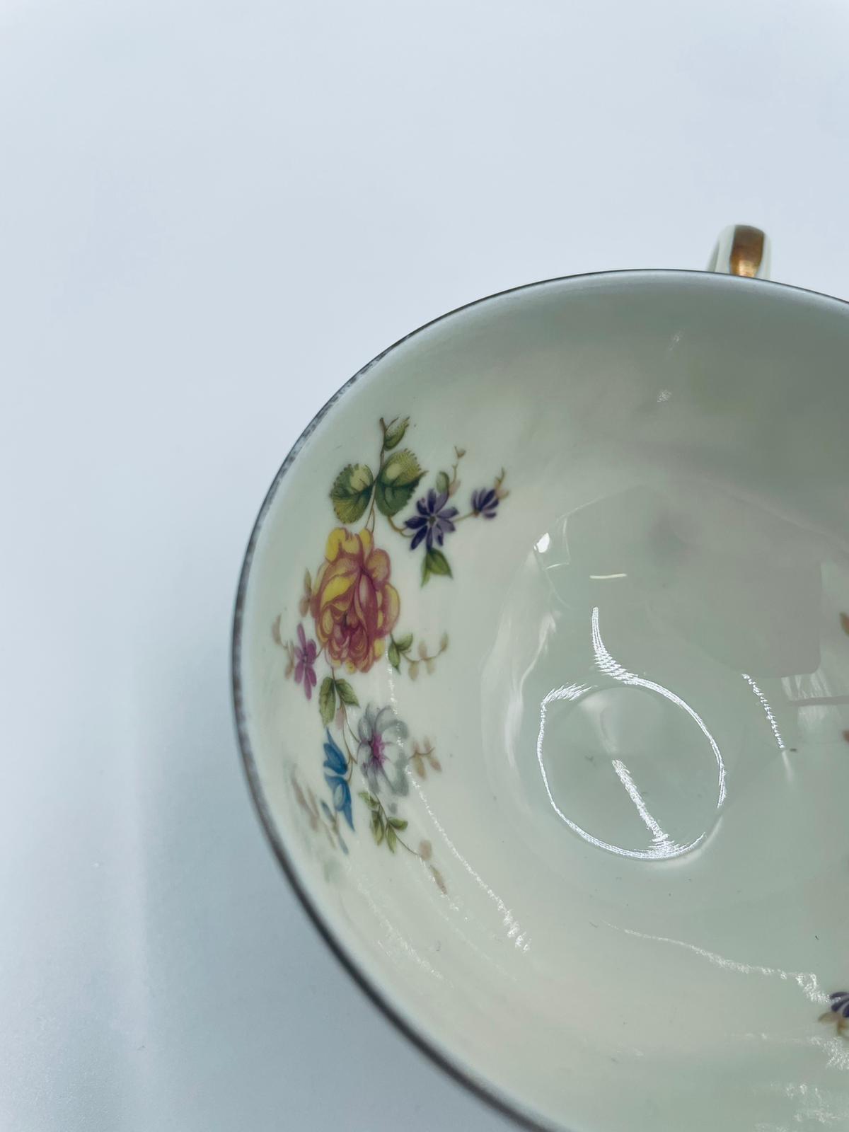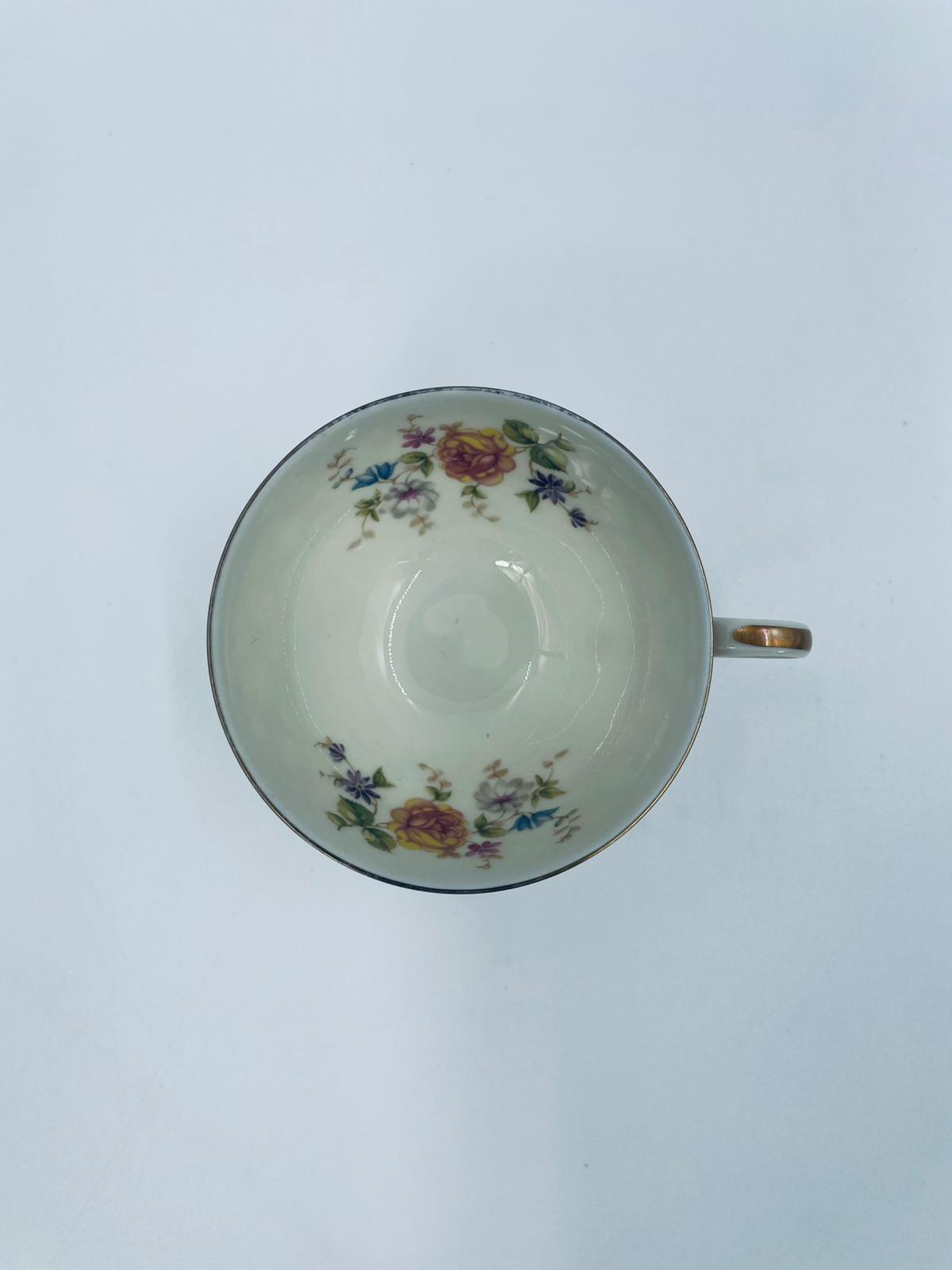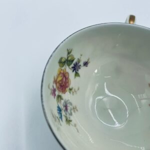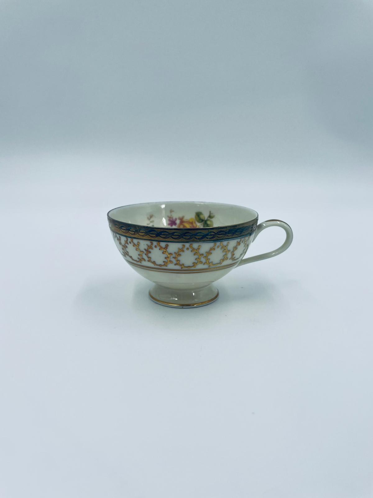 Zabytkowa filiżanka kolekcjonerska wytwórni Thomas Ivory Bavaria, wykonana z wysokiej jakości porcelany w kolorze ecru. Filiżanka posiada misterny wzór kwiatowy wewnątrz oraz złoty wzór z zewnątrz, wykończona złoceniem na rancie. Posiada przetarcie na złoceniu.