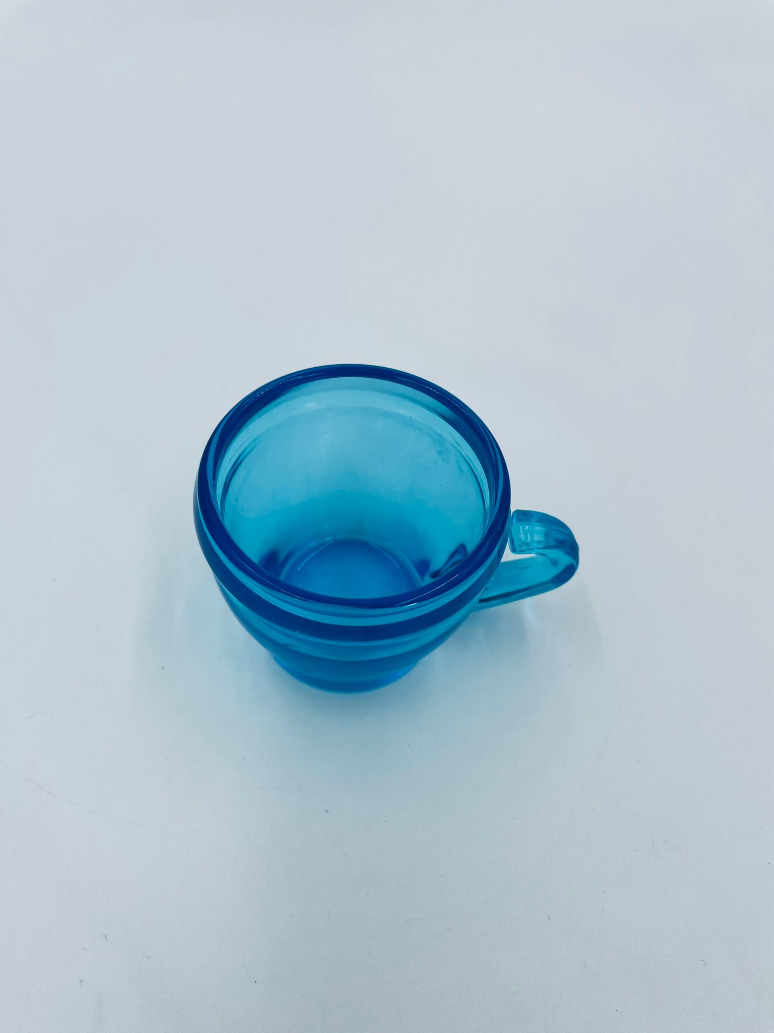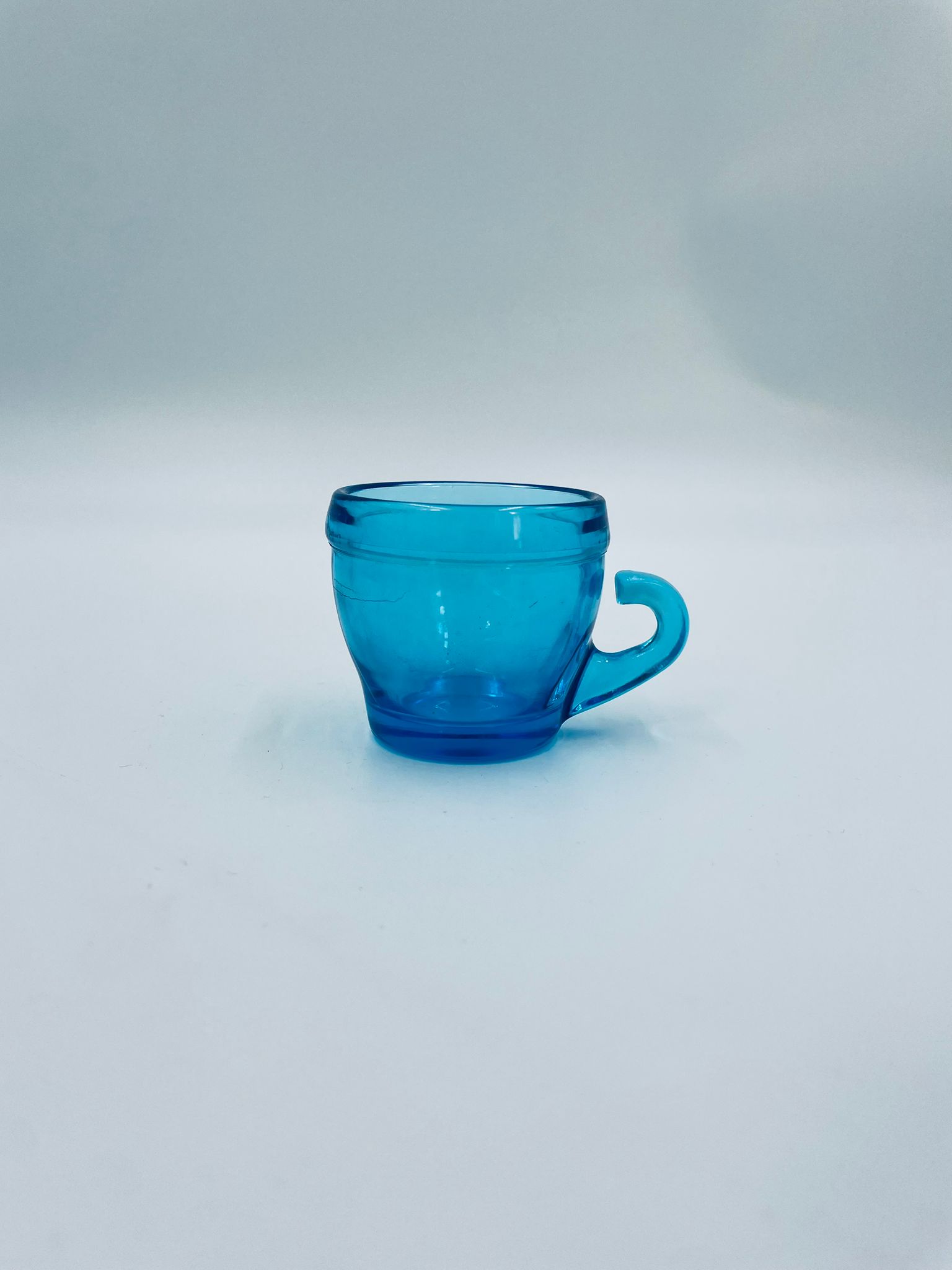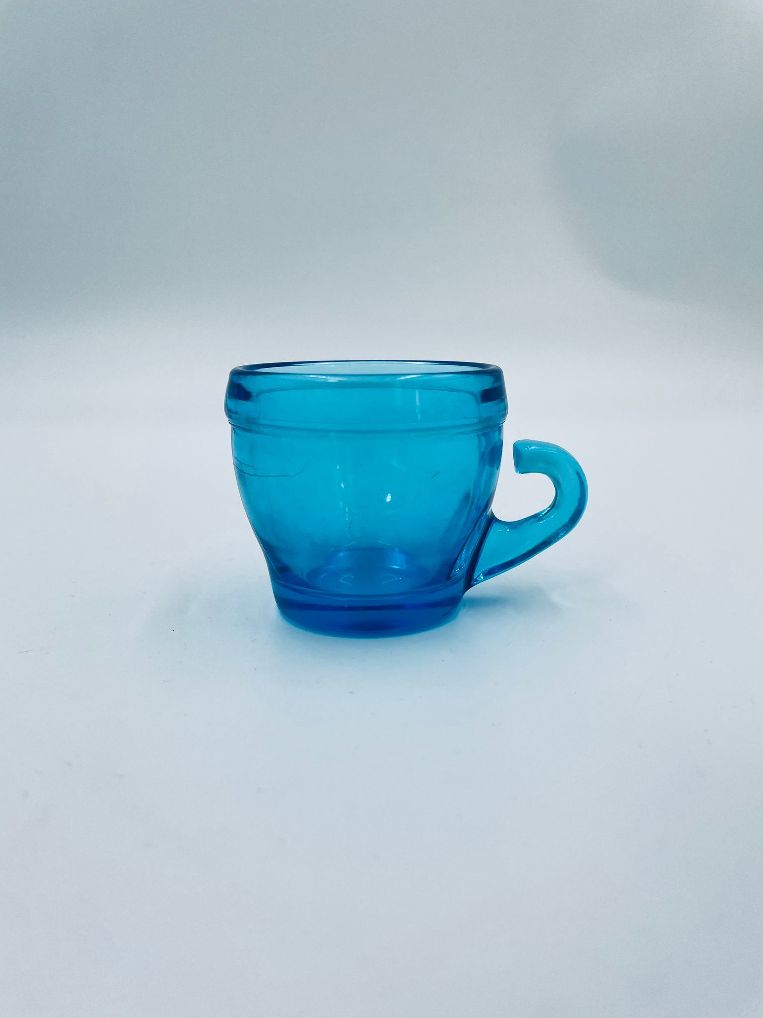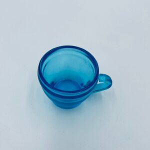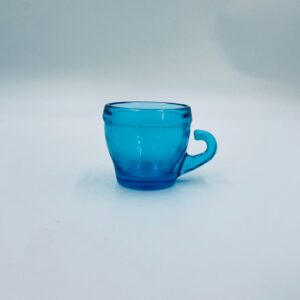 Zabytkowa mała filiżanka do kawy w stylu Vintage, wykonana z wysokiej jakości grubego szkła w kolorze turkusowym. Filiżanka o charakterystycznym designie z uchwytem.