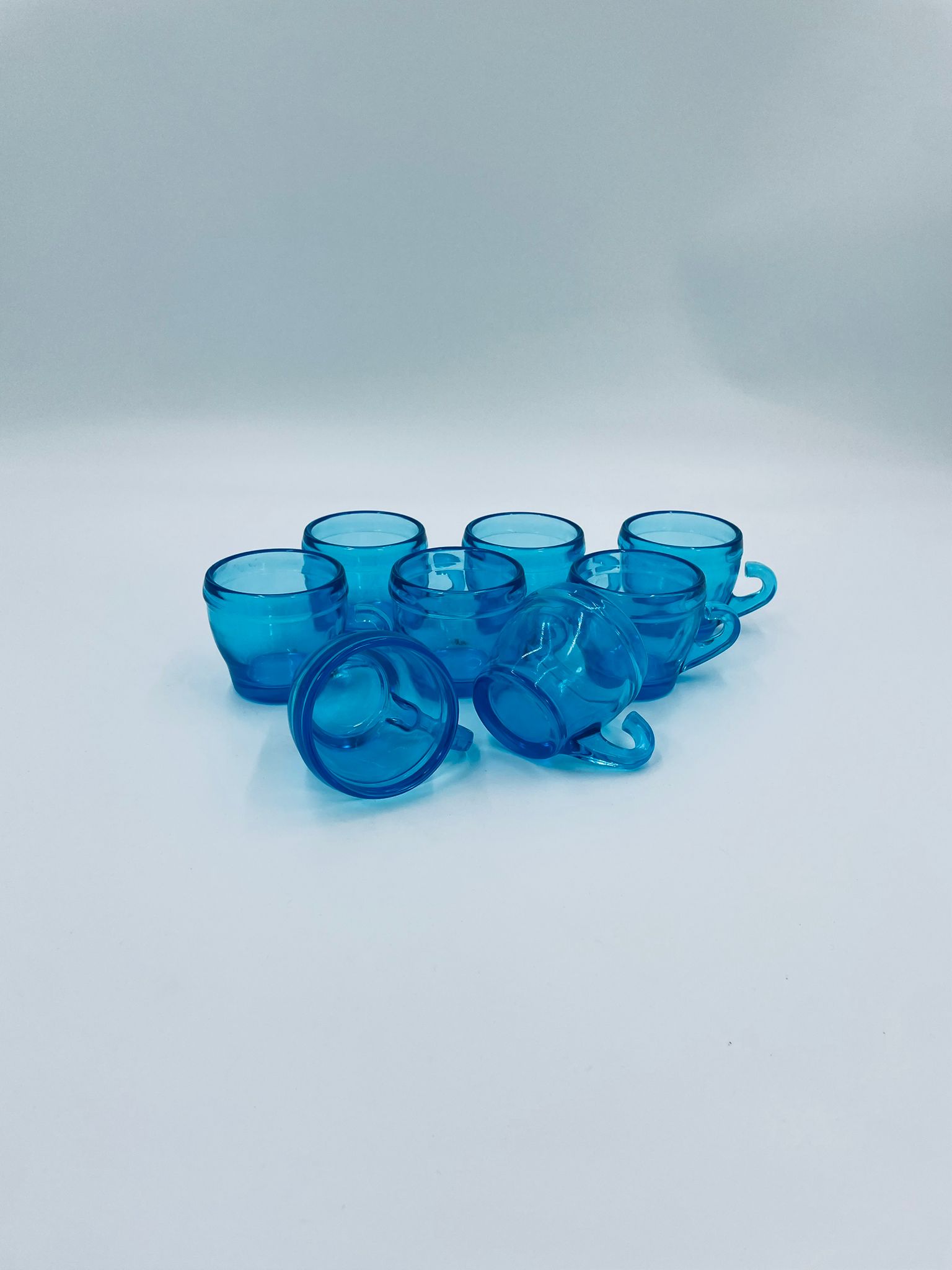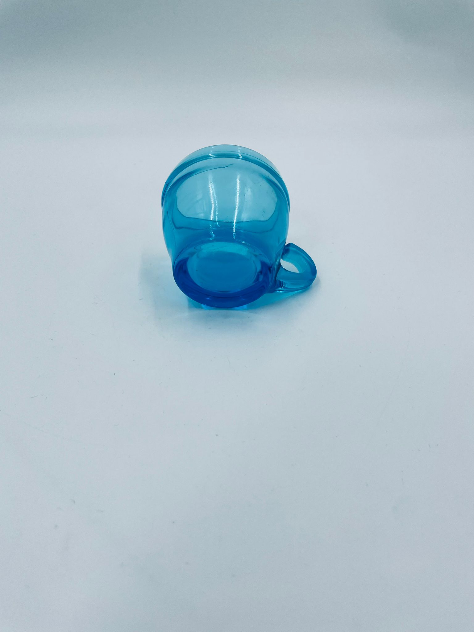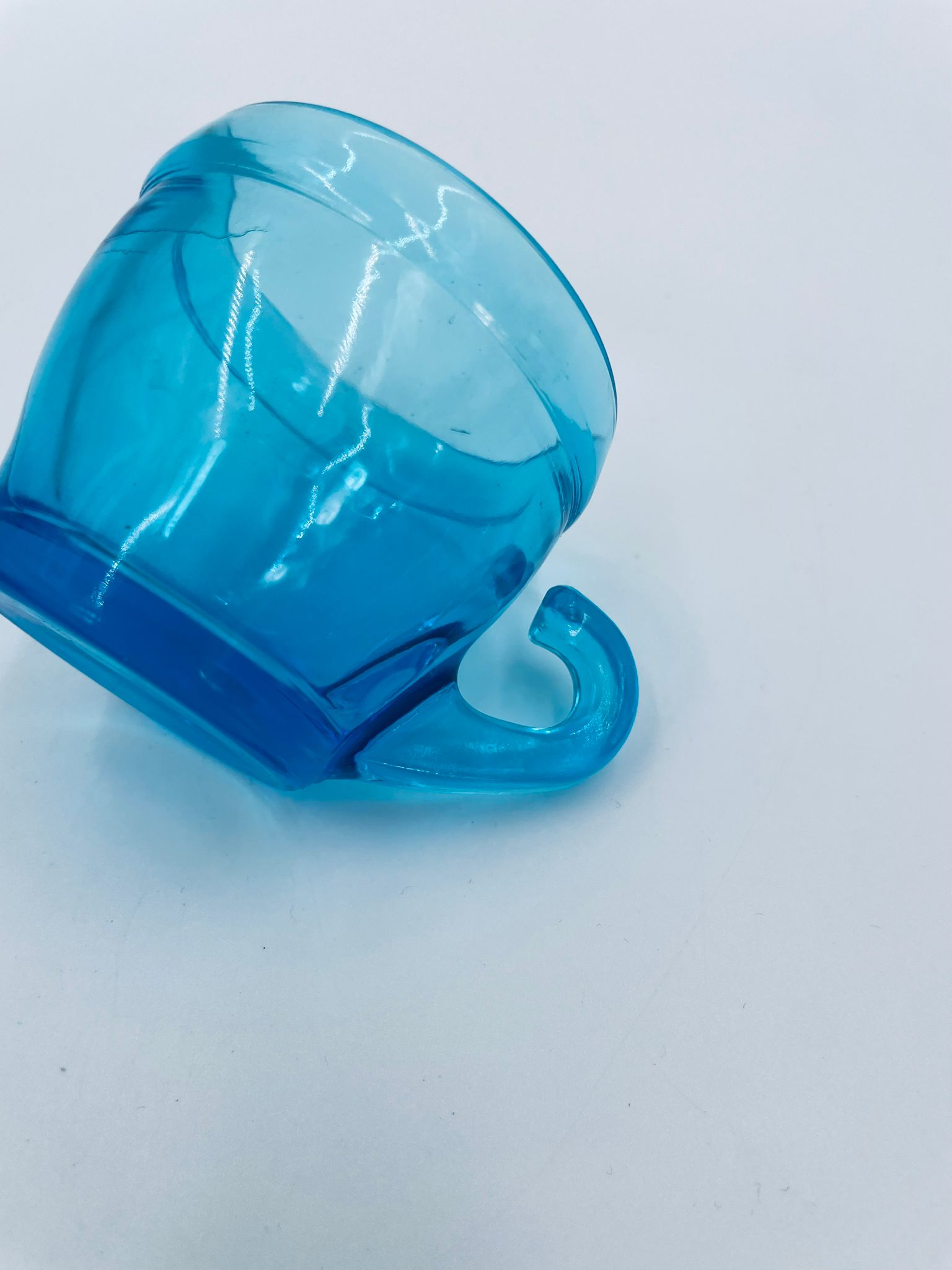Zabytkowa mała filiżanka do kawy w stylu Vintage, wykonana z wysokiej jakości grubego szkła w kolorze turkusowym. Filiżanka o charakterystycznym designie z uchwytem.