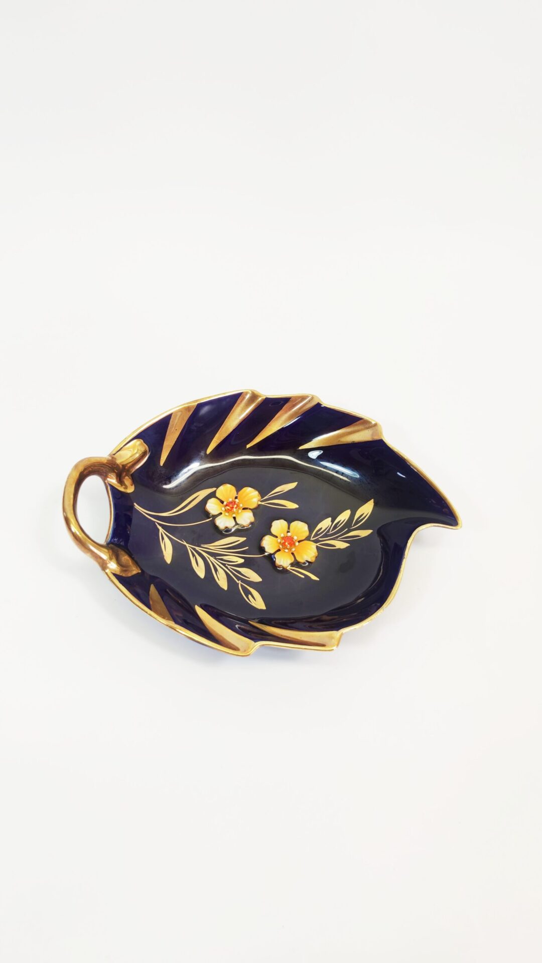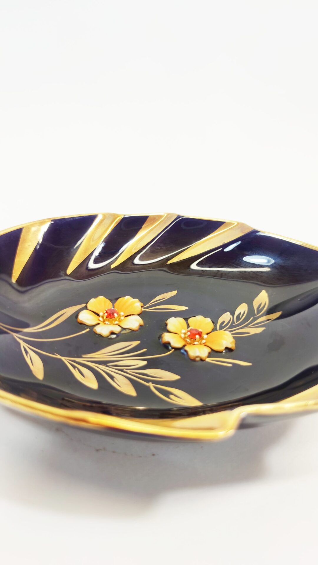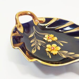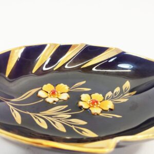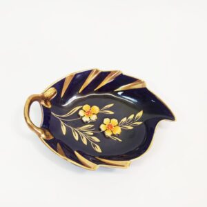 Zabytkowa miseczka porcelanowa, ręcznie malowana z kwiatkami wklejonymi w porcelanę. Boch Bescher.