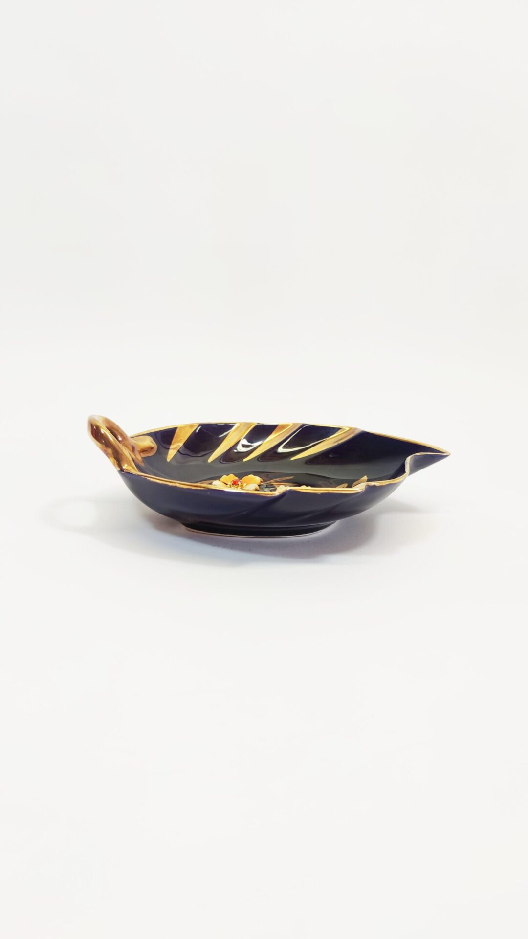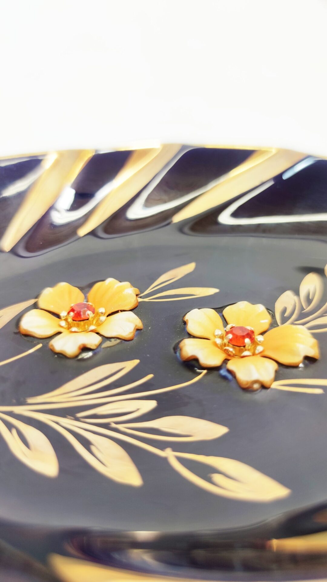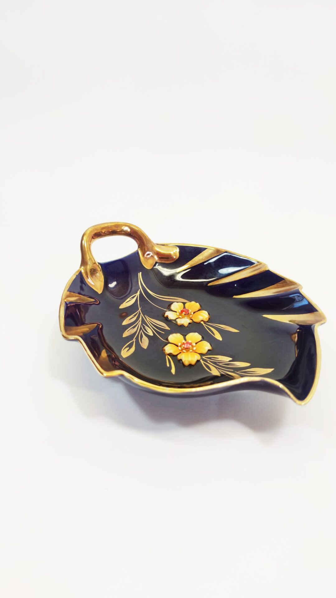 Zabytkowa miseczka porcelanowa, ręcznie malowana z kwiatkami wklejonymi w porcelanę. Boch Bescher.