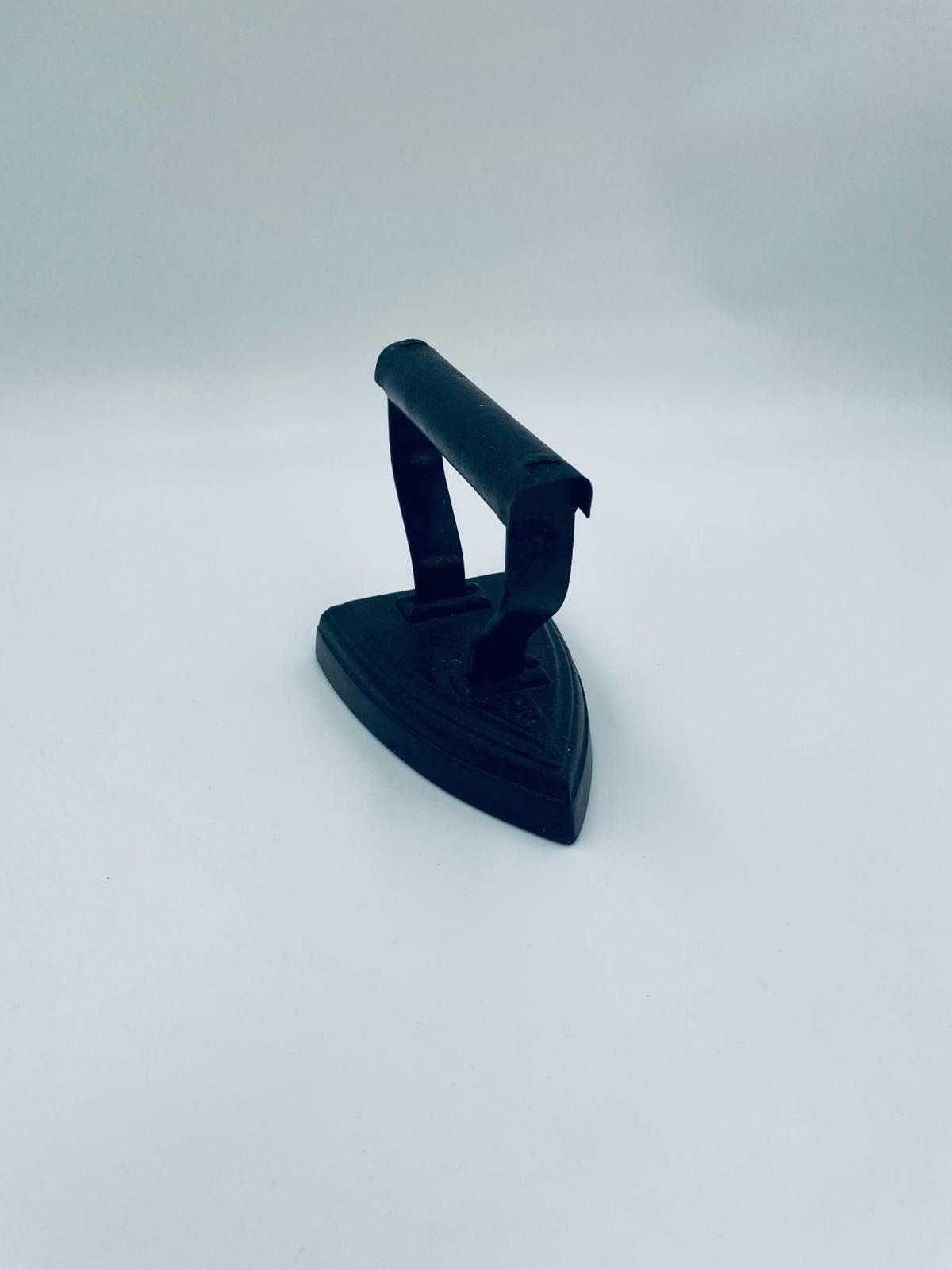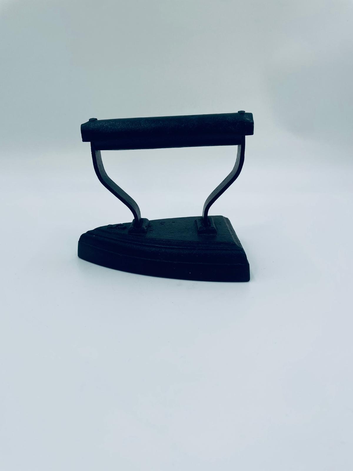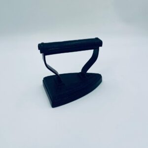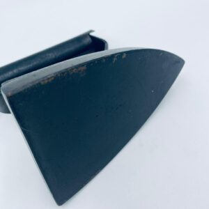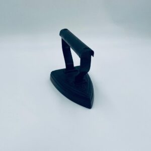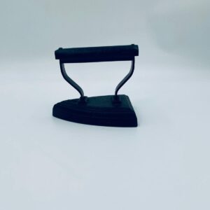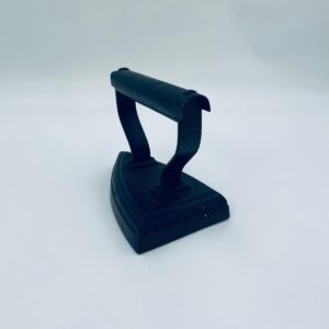 Zabytkowe, antyczne, kolekcjonerskie żelazko z czasów PRL-u, wykonane całkowicie z żeliwa. Charakteryzuje się prostą, solidną konstrukcją bez nowoczesnych funkcji. Żelazko służyło do prasowania po podgrzaniu na piecu. Posiada drobne zarysowania.