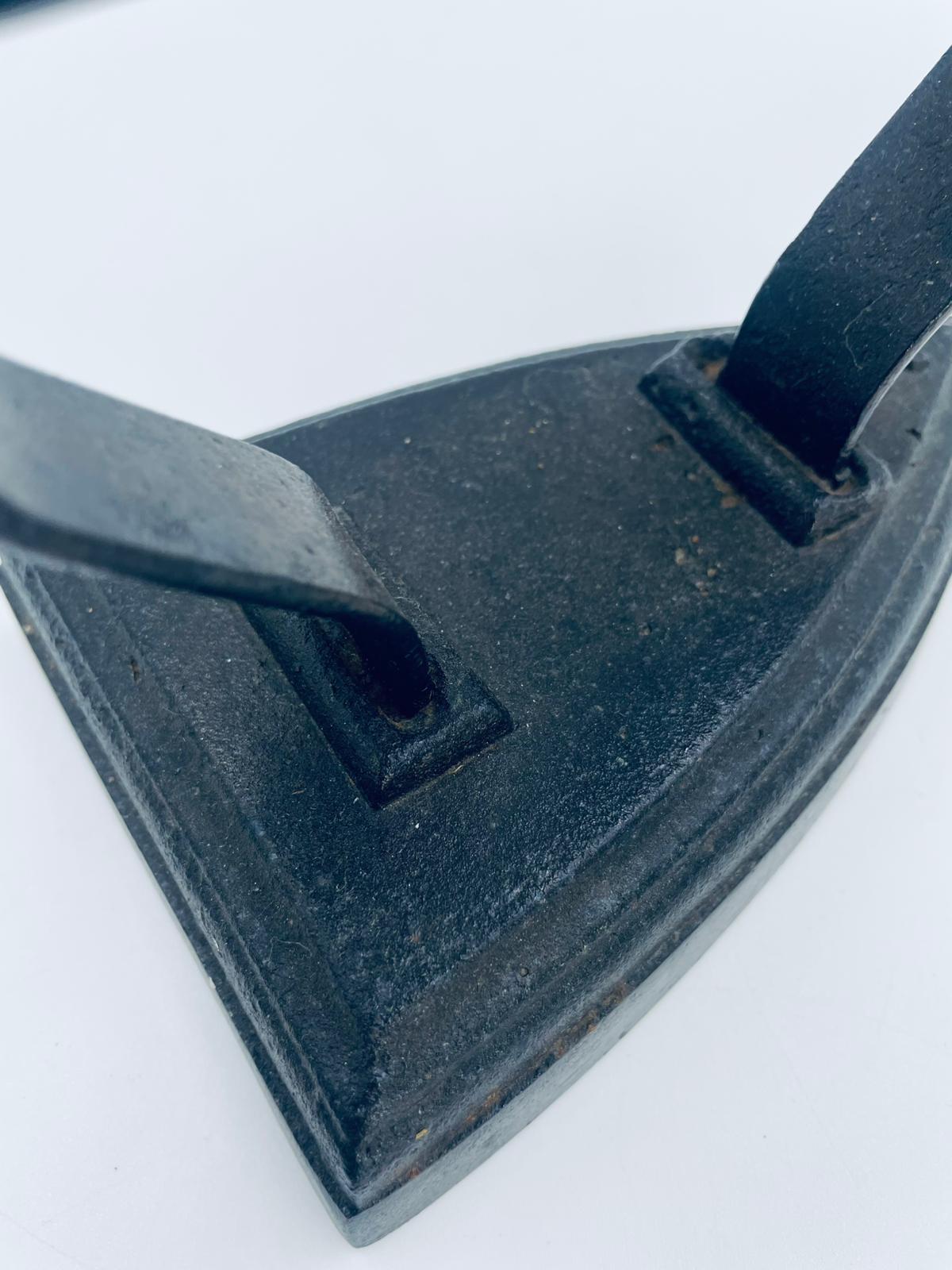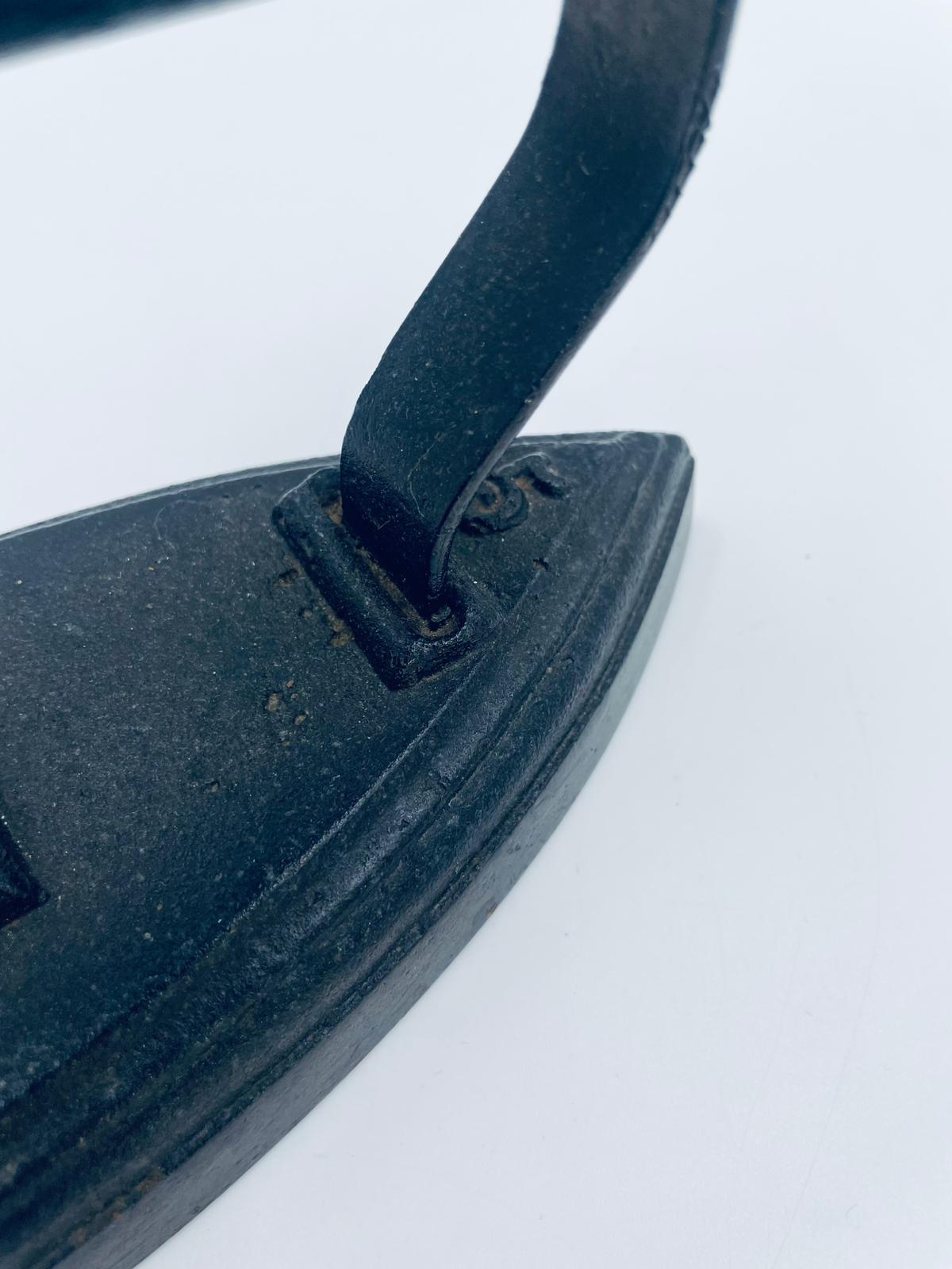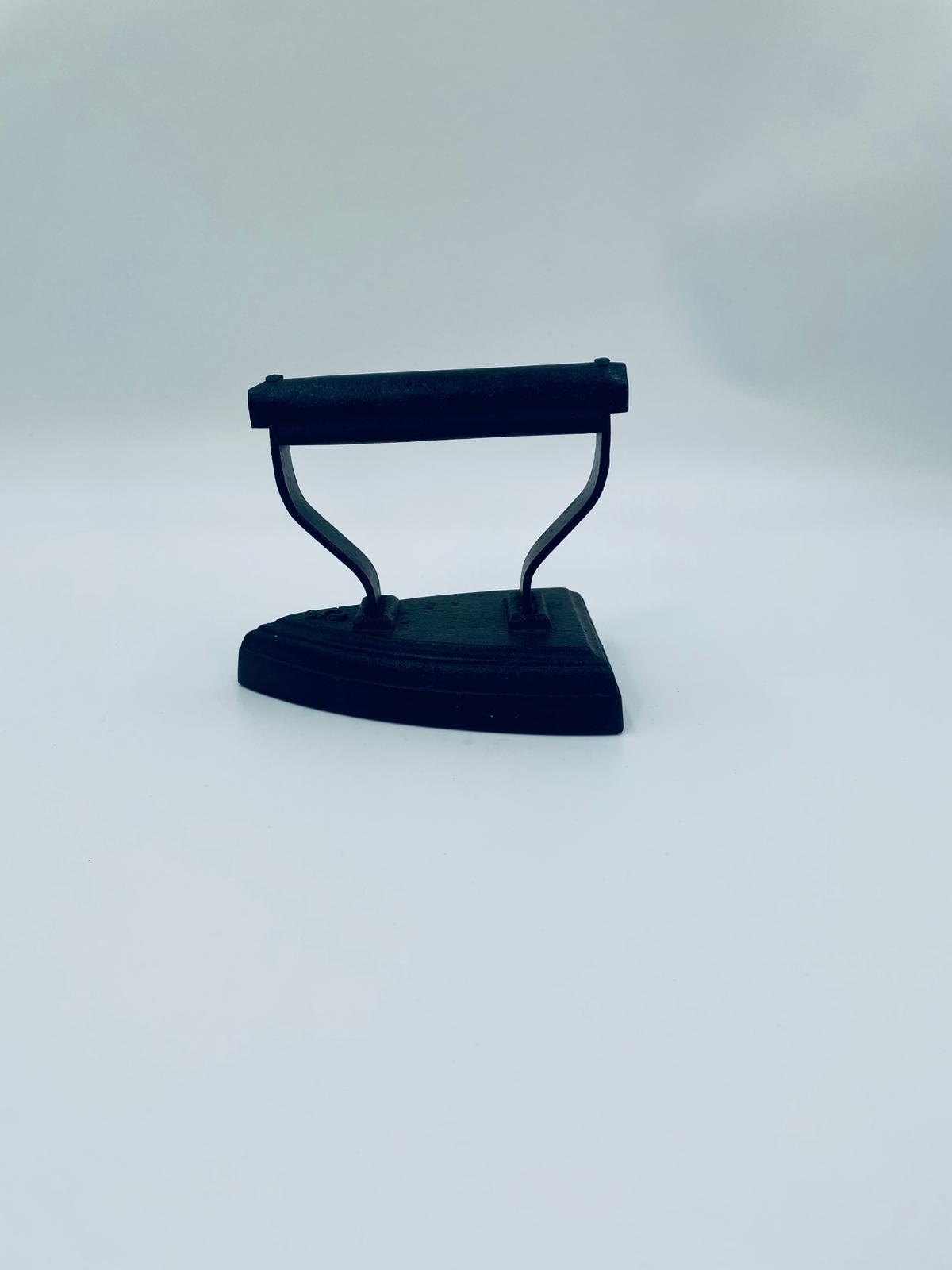 Zabytkowe, antyczne, kolekcjonerskie żelazko z czasów PRL-u, wykonane całkowicie z żeliwa. Charakteryzuje się prostą, solidną konstrukcją bez nowoczesnych funkcji. Żelazko służyło do prasowania po podgrzaniu na piecu. Posiada drobne zarysowania.