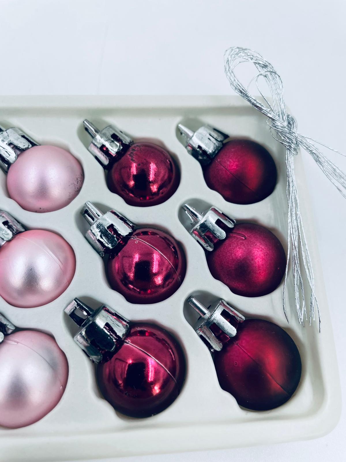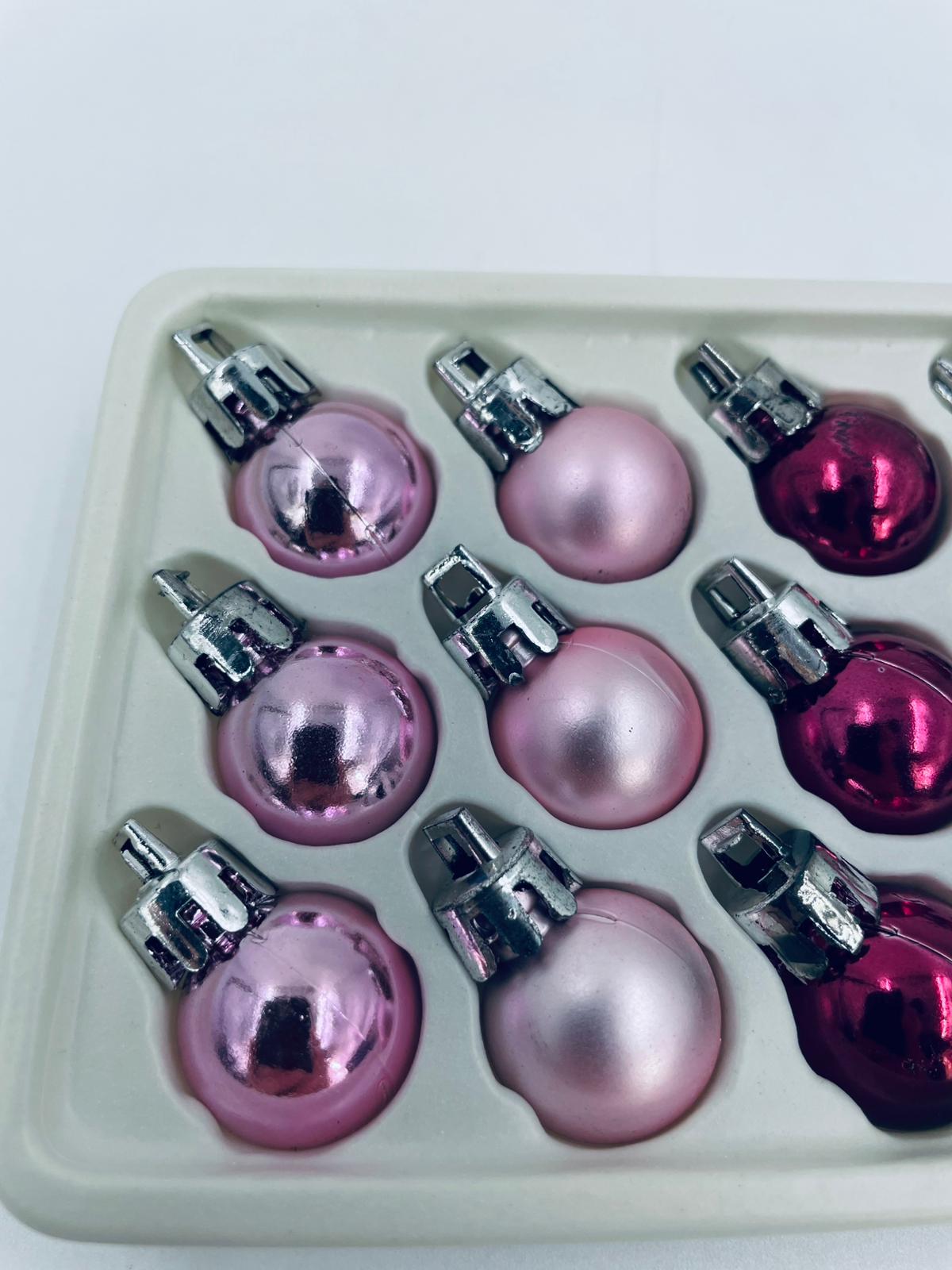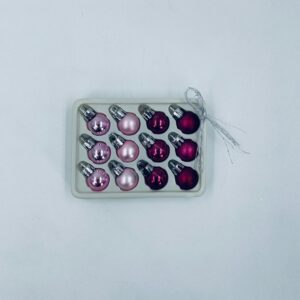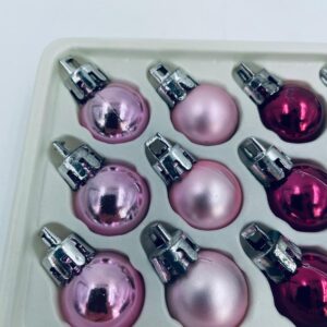 Zestaw bombek na choinkę w stylu Vintage, wykonanych z plastiku. Bombeczki małe, delikatne, w kolorze różu i fuksji.