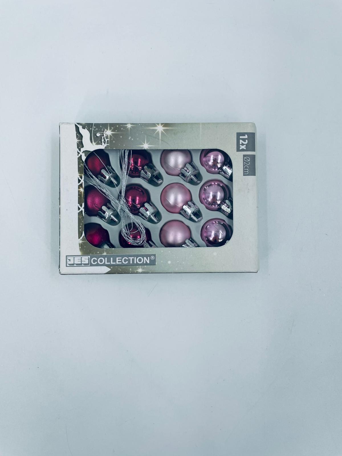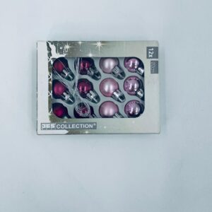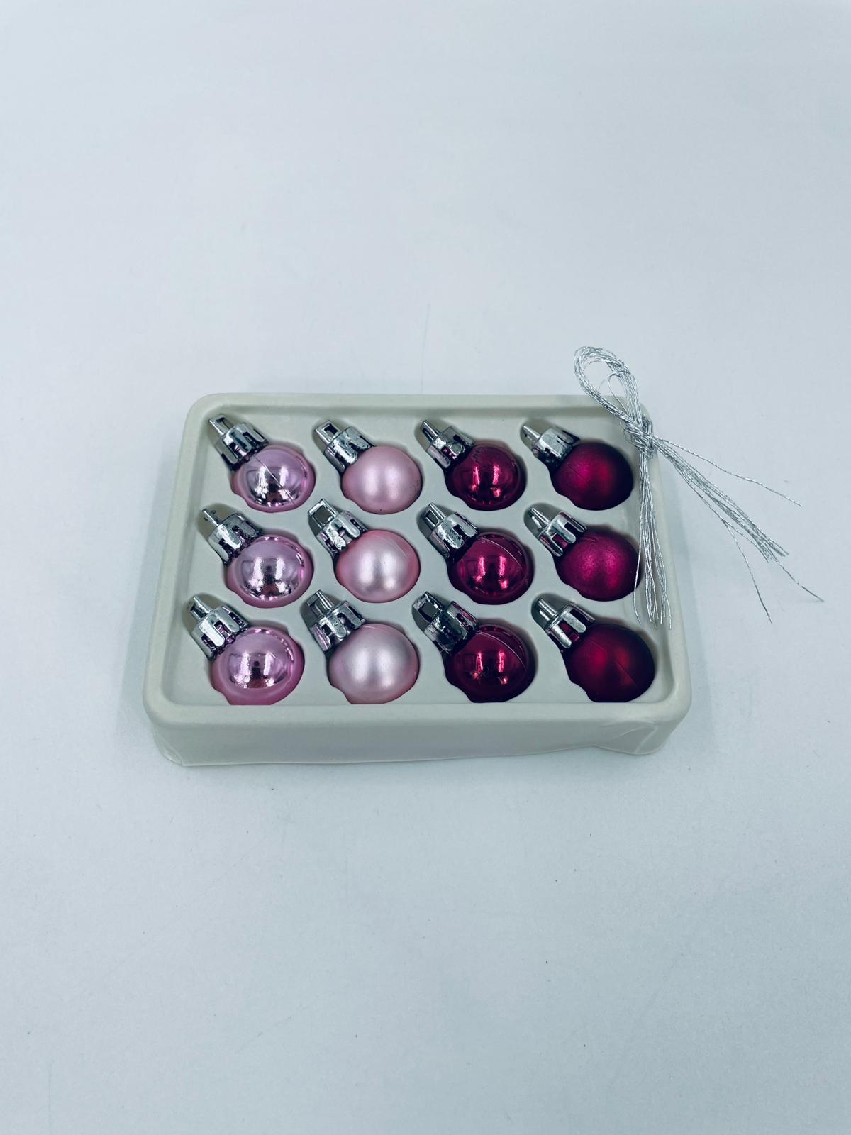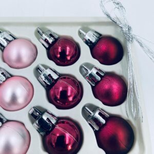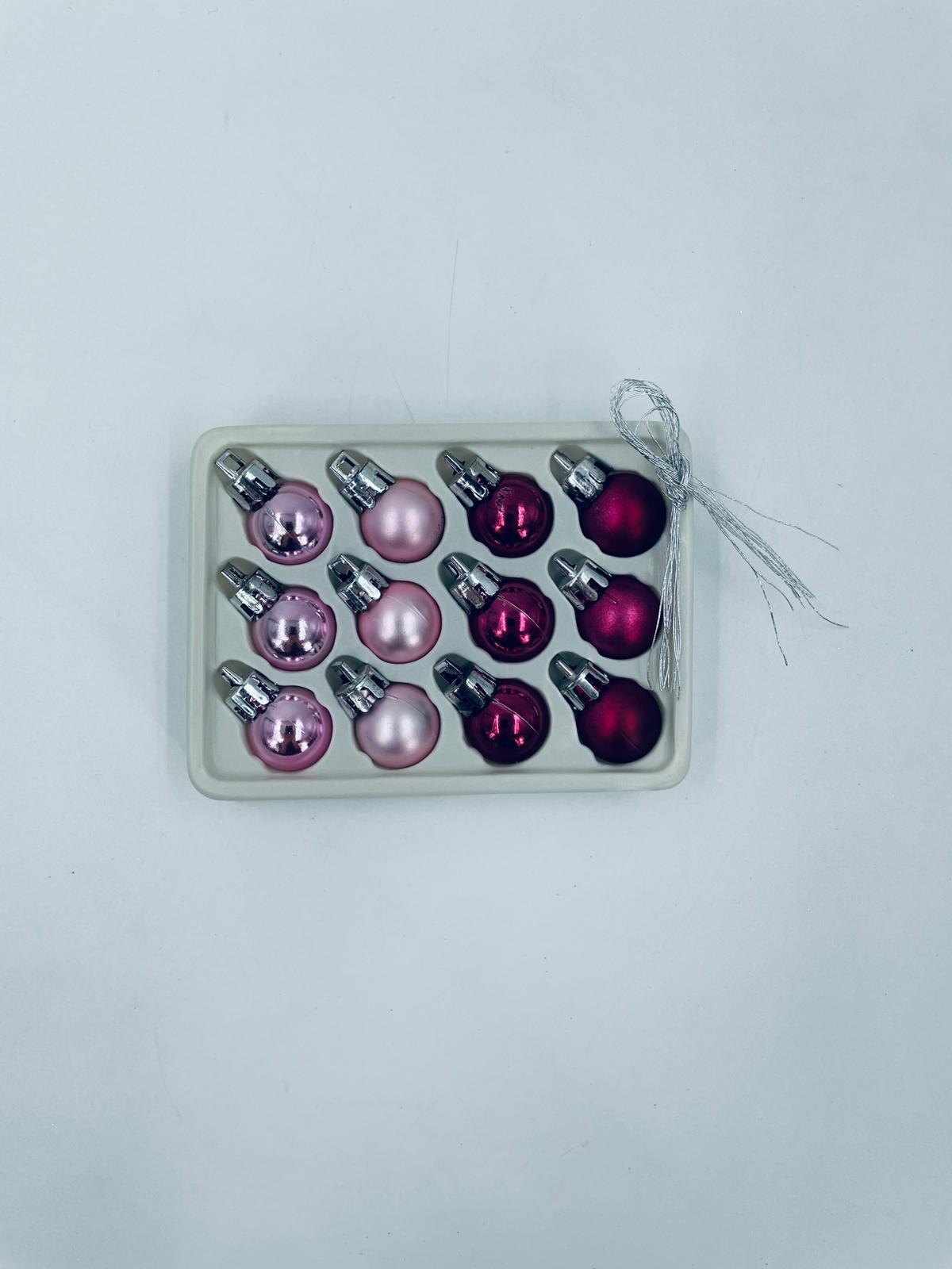Zestaw bombek na choinkę w stylu Vintage, wykonanych z plastiku. Bombeczki małe, delikatne, w kolorze różu i fuksji.