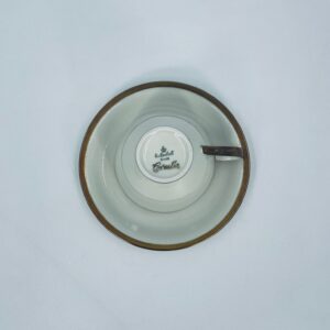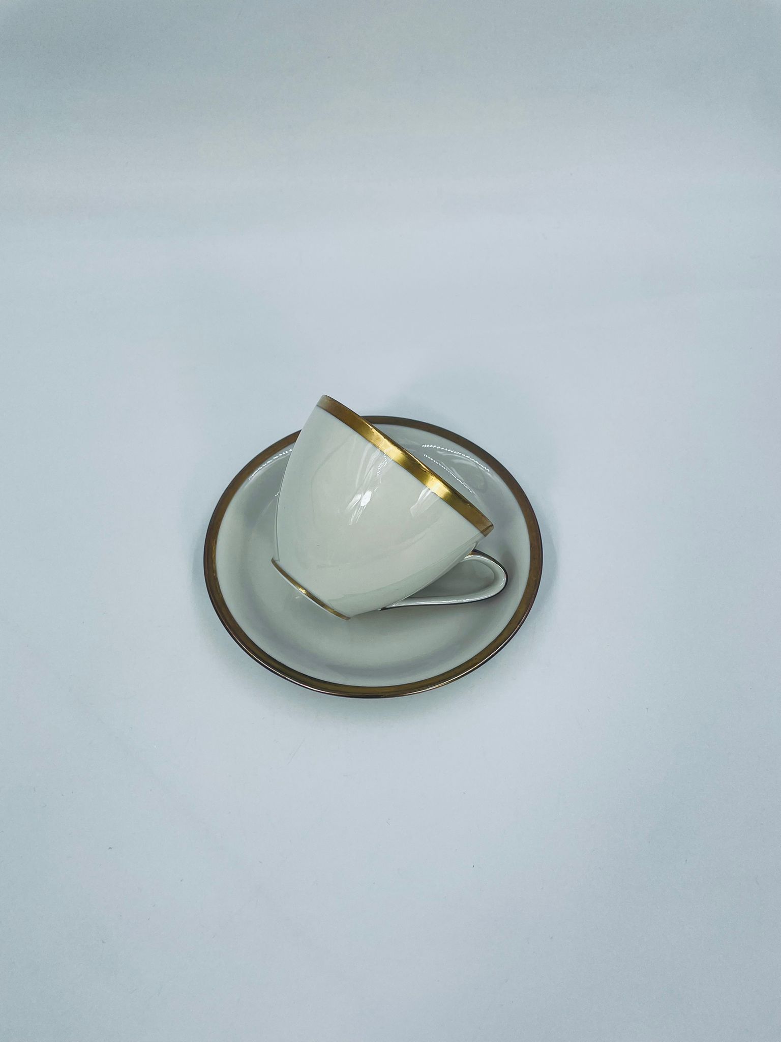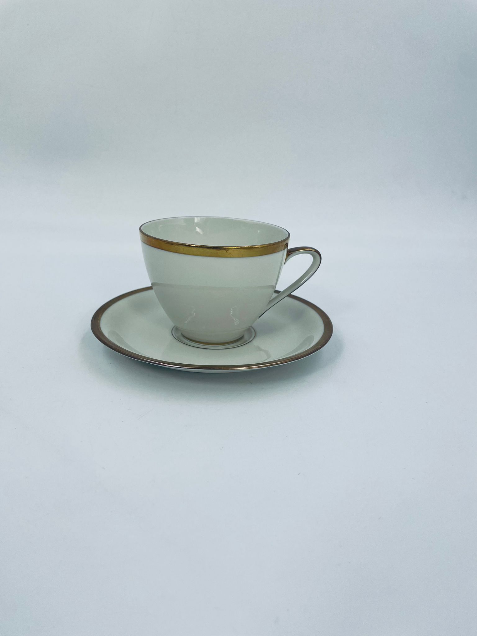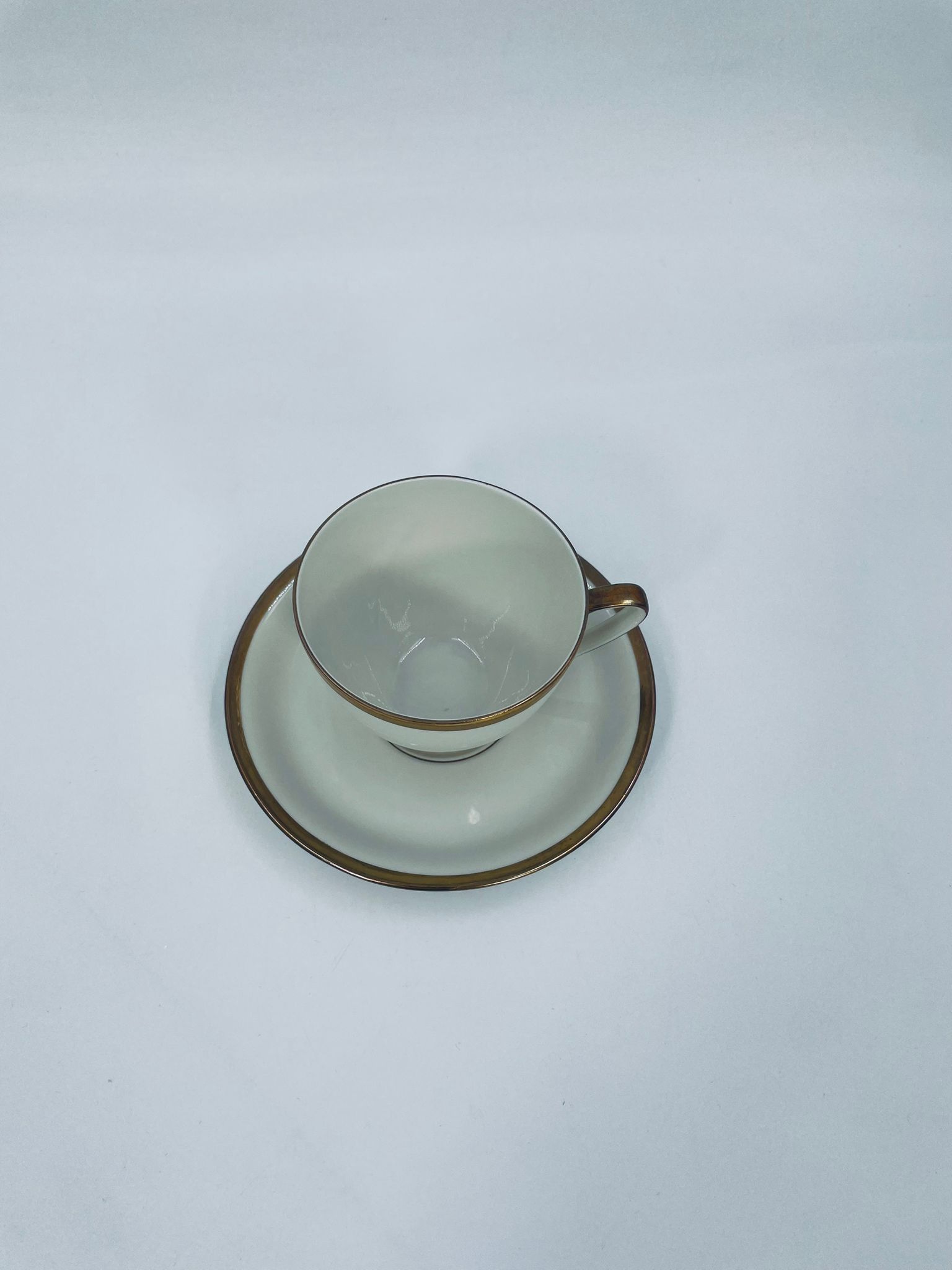 Filiżanka kolekcjonerska w zestawie duo wytwórni Eschenbach, kolekcji Cornelia, wykonana z wysokiej jakości porcelany w kolorze Ecru. Klasyczny, elegancki zestaw, wykończony złoceniem na rantach. Posiada przetarcia na złoceniu.