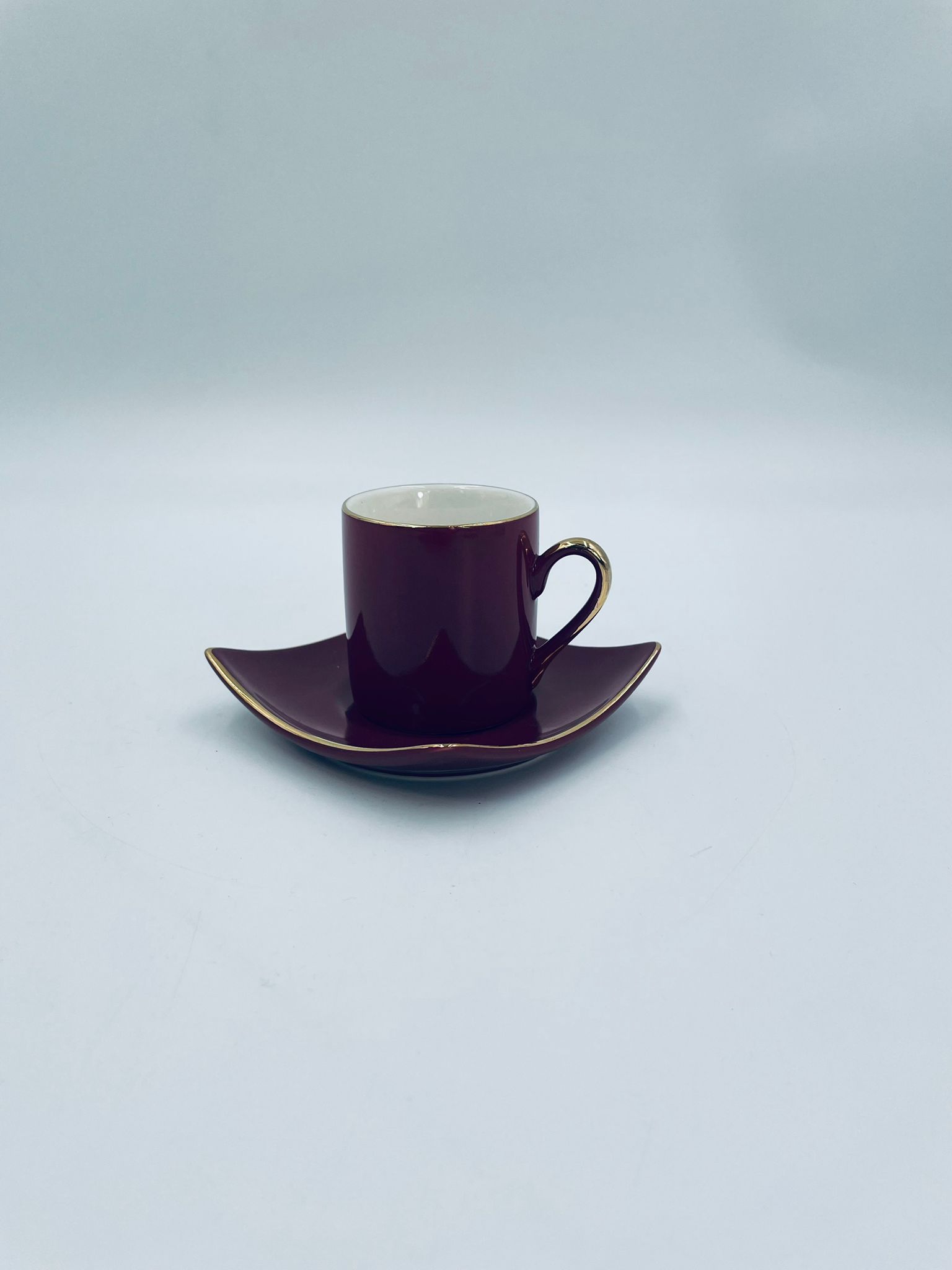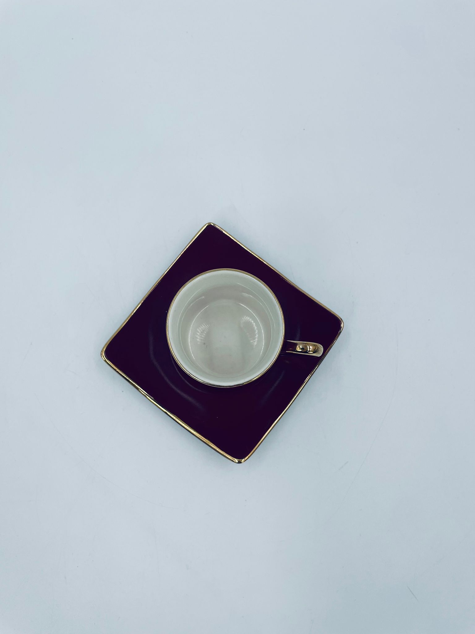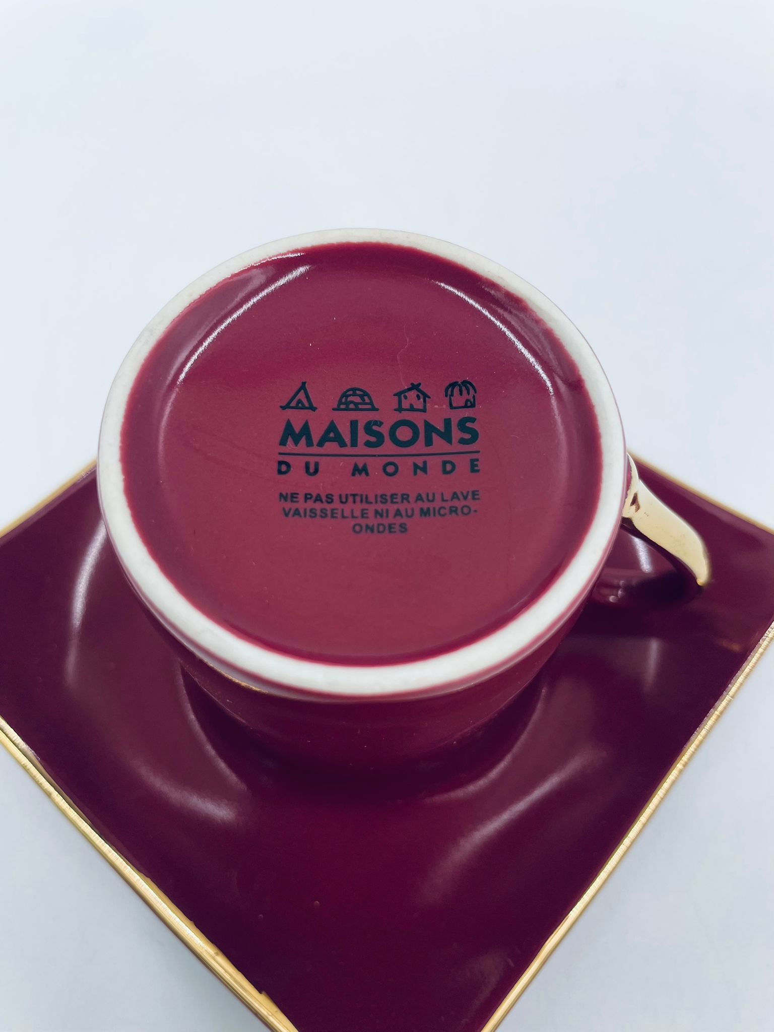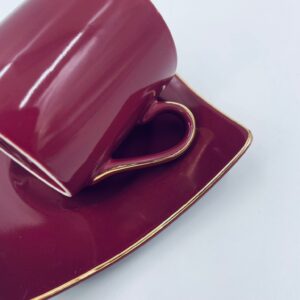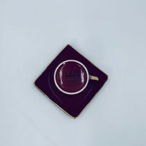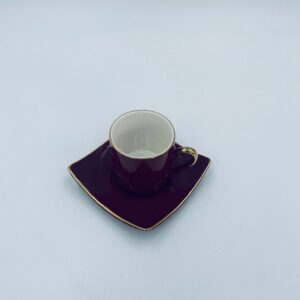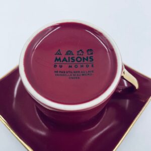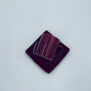 Filiżanka kolekcjonerska w zestawie duo marki Maisons du Monde, wykonana z wysokiej jakości ceramiki. Zestaw w kolorze głębokiego fioletu. Filiżanka ma klasyczny, zaokrąglony kształt ze złotym paskiem na krawędzi i złotym uchwytem. Spodek kwadratowy z lekko uniesionymi brzegami, wykończony złoceniem na krawędzi.