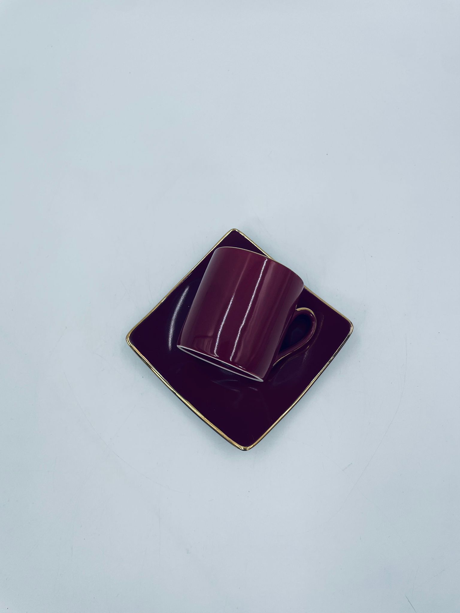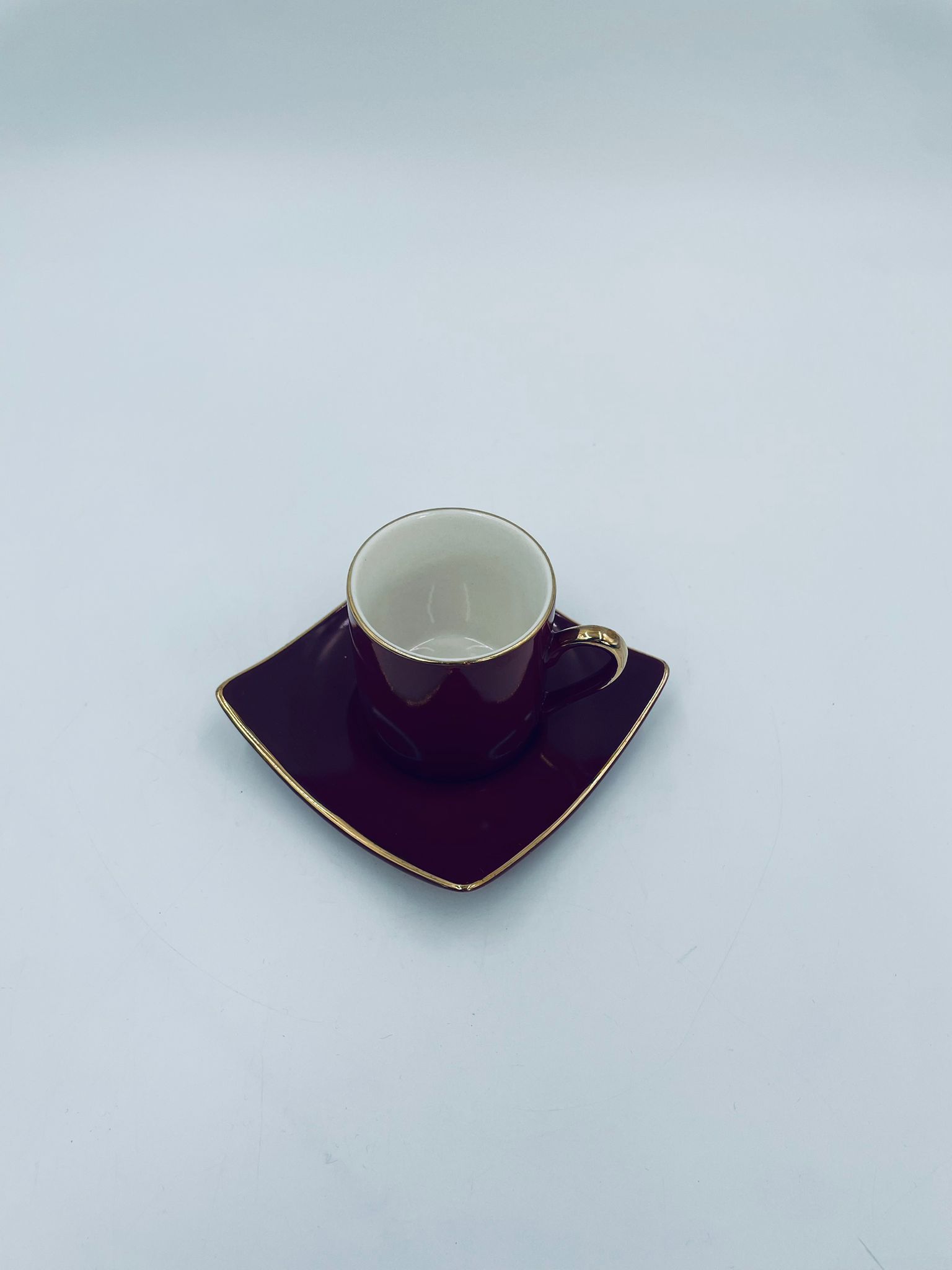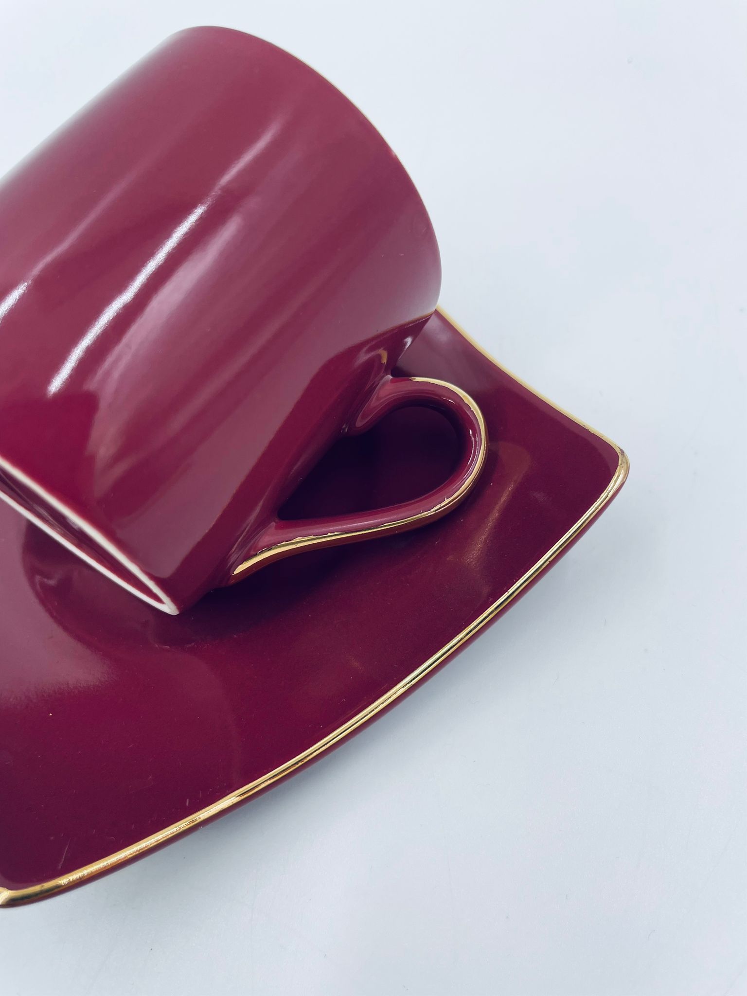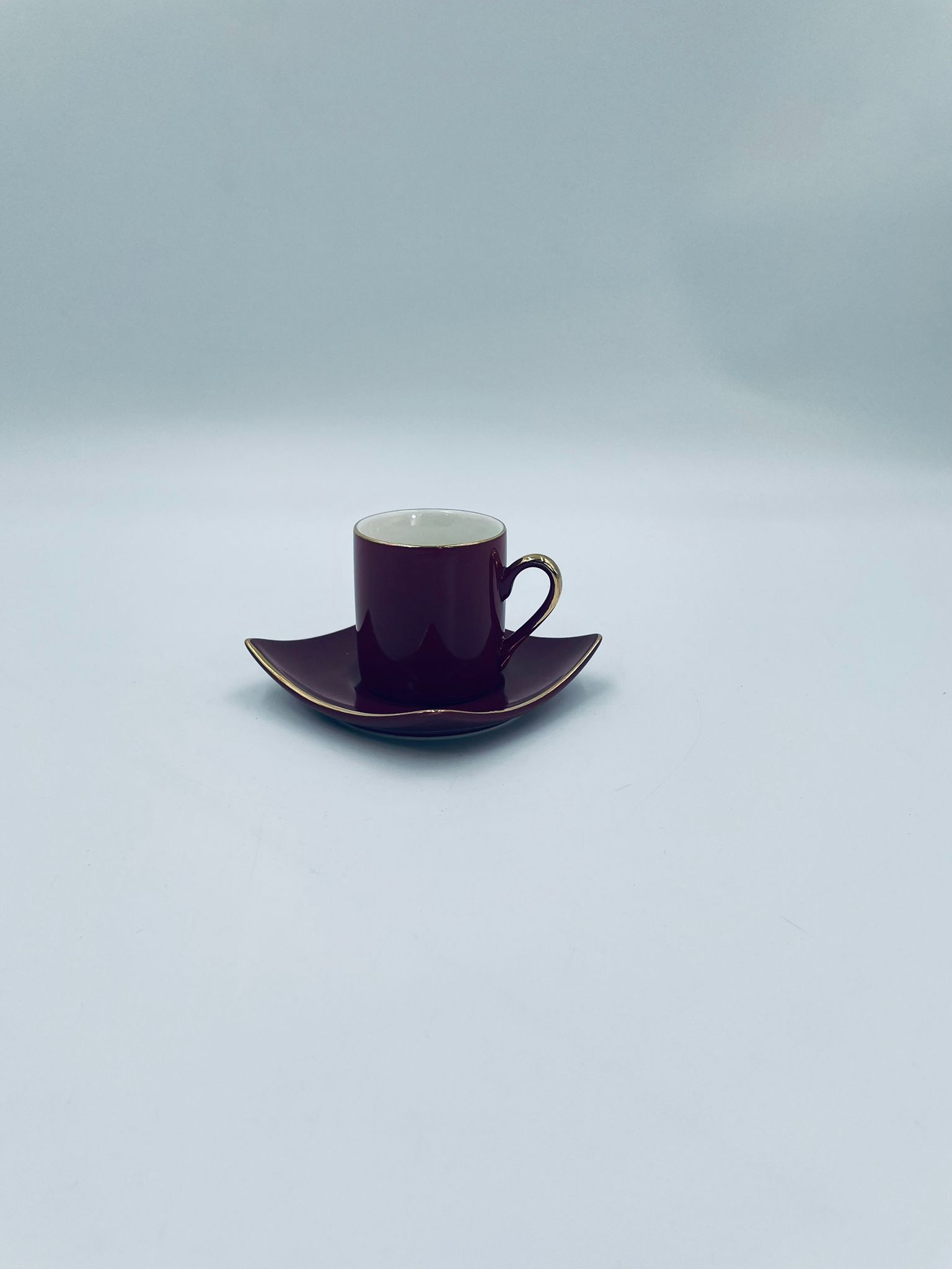 Filiżanka kolekcjonerska w zestawie duo marki Maisons du Monde, wykonana z wysokiej jakości ceramiki. Zestaw w kolorze głębokiego fioletu. Filiżanka ma klasyczny, zaokrąglony kształt ze złotym paskiem na krawędzi i złotym uchwytem. Spodek kwadratowy z lekko uniesionymi brzegami, wykończony złoceniem na krawędzi.