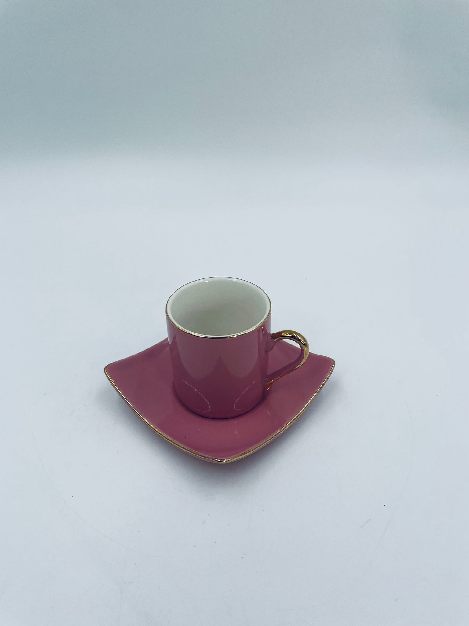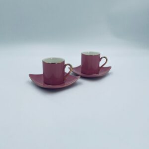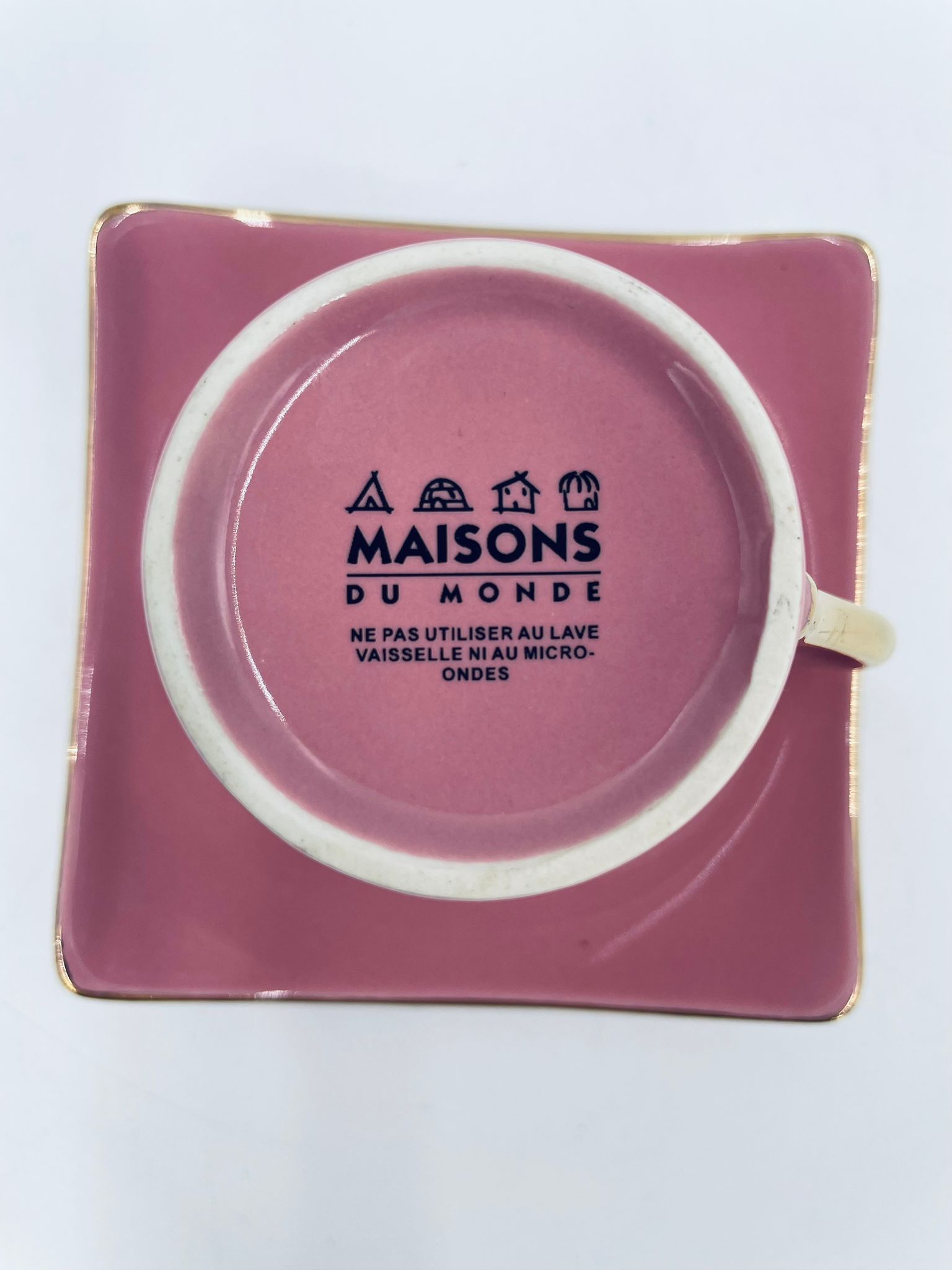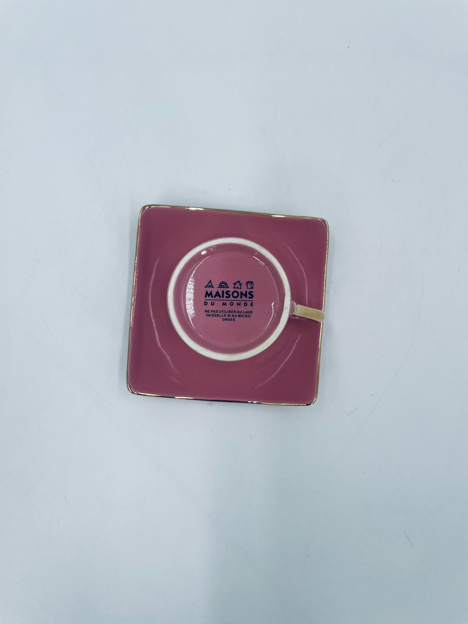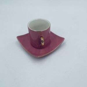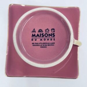Filiżanka kolekcjonerska w zestawie duo marki Maisons du Monde, wykonana z wysokiej jakości ceramiki. Zestaw w kolorze pudrowego różu. Filiżanka ma klasyczny, zaokrąglony kształt ze złotym paskiem na krawędzi i złotym uchwytem. Spodek kwadratowy z lekko uniesionymi brzegami, wykończony złoceniem na krawędzi.
