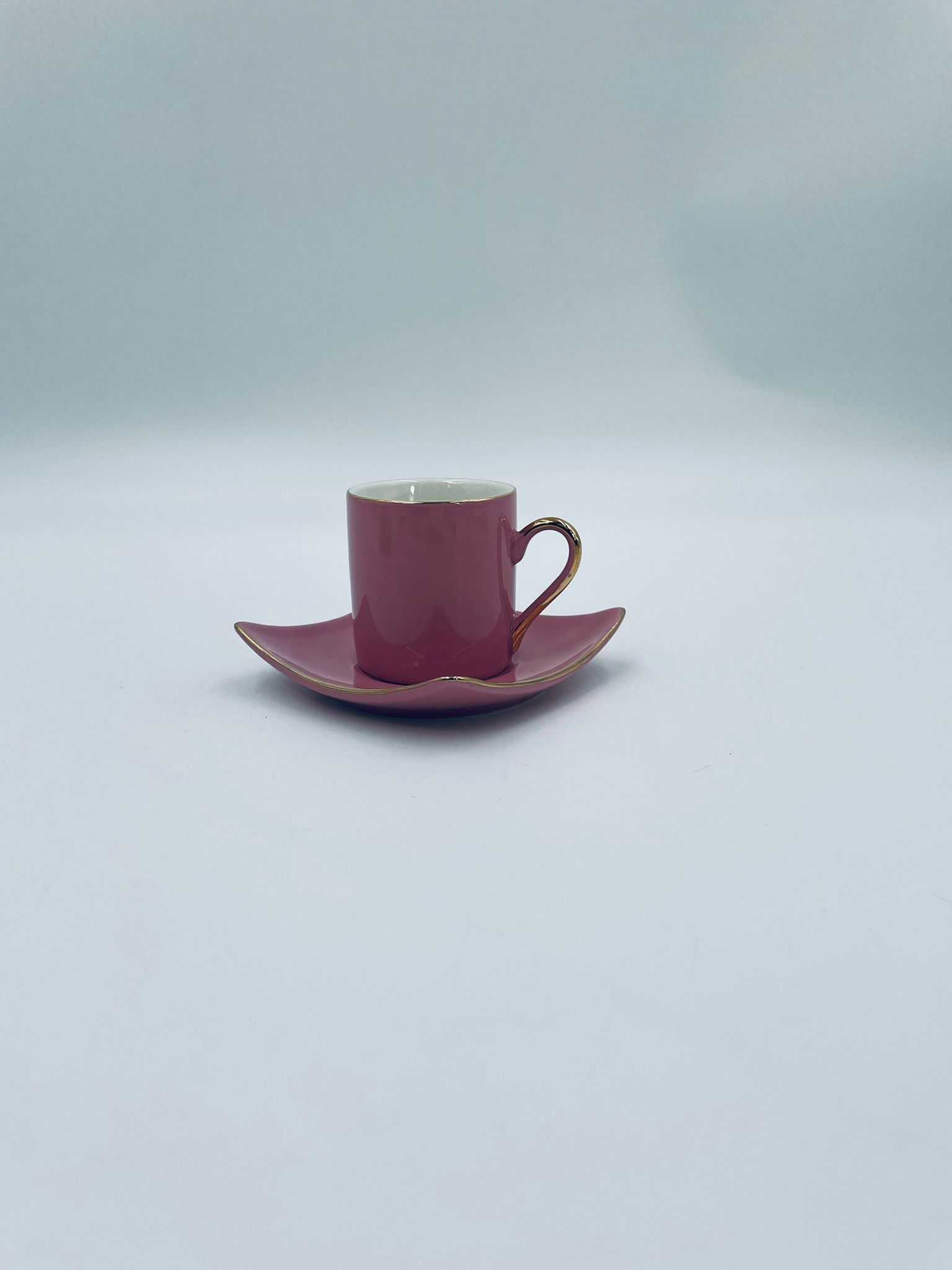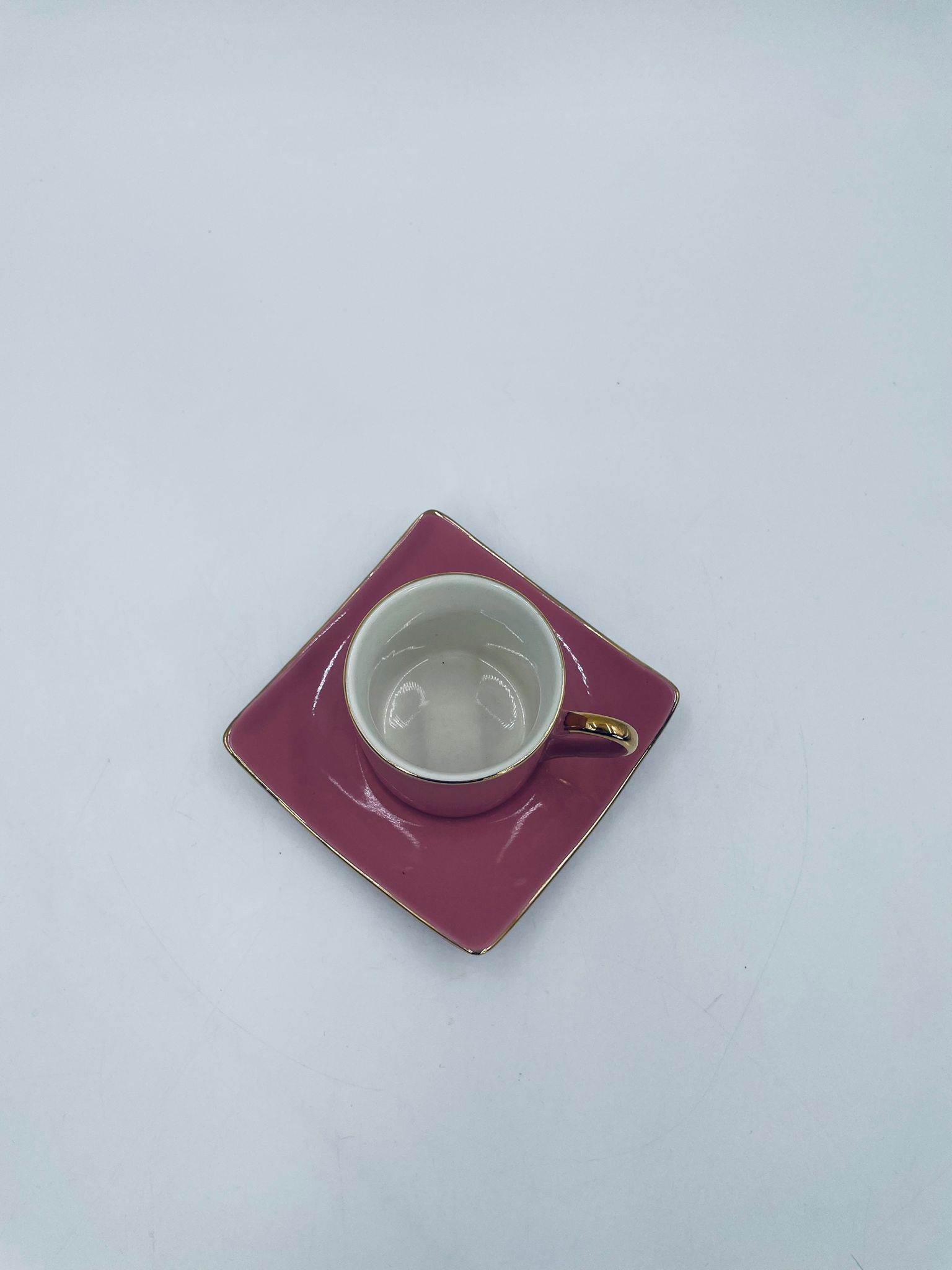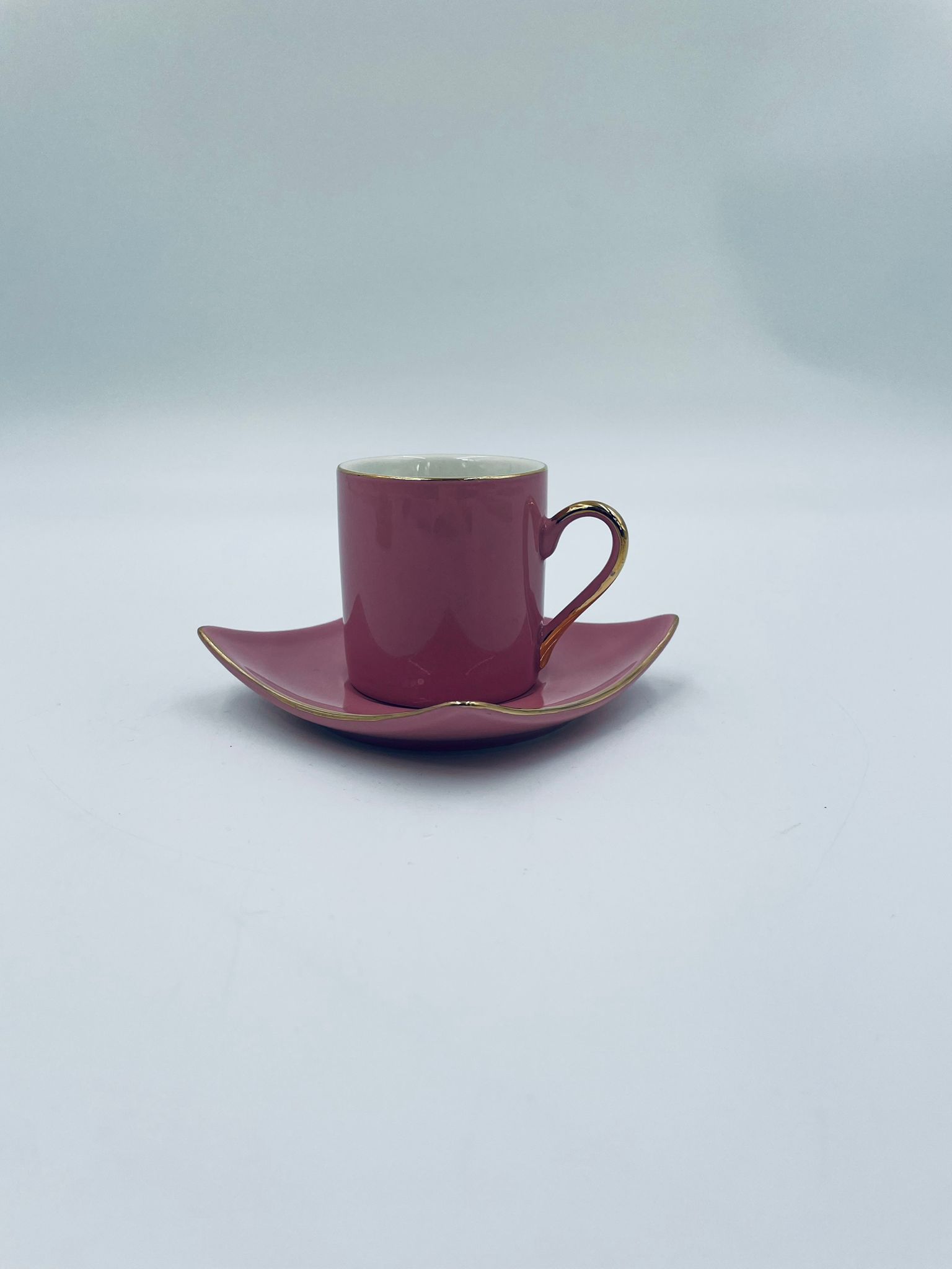 Filiżanka kolekcjonerska w zestawie duo marki Maisons du Monde, wykonana z wysokiej jakości ceramiki. Zestaw w kolorze pudrowego różu. Filiżanka ma klasyczny, zaokrąglony kształt ze złotym paskiem na krawędzi i złotym uchwytem. Spodek kwadratowy z lekko uniesionymi brzegami, wykończony złoceniem na krawędzi.