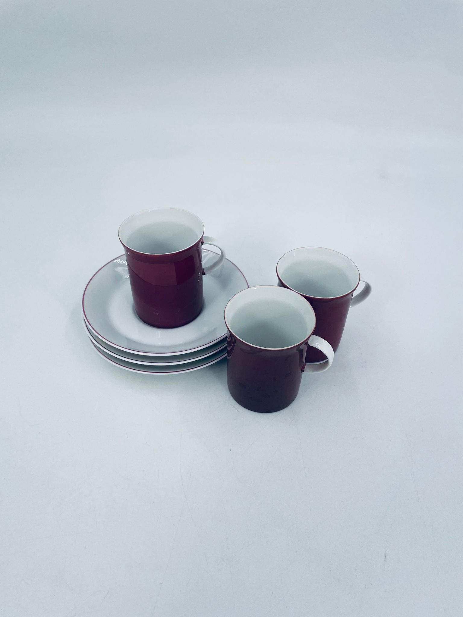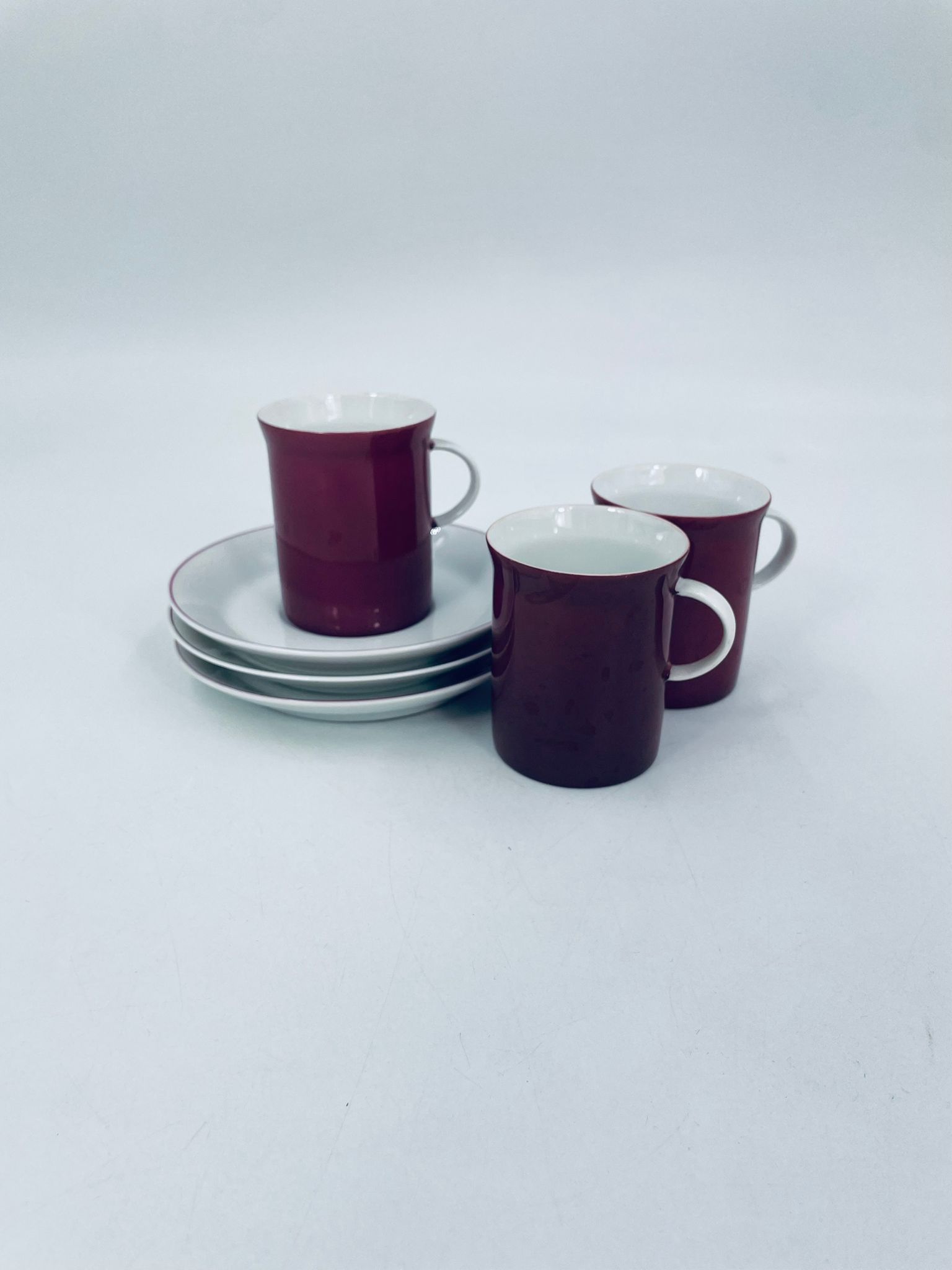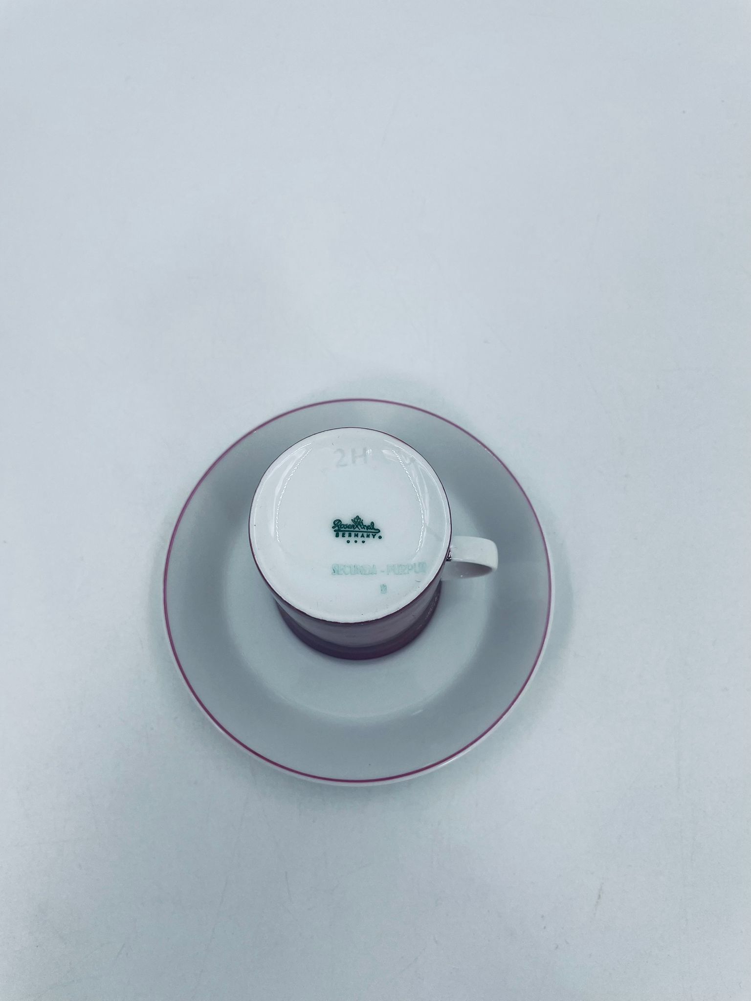 Filiżanka kolekcjonerska w zestawie duo, znanej wytwórni Rosenthal. Zestaw wykonany jest z wysokiej jakości białej porcelany. Filiżanka koloru bordowego, a talerzyk biały z wykończeniem bordowym na obrzeżu.