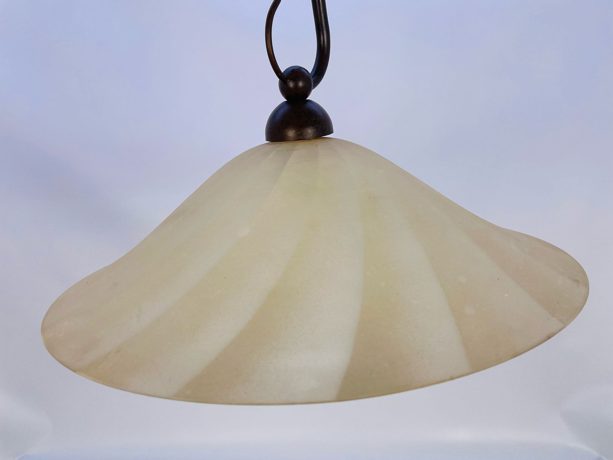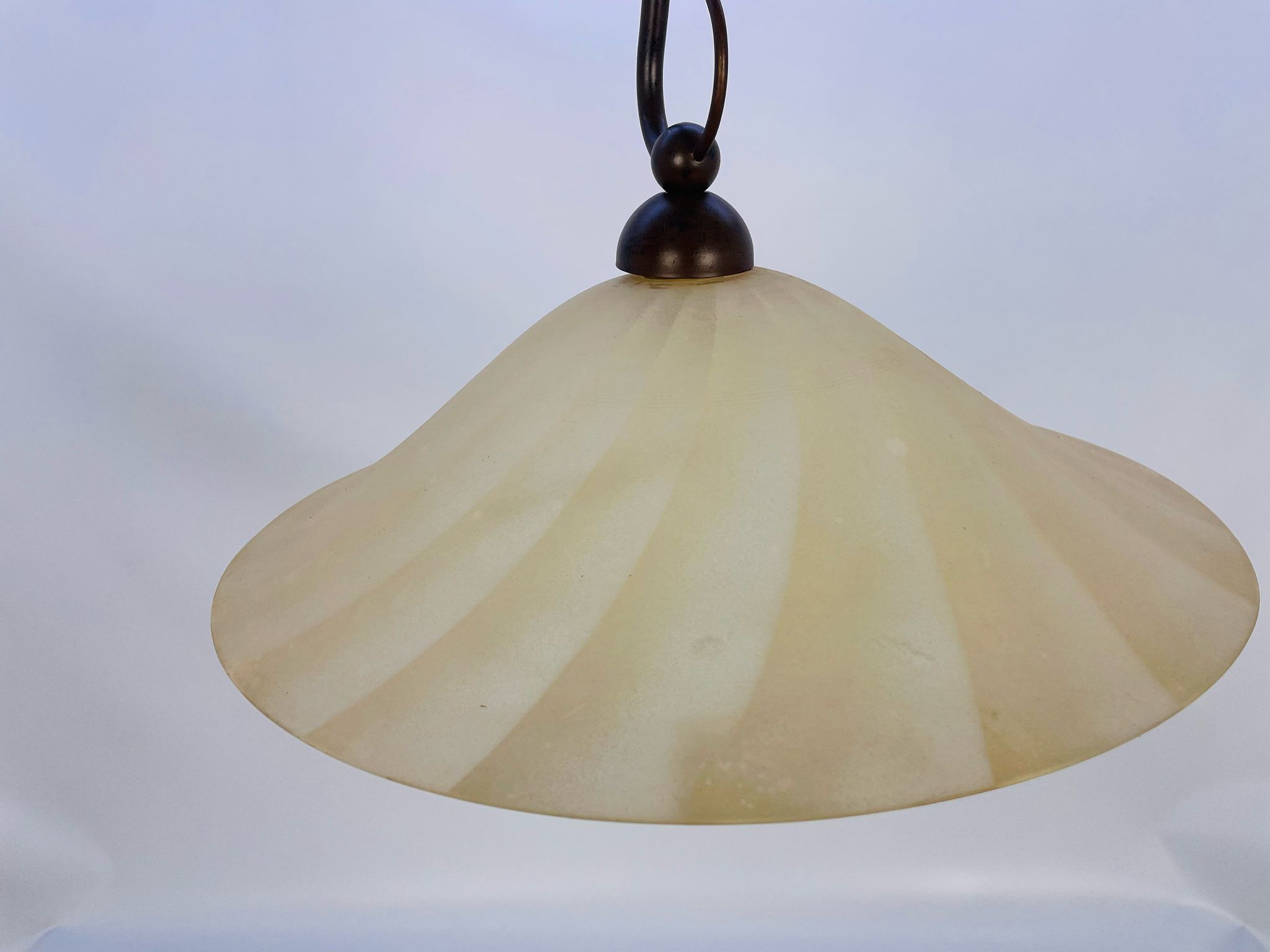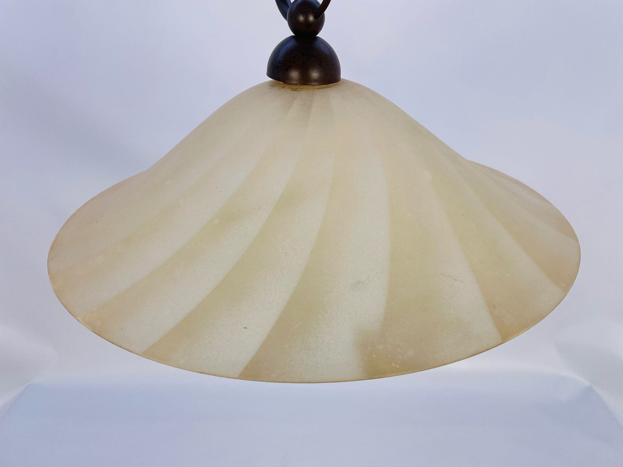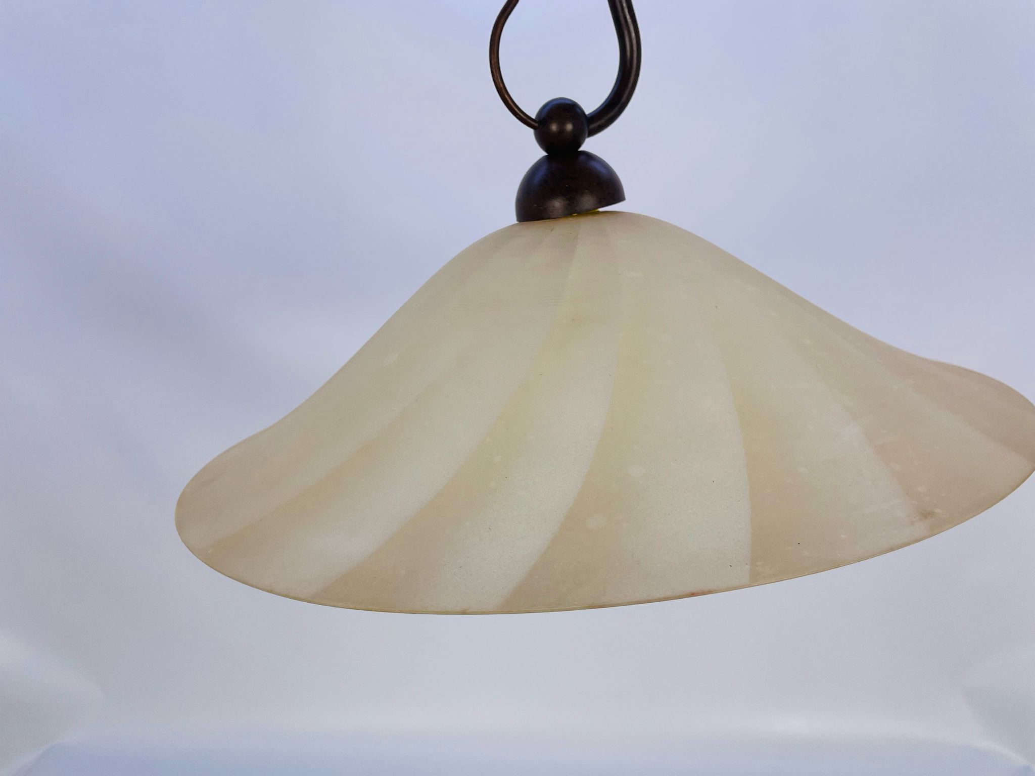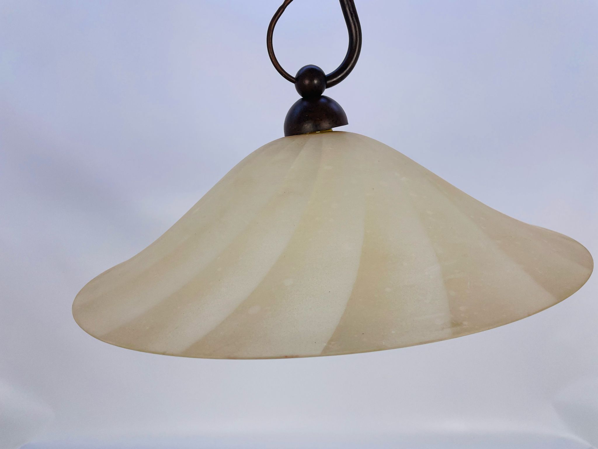Zwis lampa Żyrandol ze szkła beżowy pofalowany.
