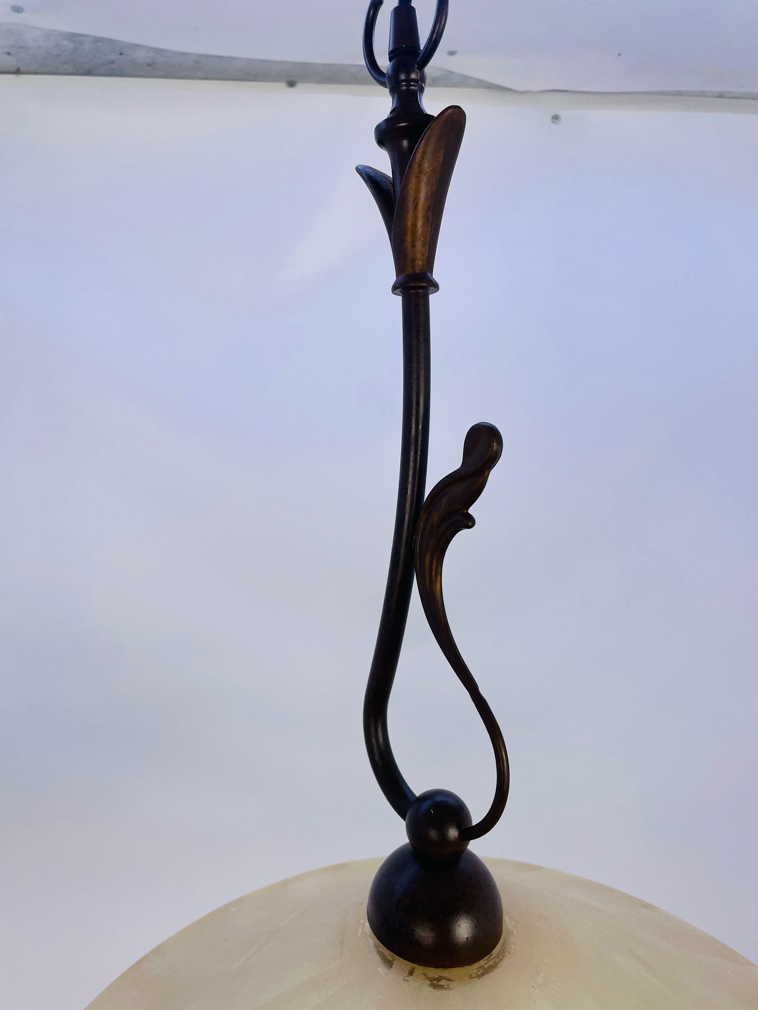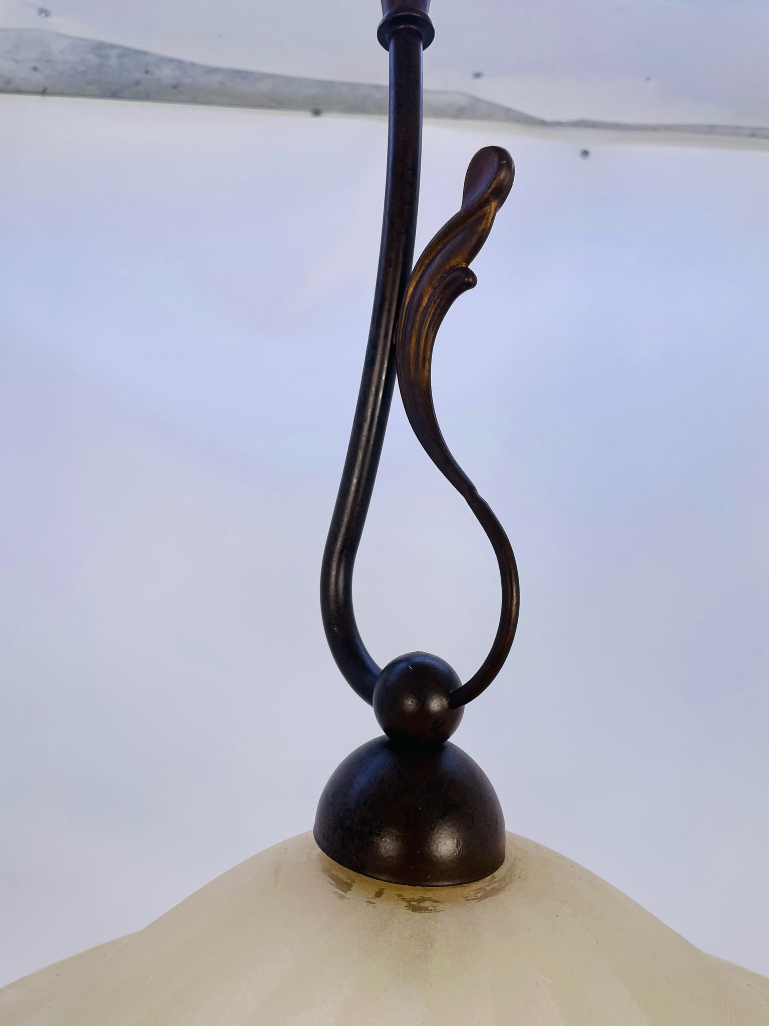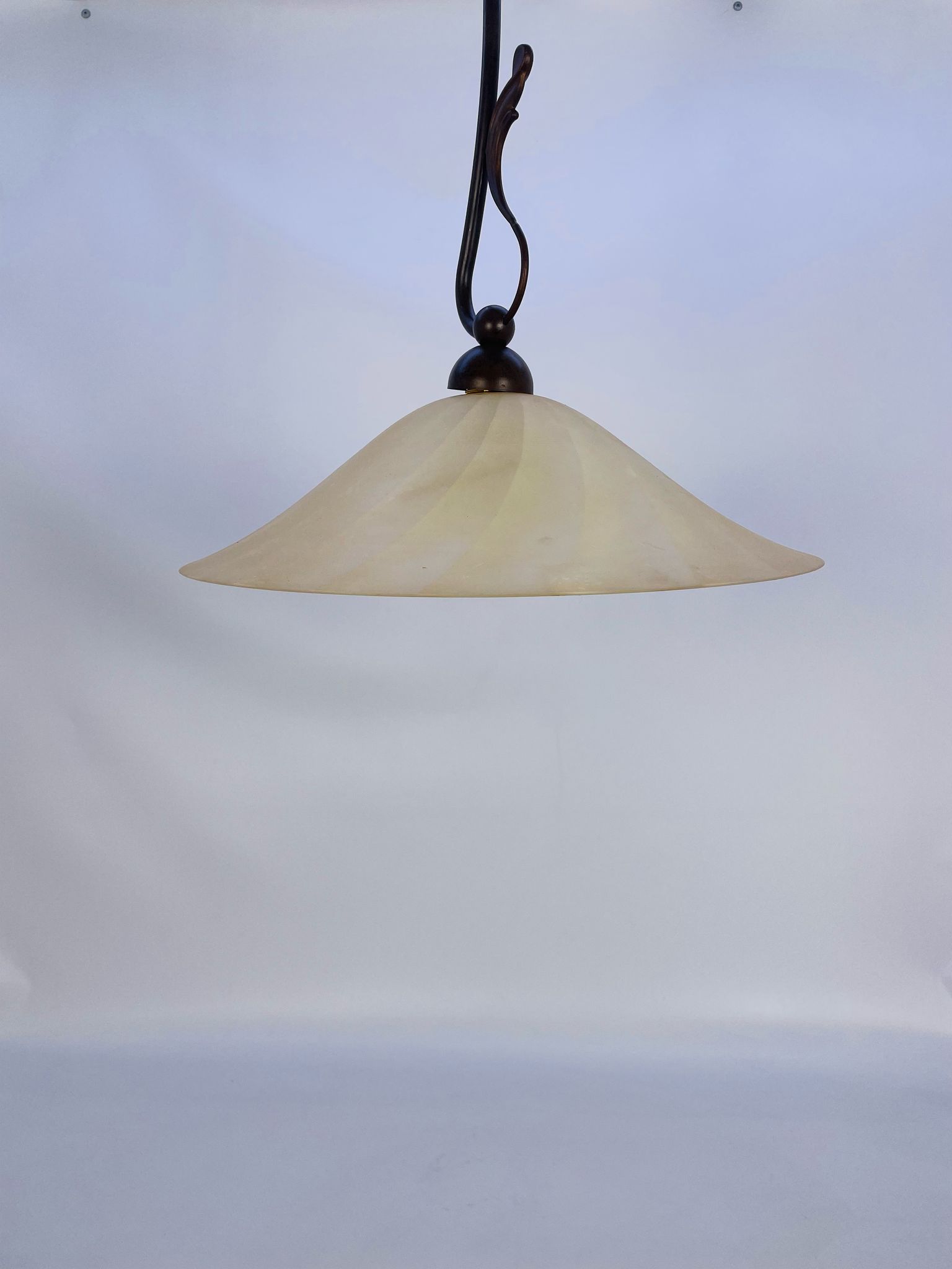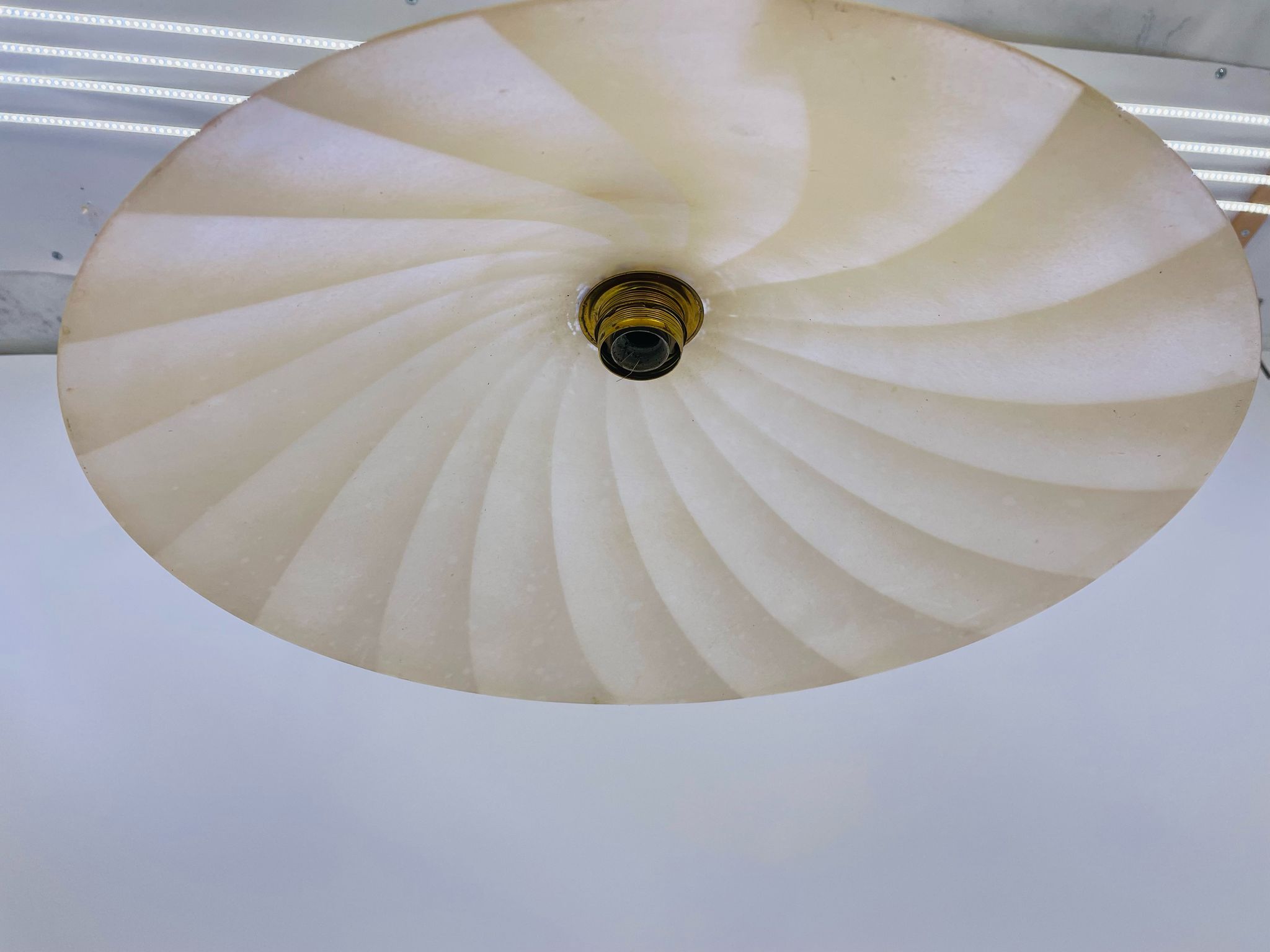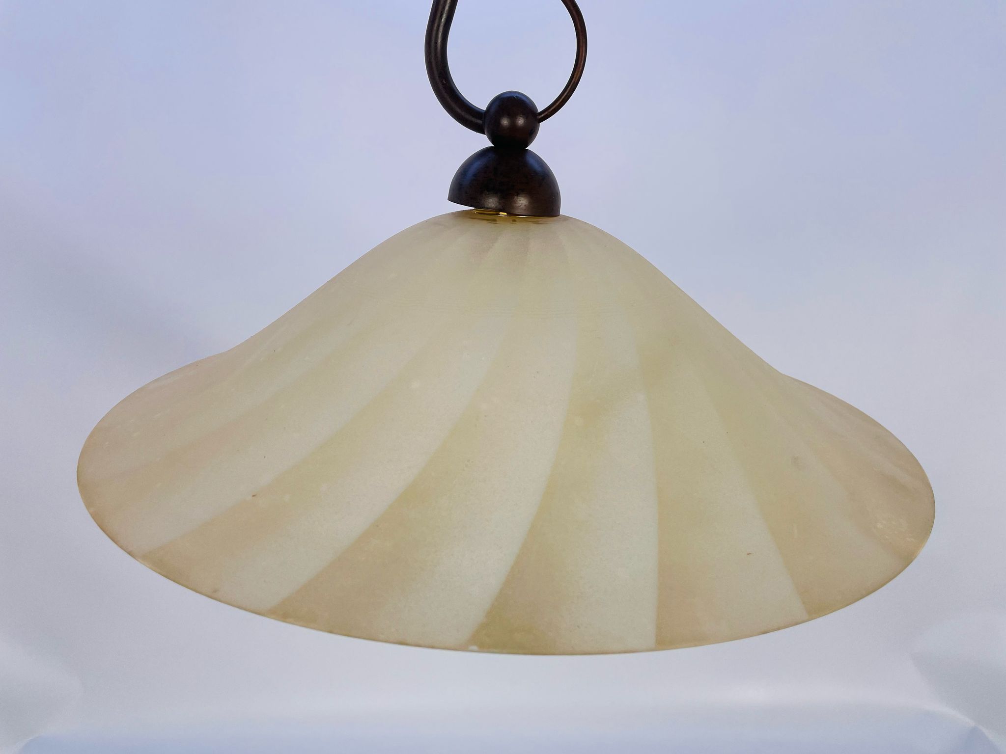 Zwis lampa Żyrandol ze szkła beżowy pofalowany.